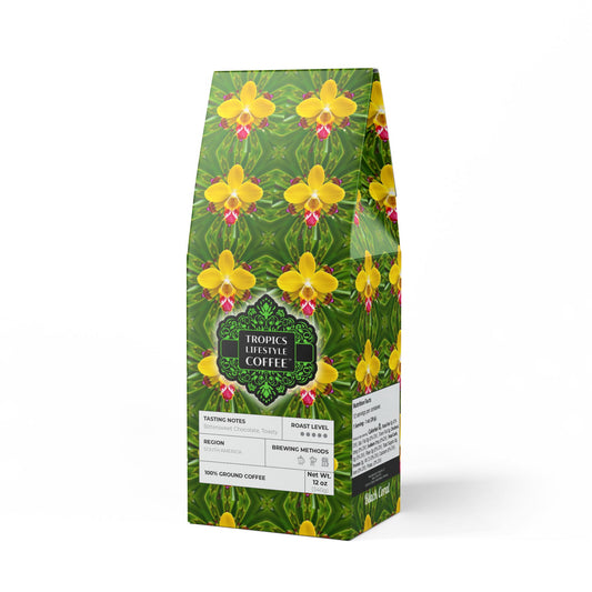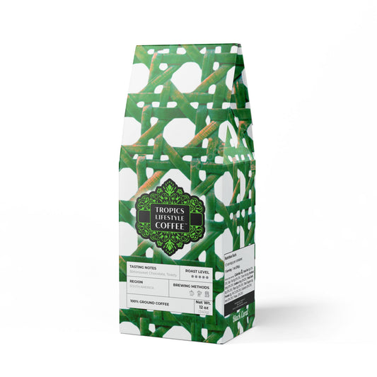 Shop the TROPICS LIFESTYLE COFFEE Art Box collection of Dark French Roast ~ Black Coral Blend ~ certified/graded Specialty Grade Craft Coffee (whole bean and ground). Sold in 12oz bags featuring tropical art designs inspired by beach, ocean and rainforest. Small-batch roasted in USA by experts for superior quality, consistency and freshness. ++ Save 10% off EVERY order when you sign up for convenient monthly delivery of our coffee; a smart move automatically making you a member of our Palm & Bean Coffee Club!