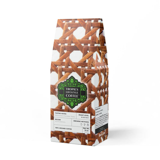 Black Coral Blend™ (Dark French Roast) Specialty Grade Craft Coffee / Chair Wicker, Brown