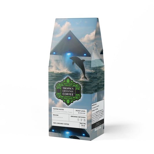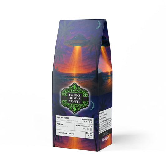 Black Coral Blend™ (Dark French Roast) Specialty Grade Craft Coffee / Beach UFO at Night