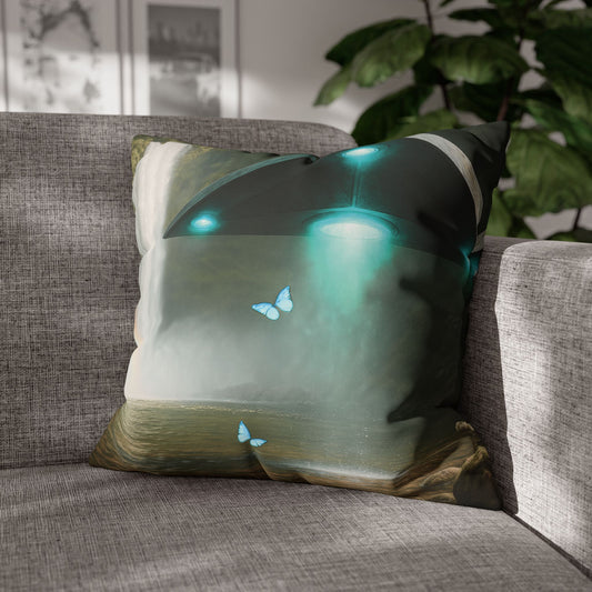 Faux Suede Square Pillowcase - UFO and Waterfall