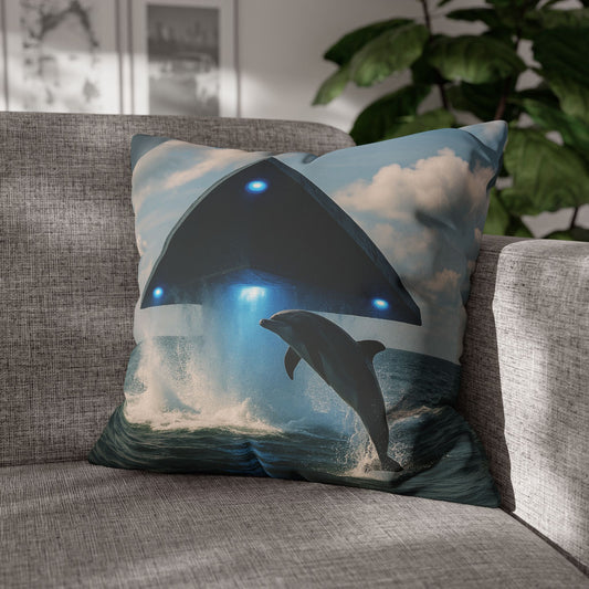 Faux Suede Square Pillowcase - UFO and Dolphin