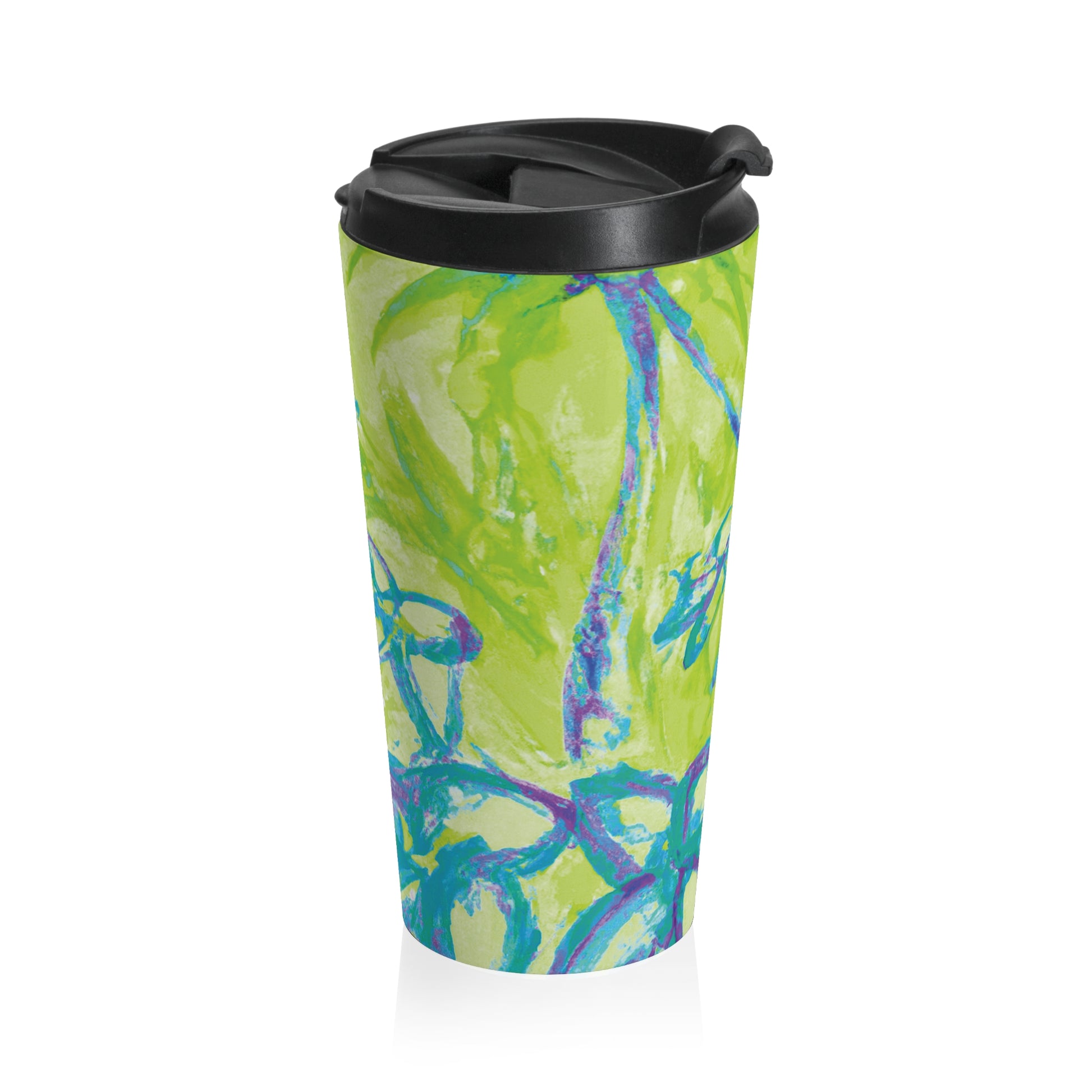 15 oz. Stainless Steel Travel Mug / Palm Doodles Lime
