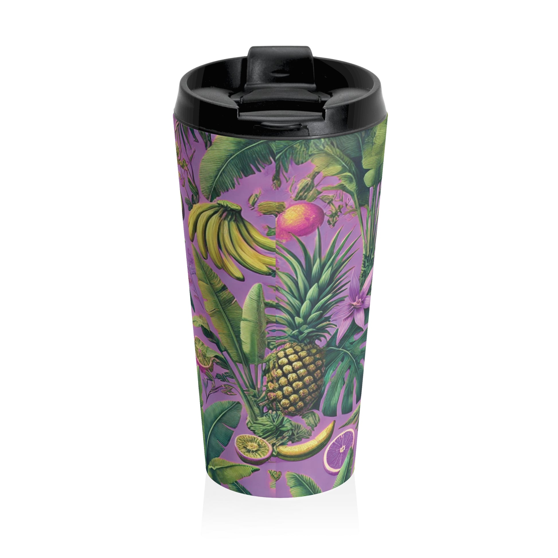 15 oz. Stainless Steel Travel Mug / Palms & Tropical Fruit, Hot Lilac