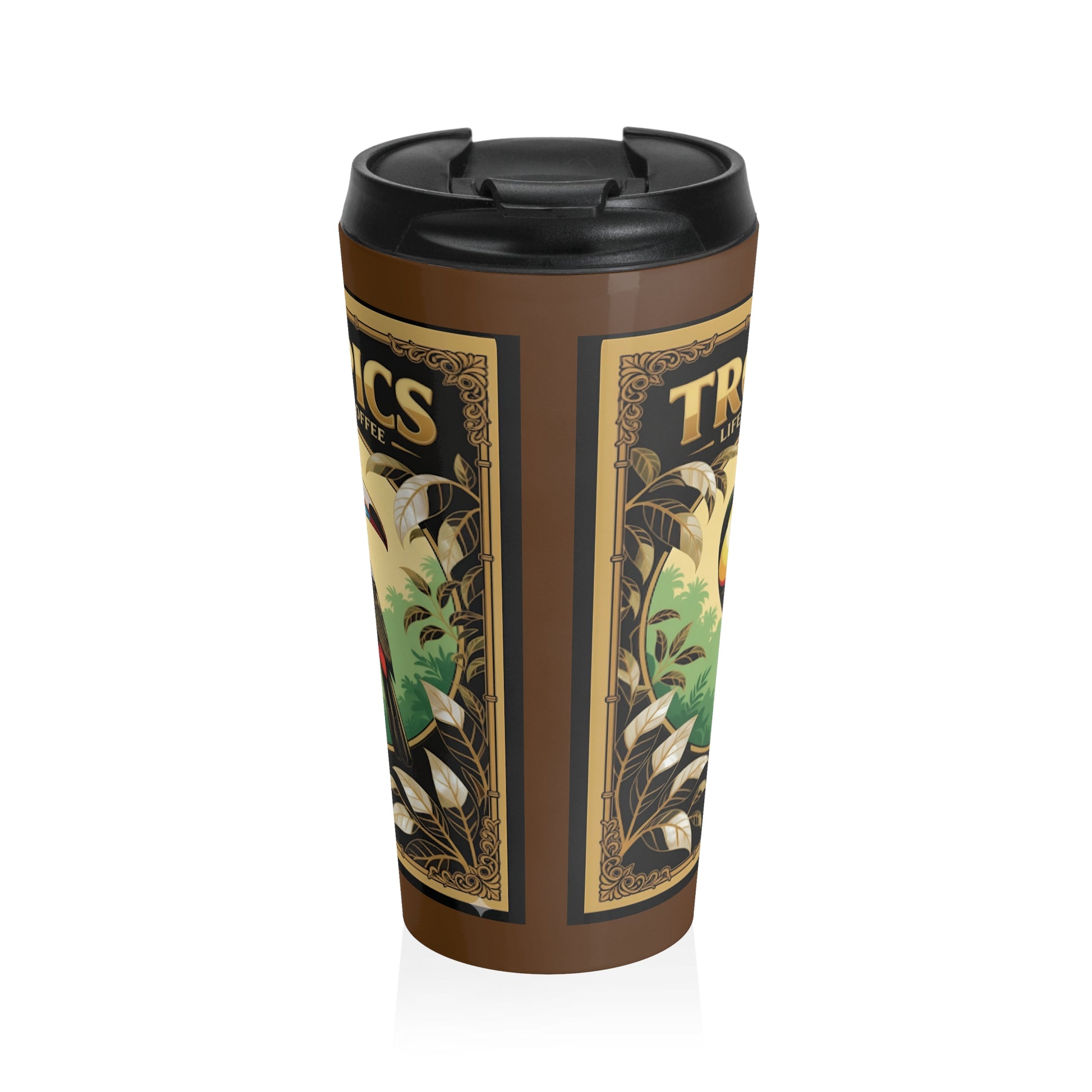Enjoy your favorite beverages on the go with this stylish Stainless Steel Travel Mug. Crafted with a design of a vibrant tropical parrot with mother-of-accents, it adds a touch of paradise to your daily routine. Whether you're commuting to work, hitting the gym, or enjoying a leisurely stroll, this travel mug fits seamlessly into any lifestyle. Perfect for coffee lovers, tea enthusiasts, or anyone who needs to stay hydrated. Elevate your daily ritual with this must-have accessory!