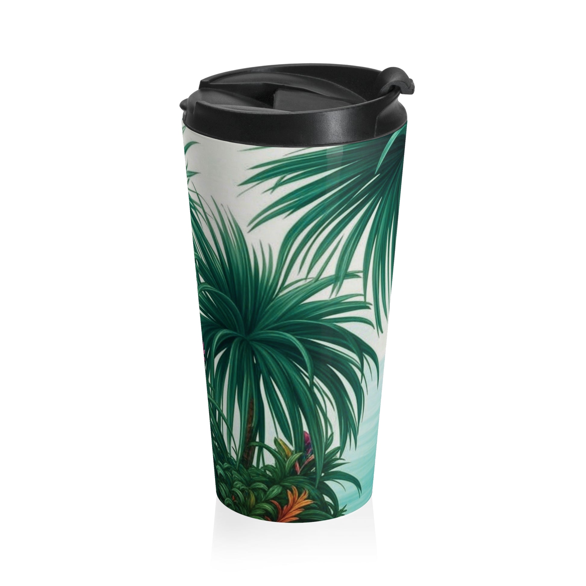 Enjoy your favorite beverages on the go with this stylish Stainless Steel Travel Mug. Crafted with a vibrant tropical palm island design, it adds a touch of paradise to your daily routine. Whether you're commuting to work, hitting the gym, or enjoying a leisurely stroll, this travel mug fits seamlessly into any lifestyle. Perfect for coffee lovers, tea enthusiasts, or anyone who needs to stay hydrated. Elevate your daily ritual with this must-have accessory!