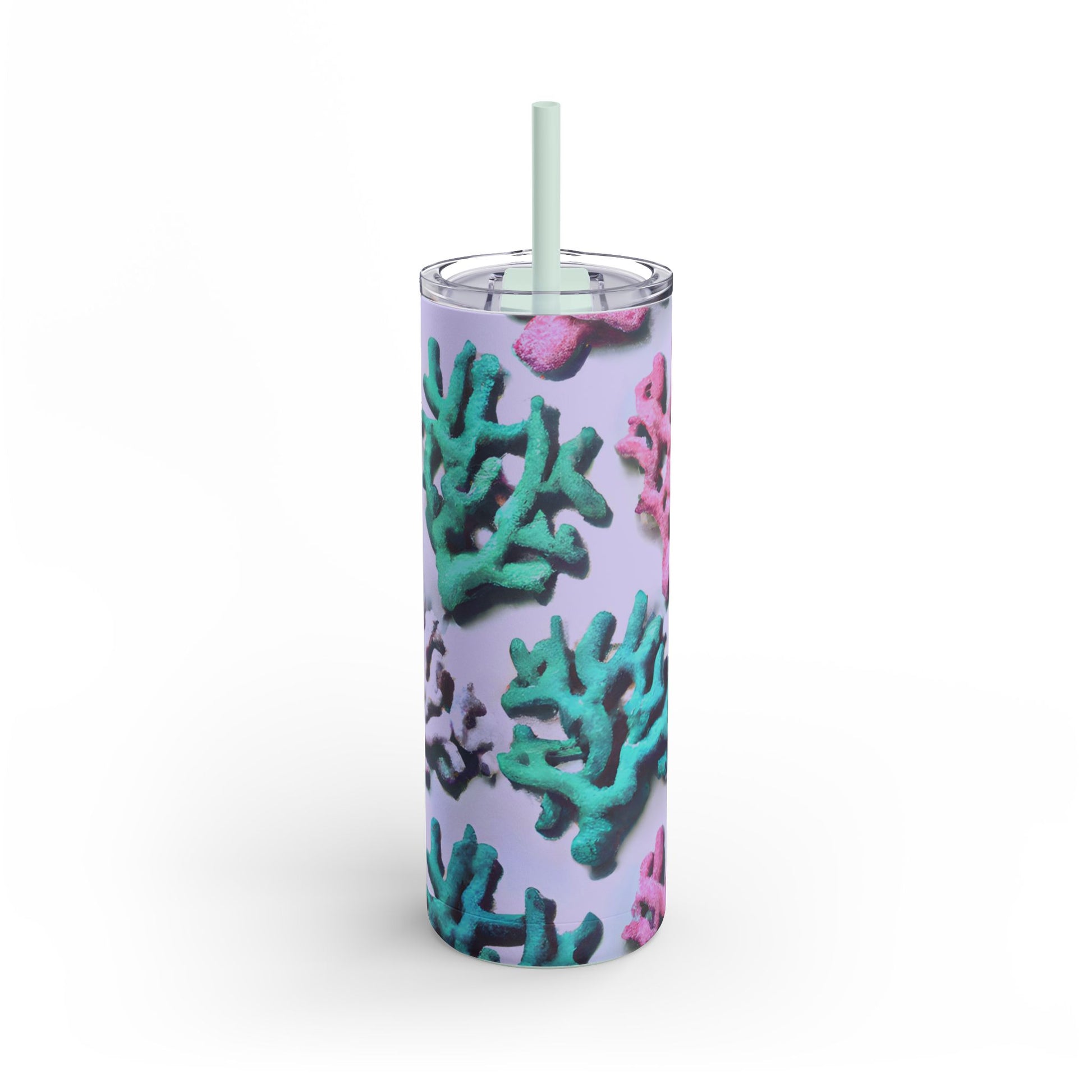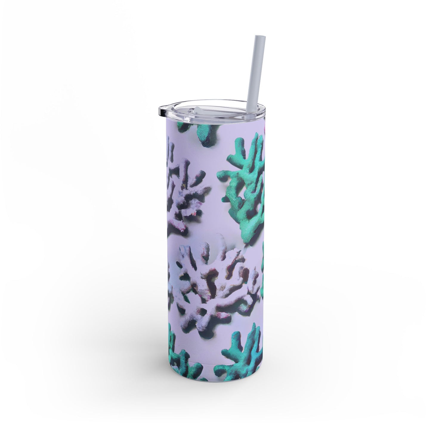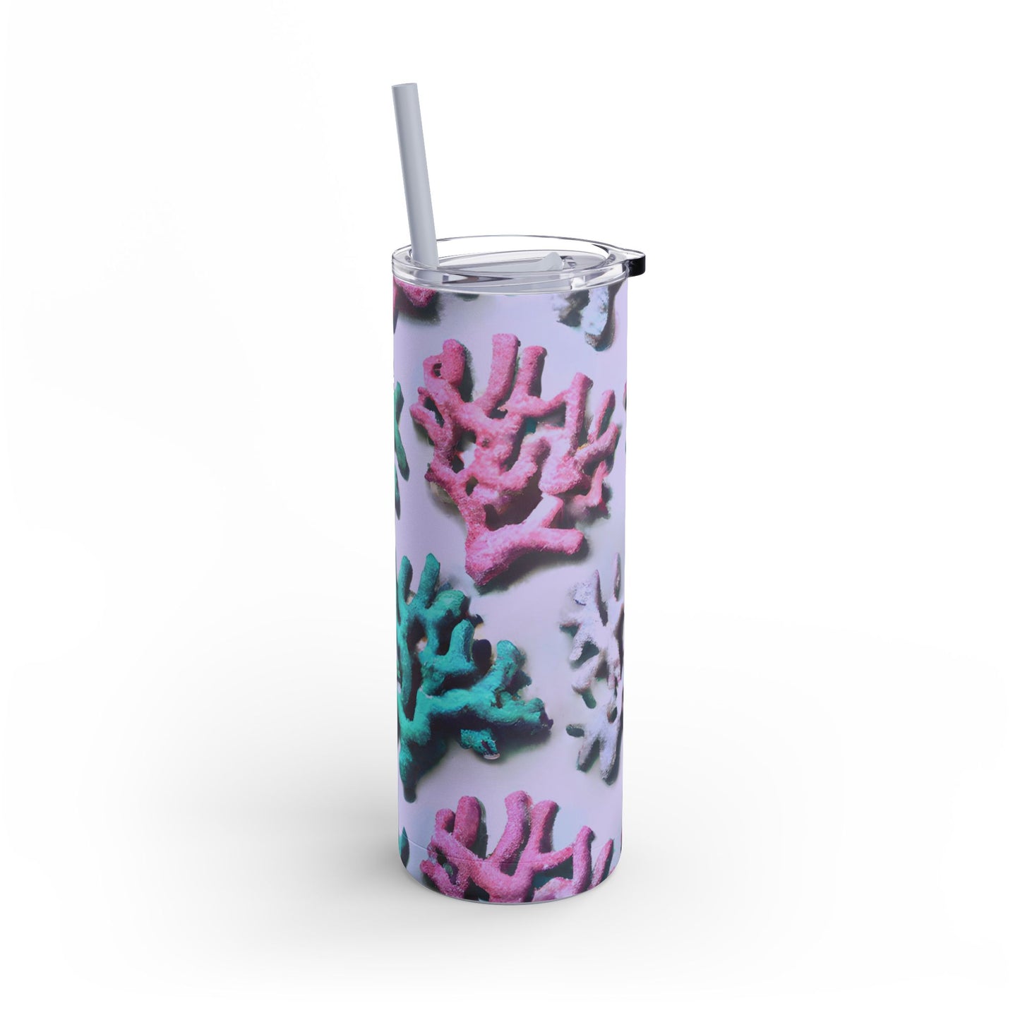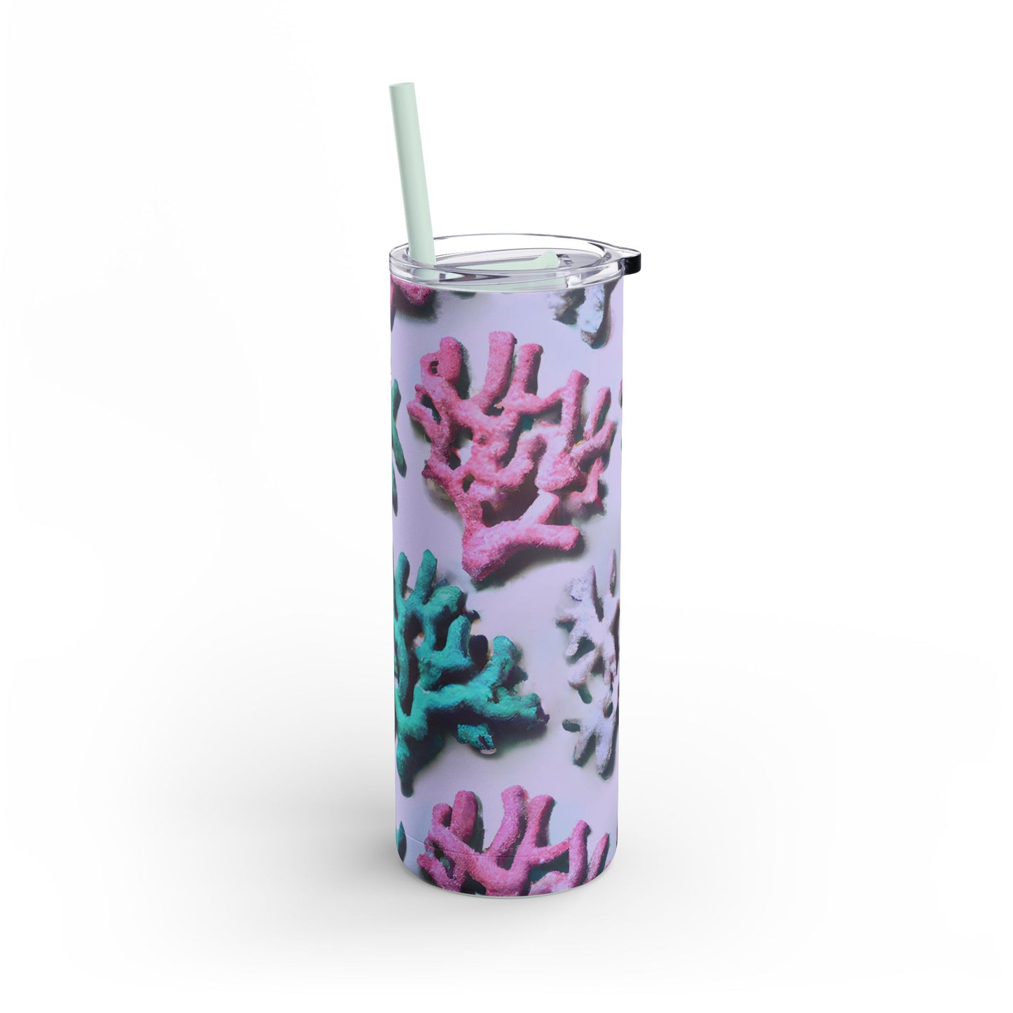 Introducing our vibrant Skinny Tumbler, a stylish companion for your drinks! Features our exclusive stylized design of tropical corals from the ocean. Whether you’re at the beach, the gym, or simply enjoying a relaxed day at home, this tumbler keeps your beverages just right. With a trendy slim design and a powder-coated matte finish, it's perfect for those who appreciate both form and function.