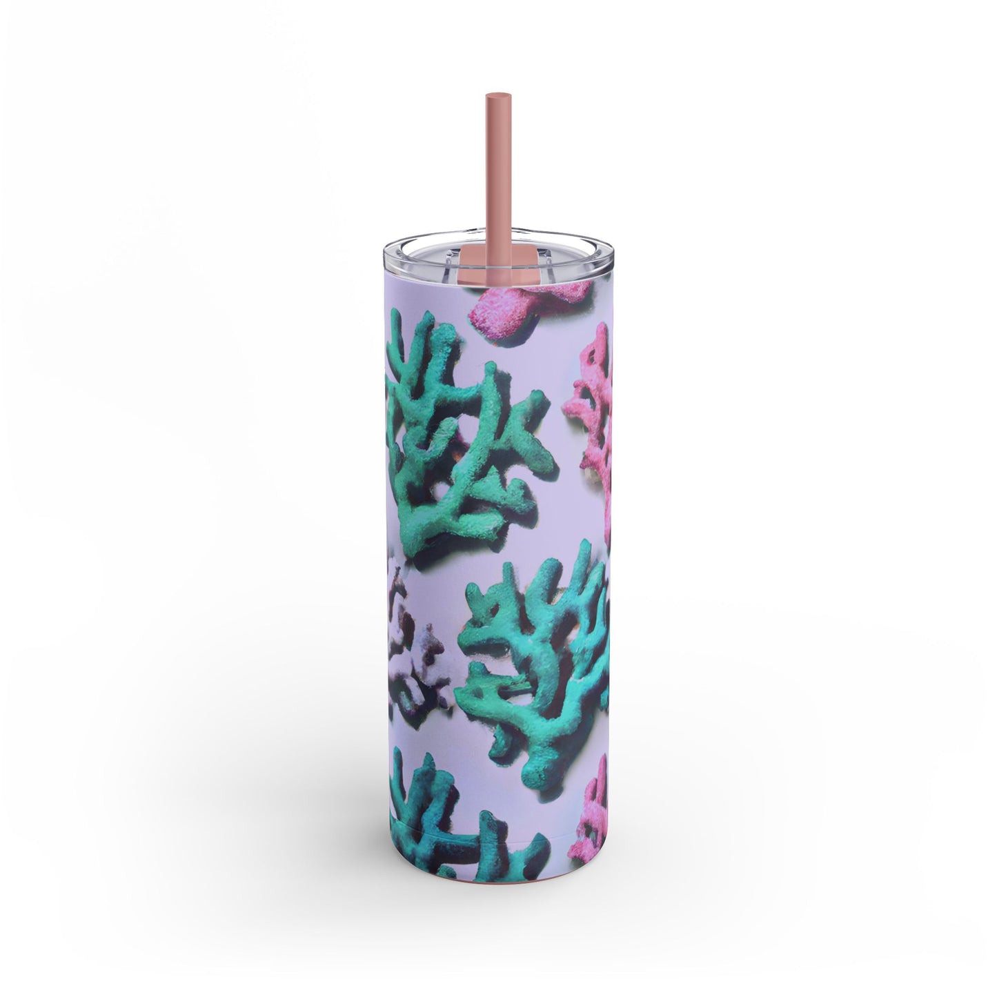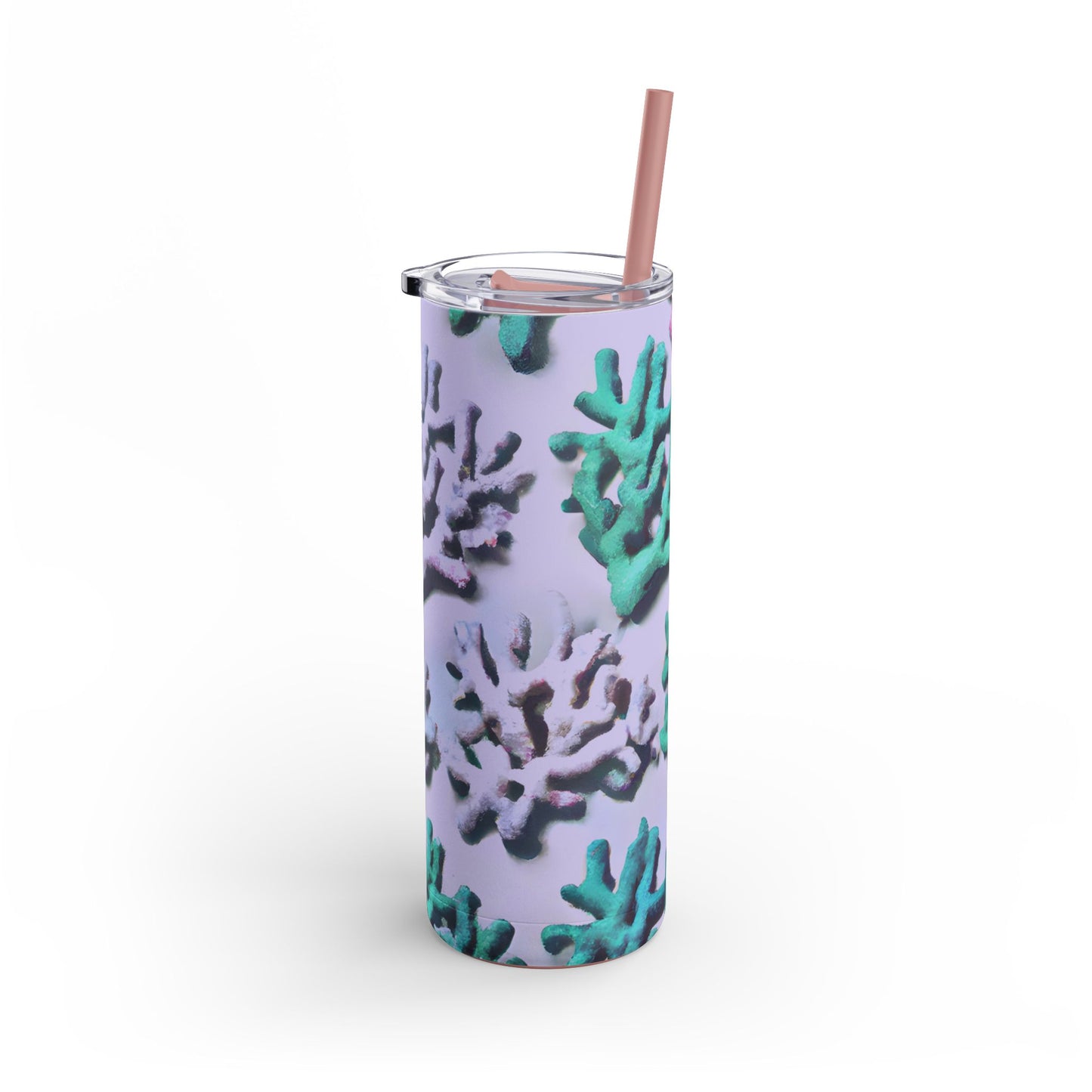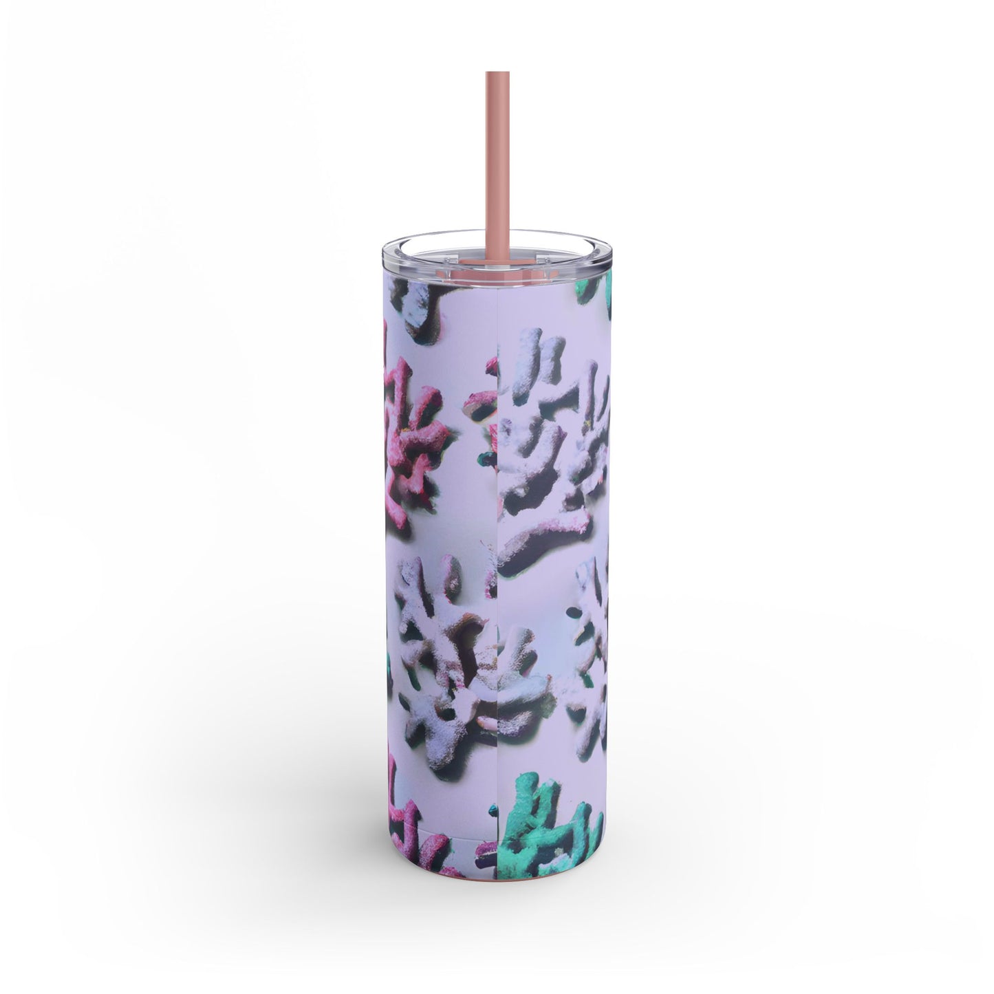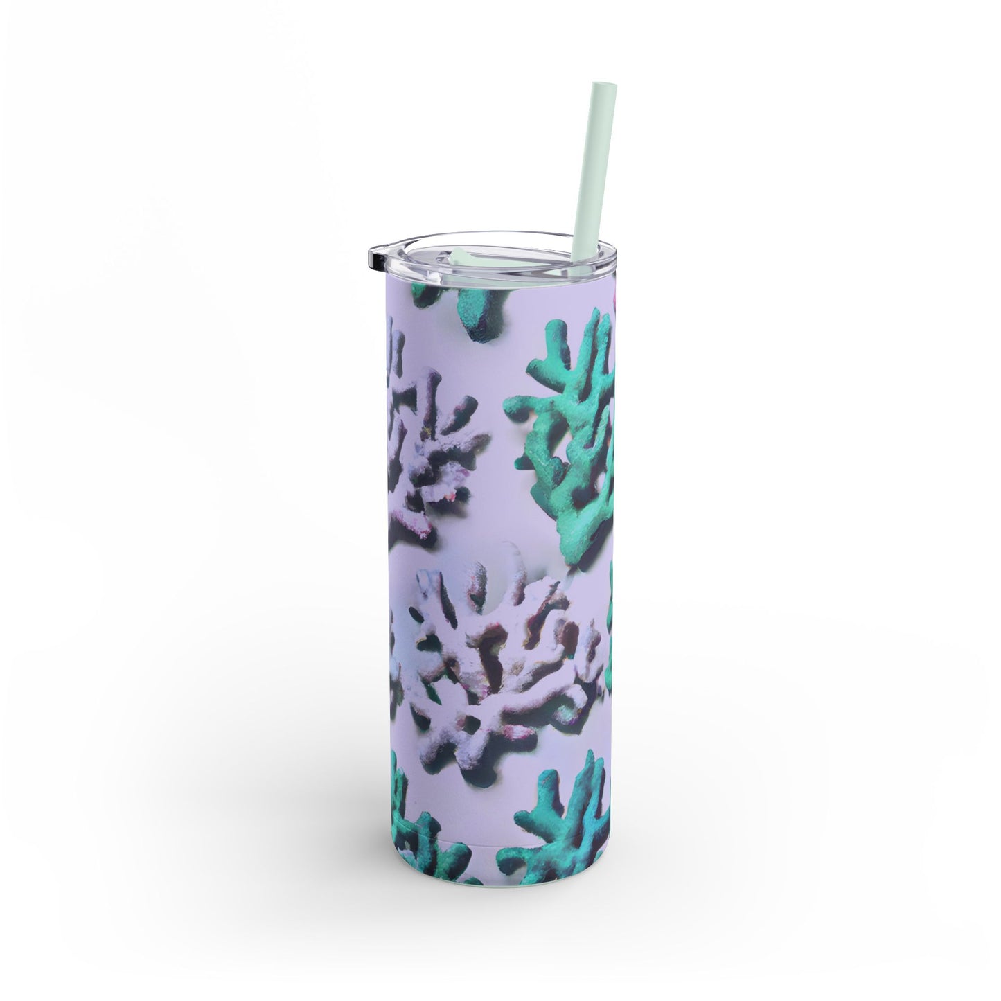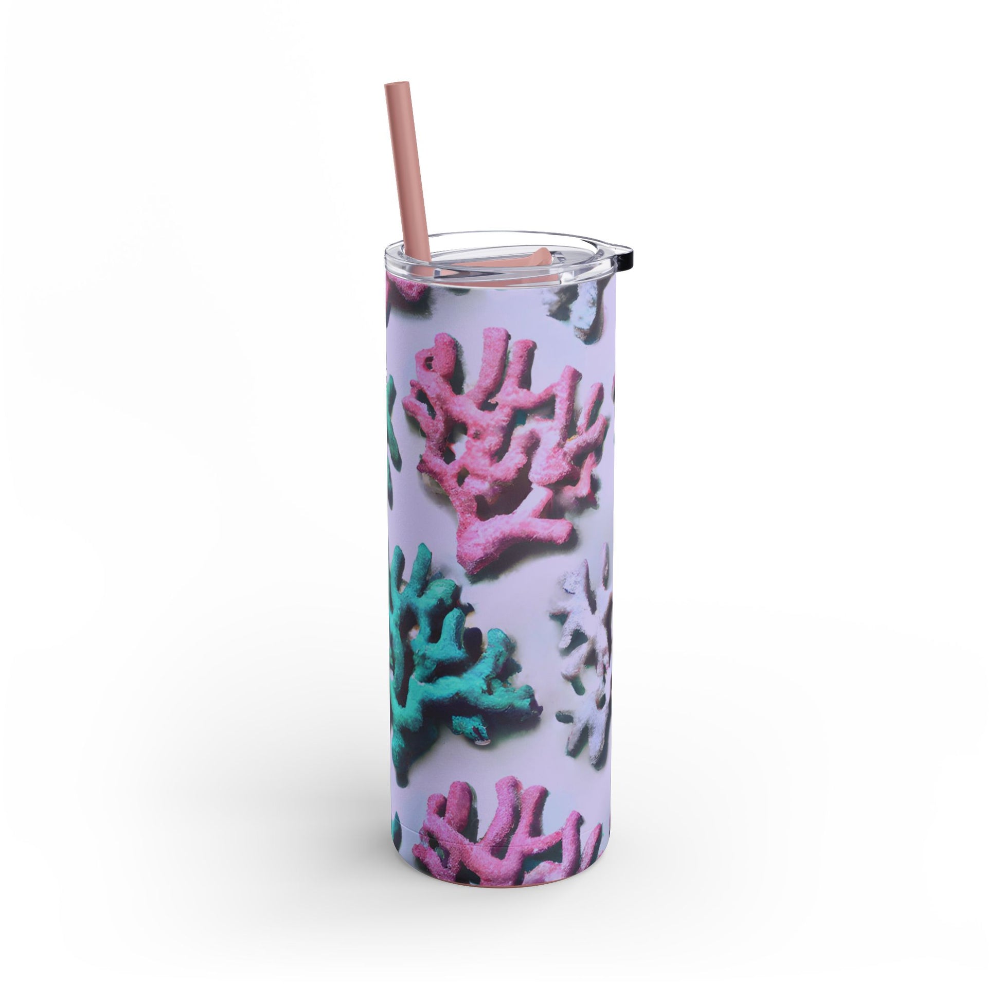 Introducing our vibrant Skinny Tumbler, a stylish companion for your drinks! Features our exclusive stylized design of tropical corals from the ocean. Whether you’re at the beach, the gym, or simply enjoying a relaxed day at home, this tumbler keeps your beverages just right. With a trendy slim design and a powder-coated matte finish, it's perfect for those who appreciate both form and function.