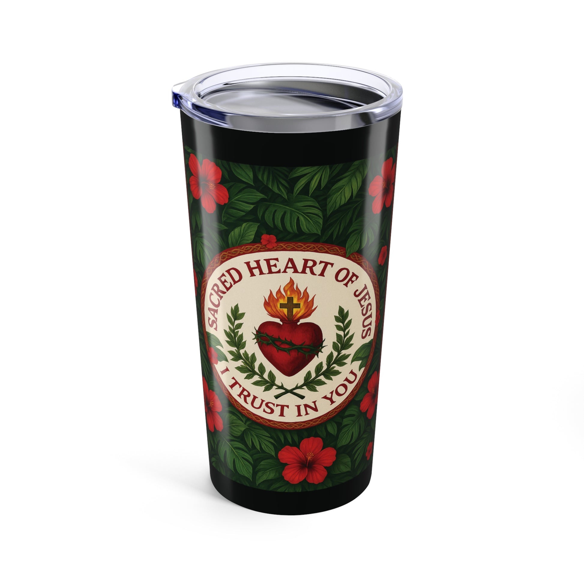 Religious 20oz Tropical Glossy Tumbler - Sacred Heart of Jesus Prayer, Black