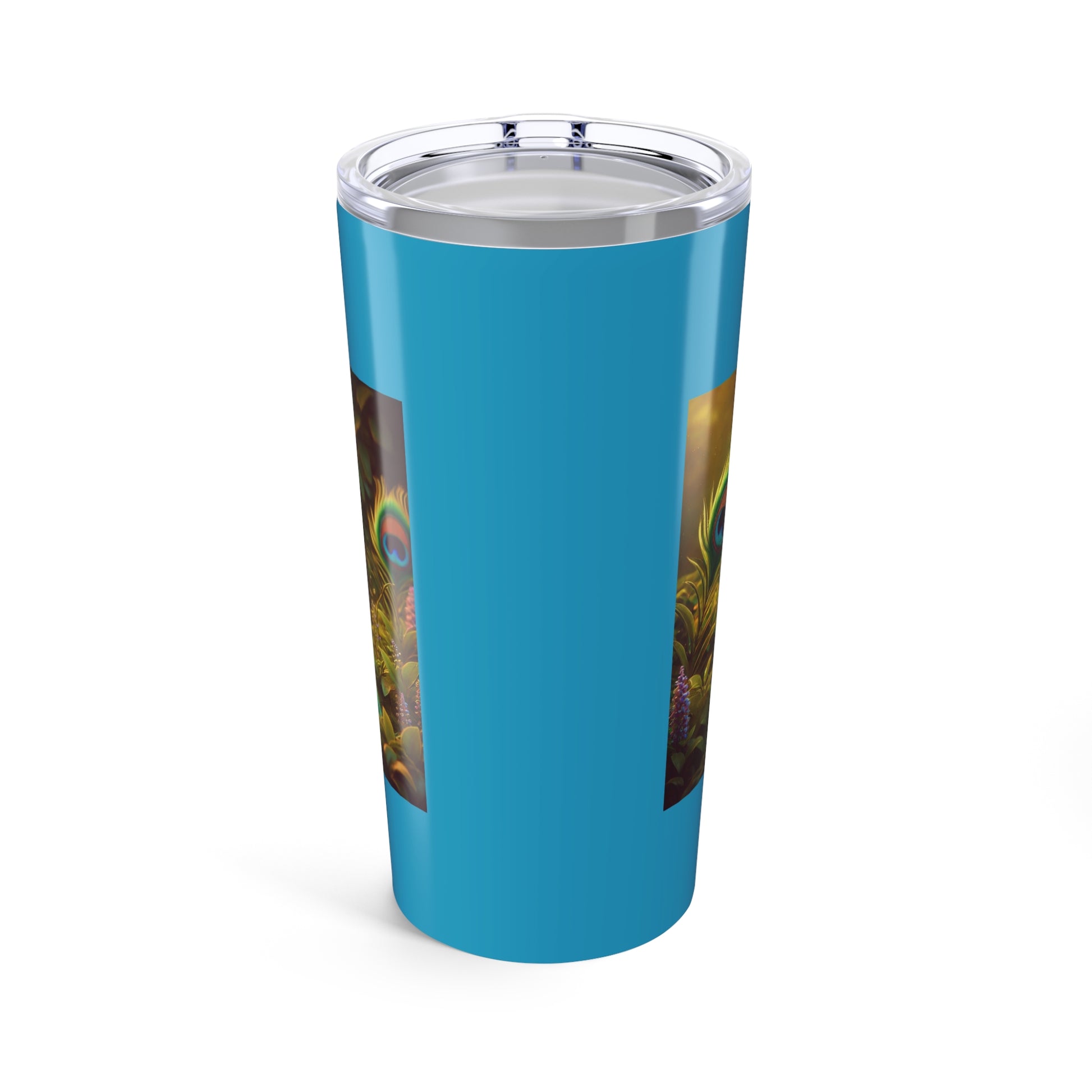 20oz Tropical Glossy Tumbler, Stainless Steel / Baby Peacock, Turquoise