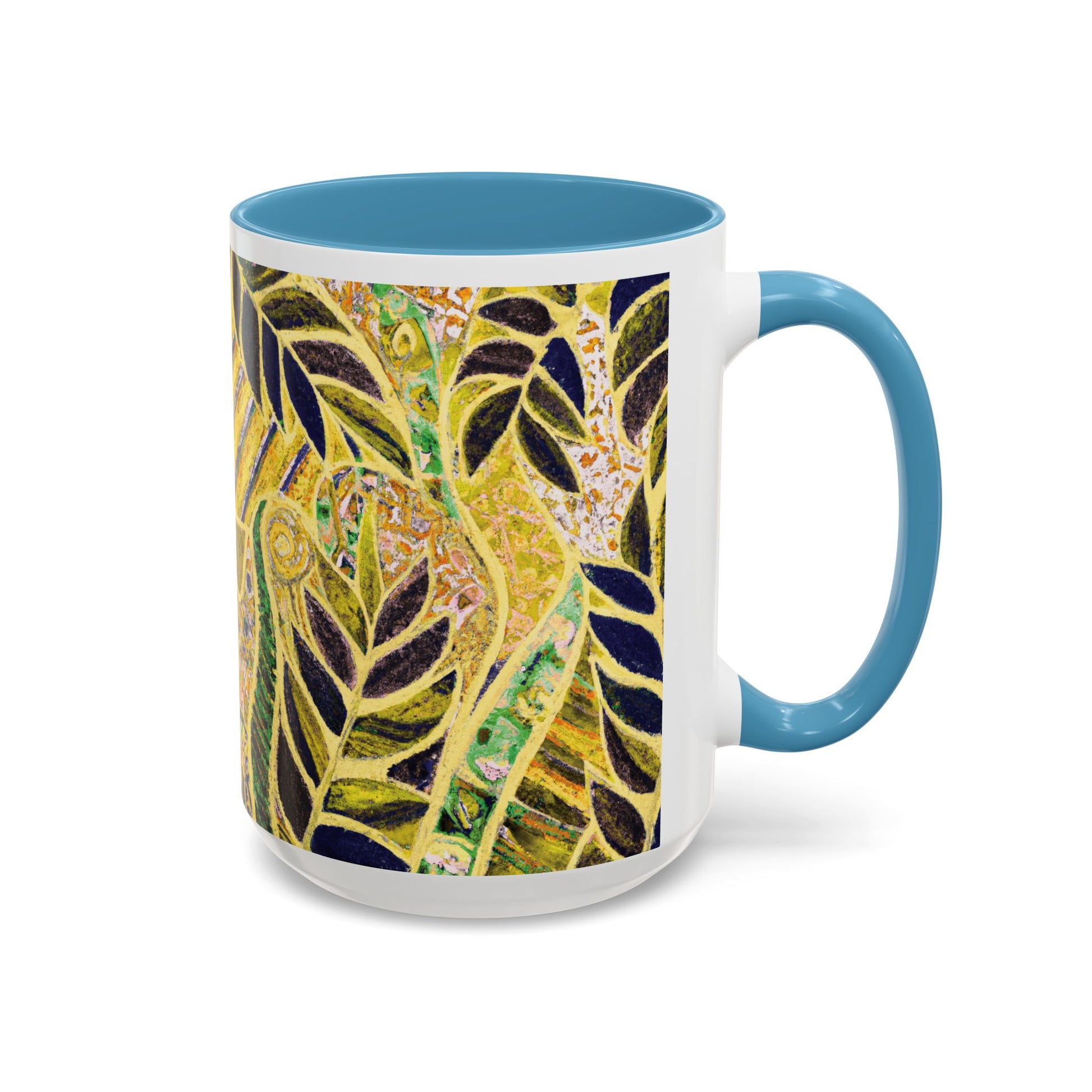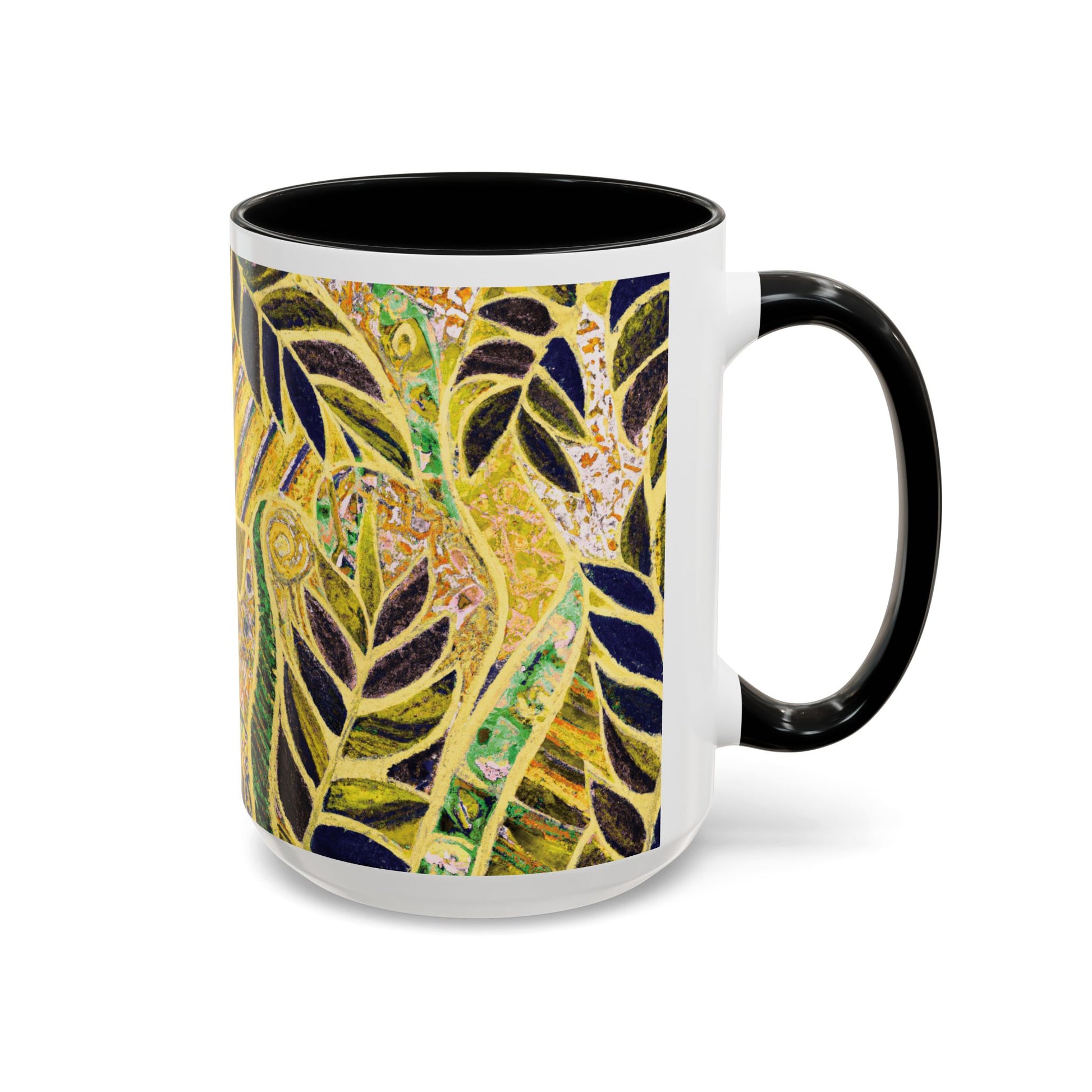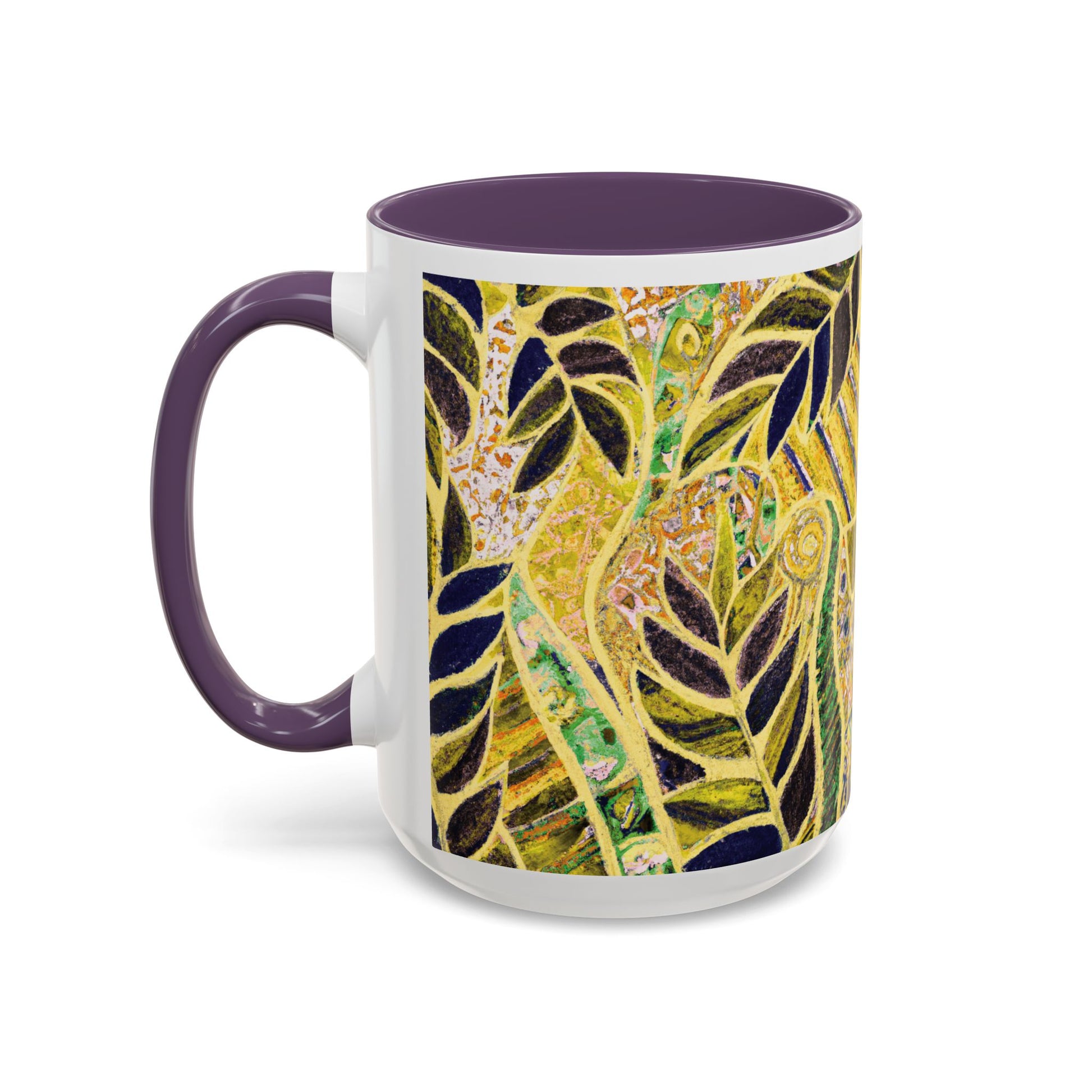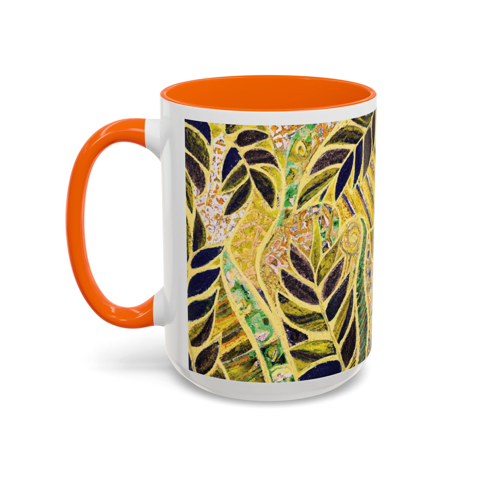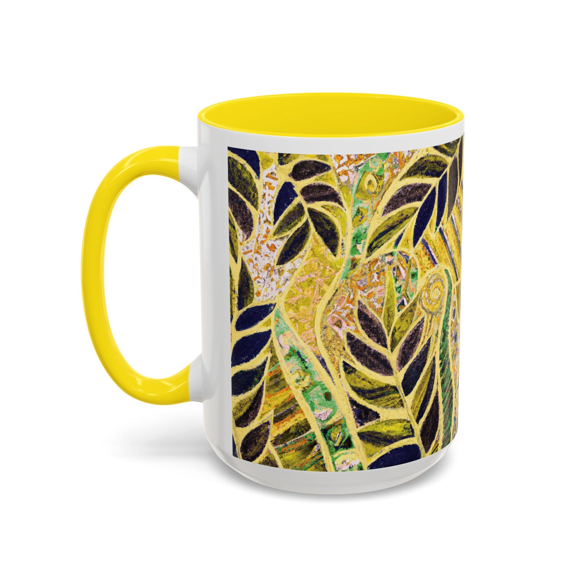 Meet your next favorite morning companion, the accented ceramic mug. Features tropical-inspired original art, Amazon Whimsy, taking you on a virtual vacation with its unique design. This mug brings the perfect blend of style and functionality to elevate your coffee or tea ritual. Available in two generous sizes, 11oz (0.33 l) and 15oz (0.44 l), this mug offers ample space for your favorite brew. Made with white ceramic and sporting a sleek glossy finish with eye-catching contrast, this mug is a bliss both to use and to look at. The ergonomic C-shaped handle provides a comfortable grip, while the lead and BPA-free construction guarantee peace of mind with every sip.
