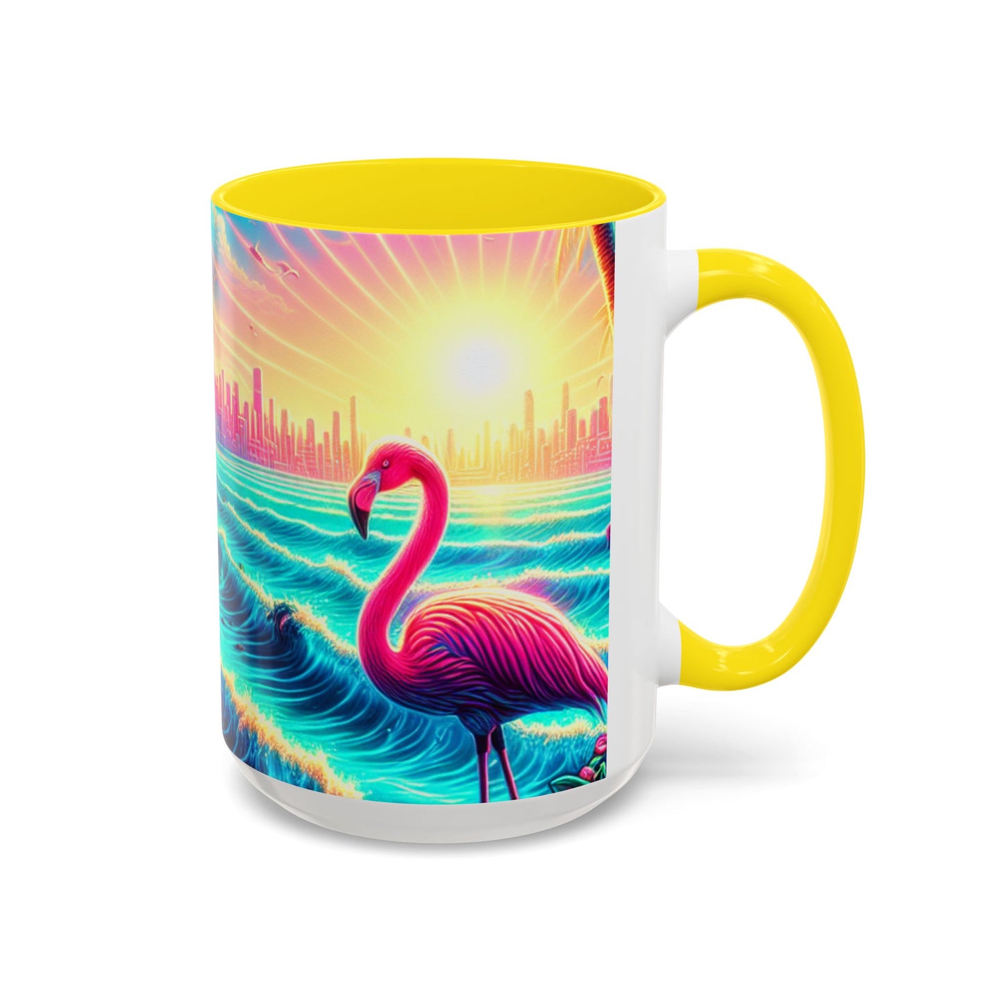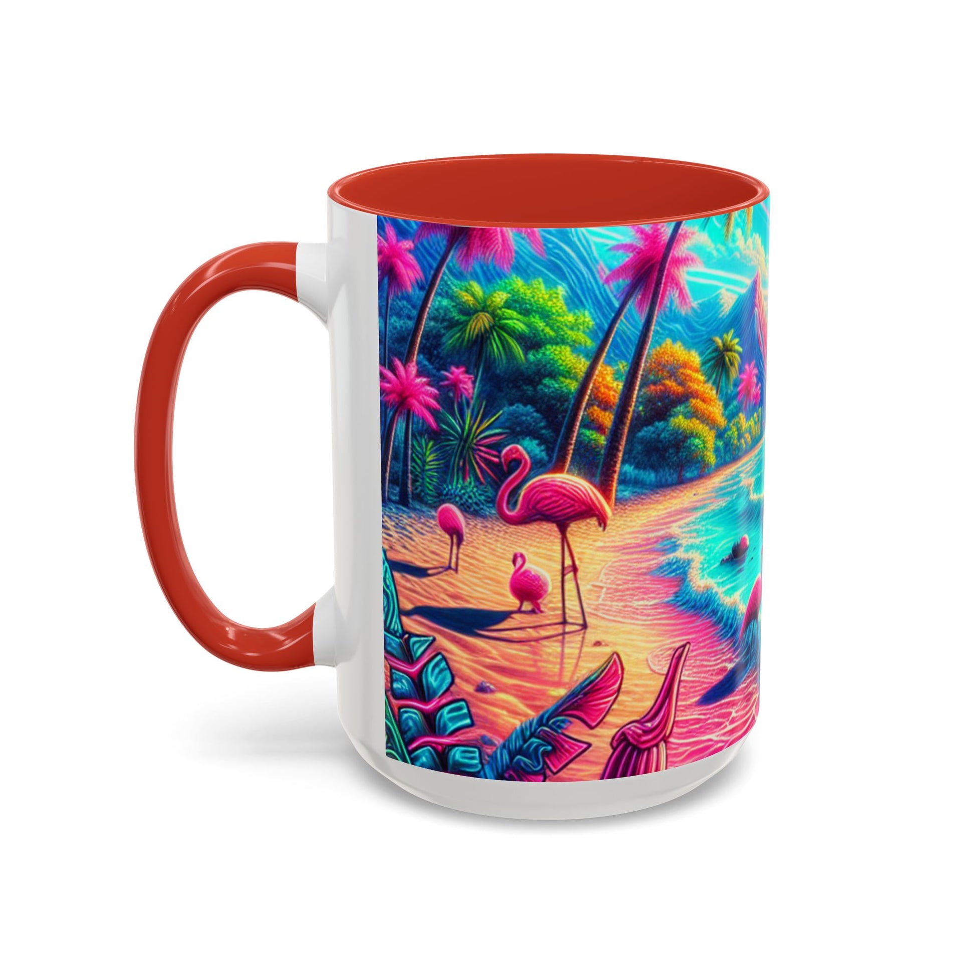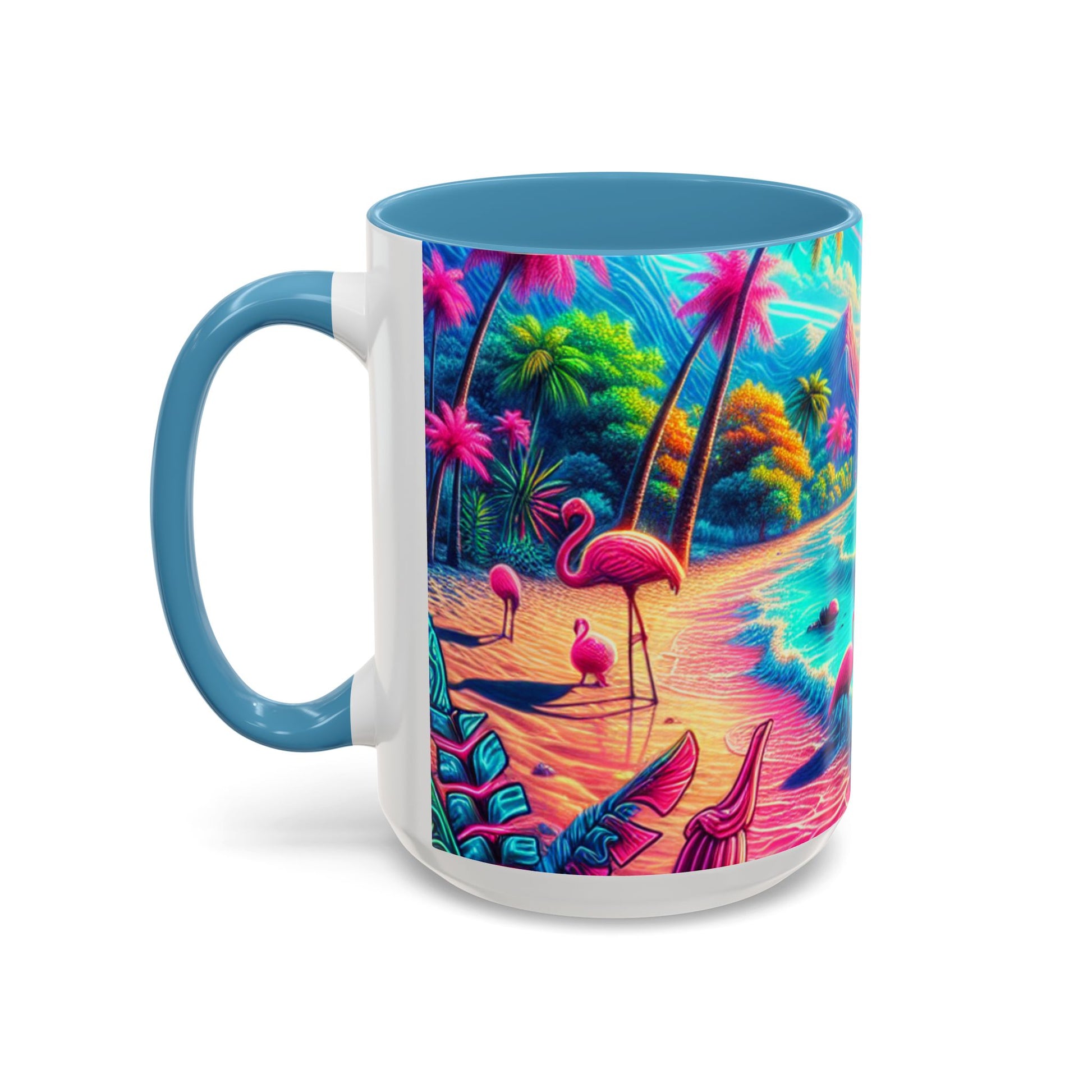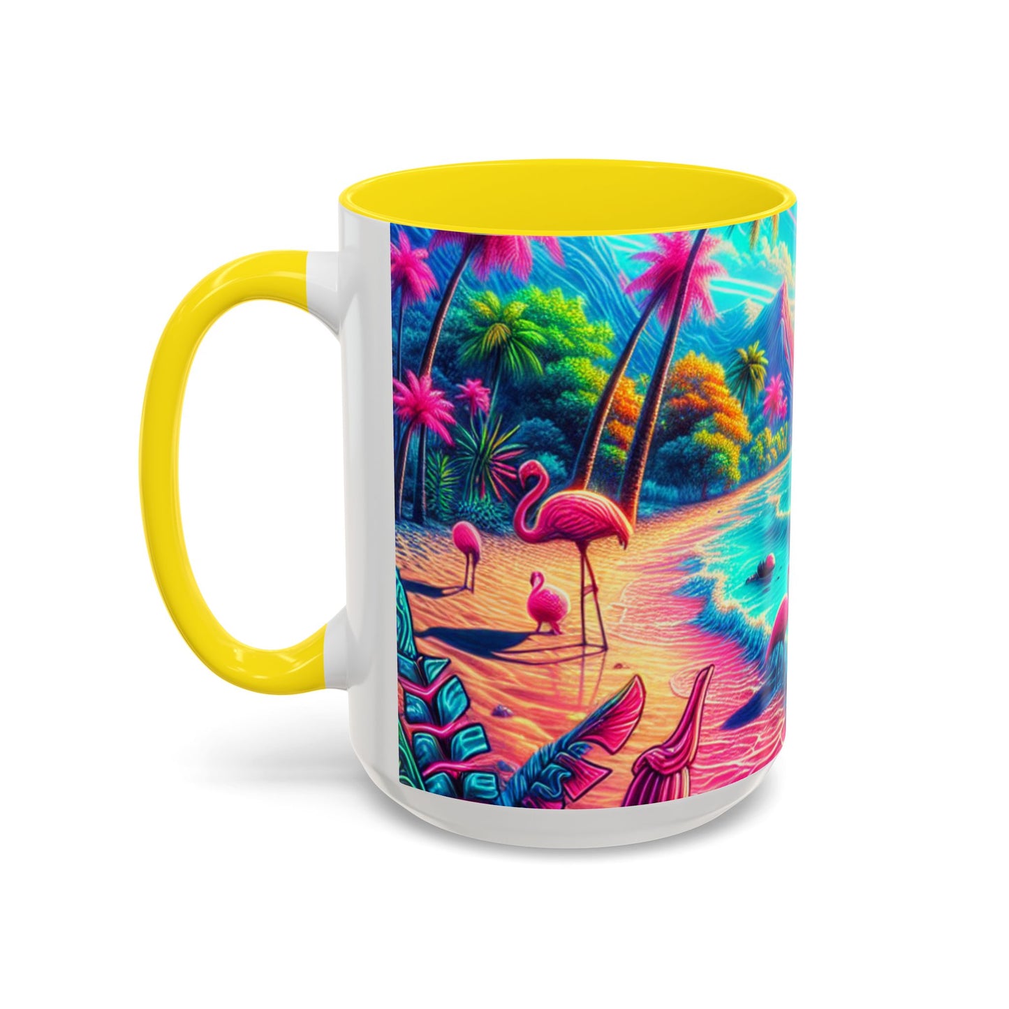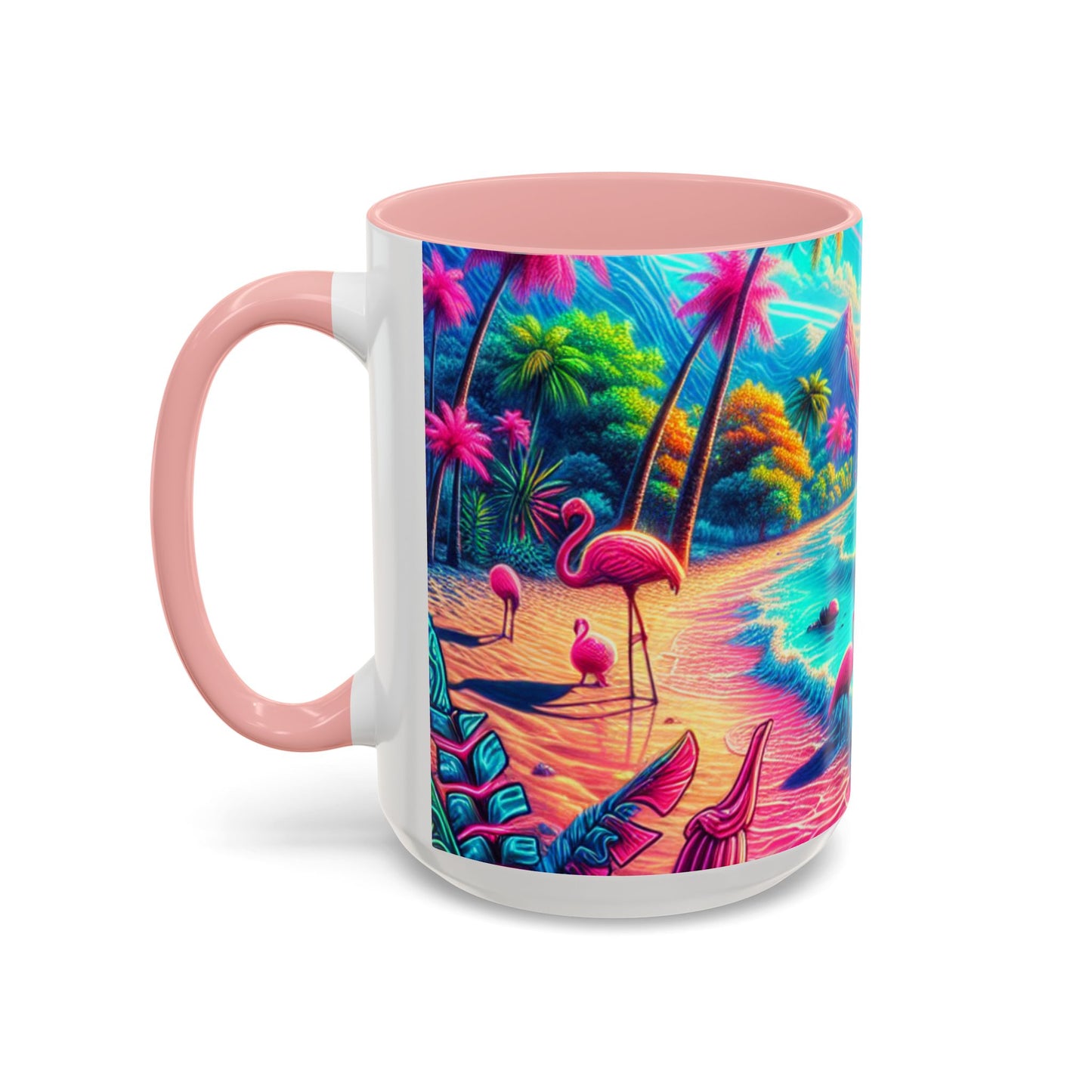 Accent Color Coffee Mug (11, 15oz) / Pop Art Flamingo Beach, Various Colors