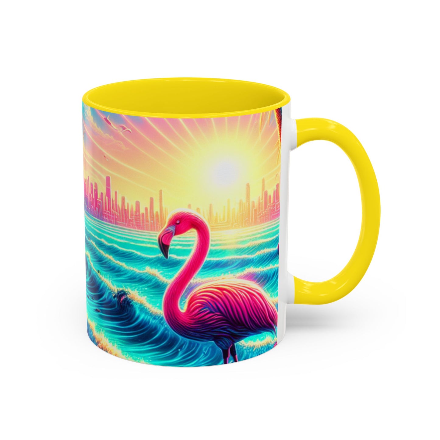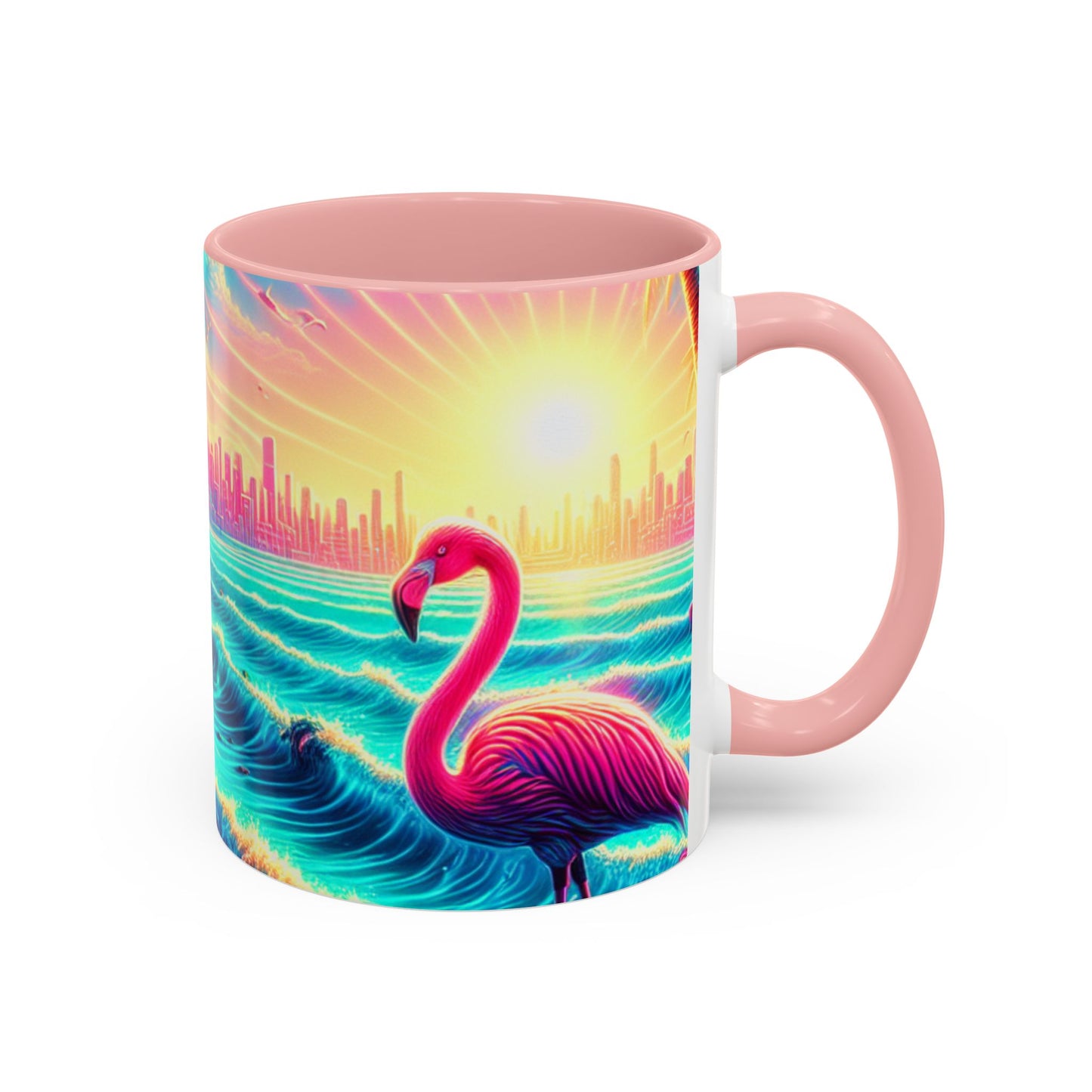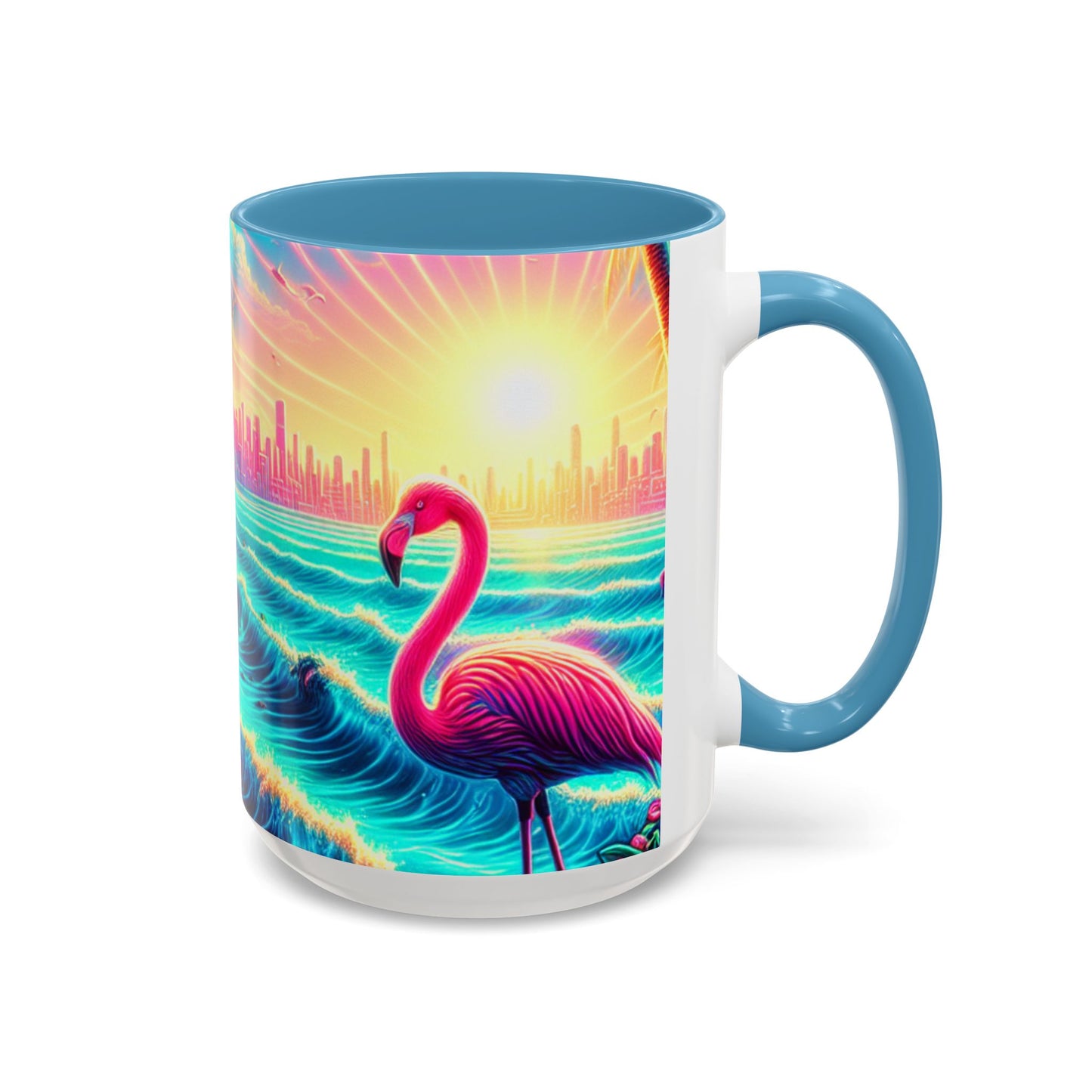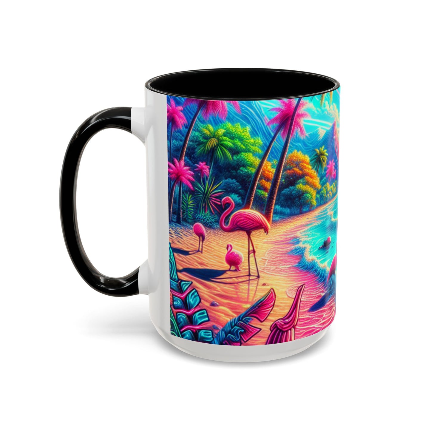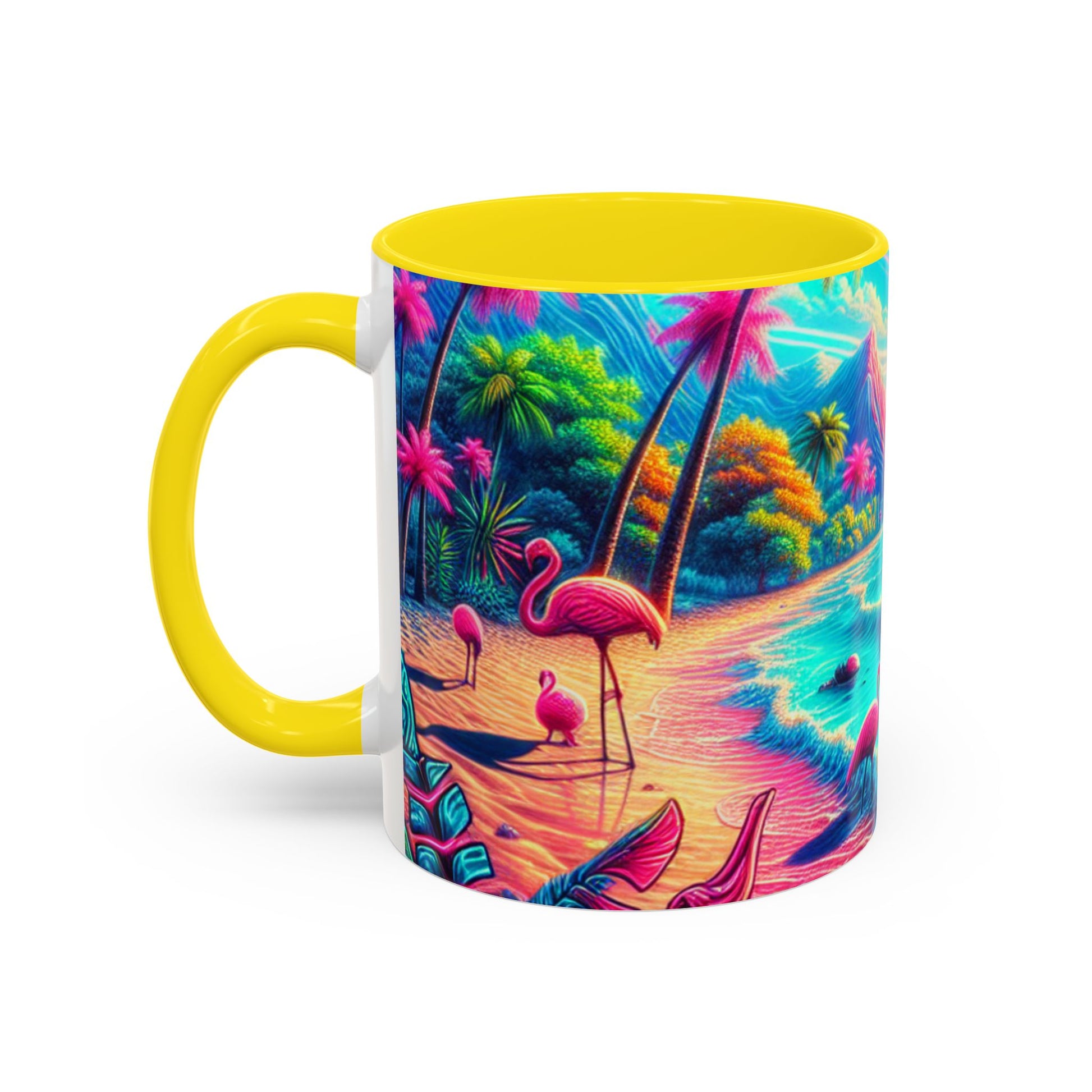 Accent Color Coffee Mug (11, 15oz) / Pop Art Flamingo Beach, Various Colors