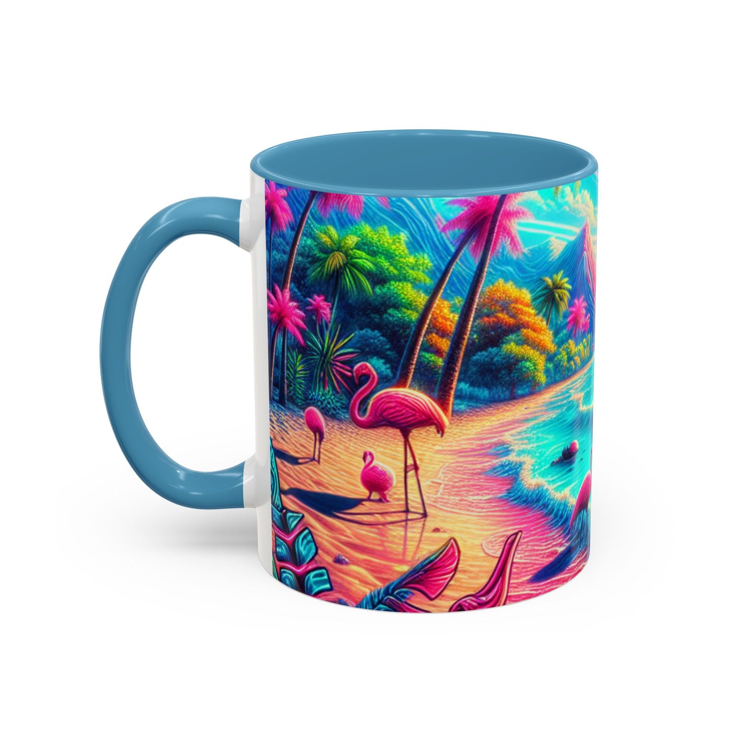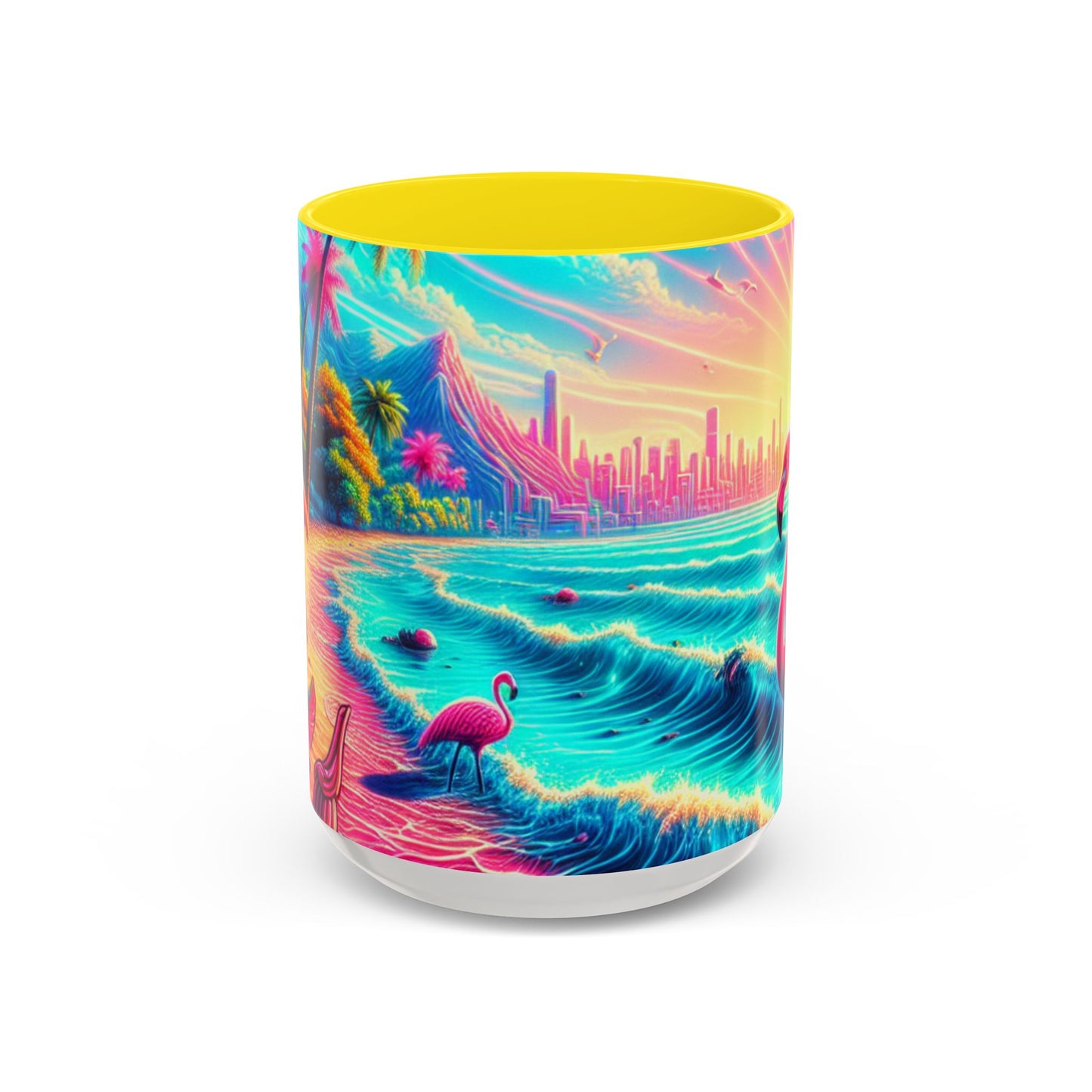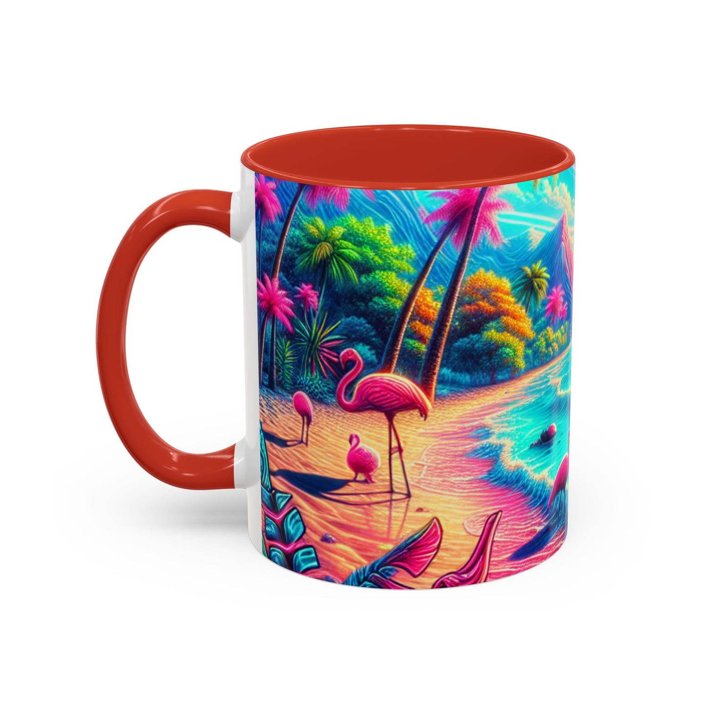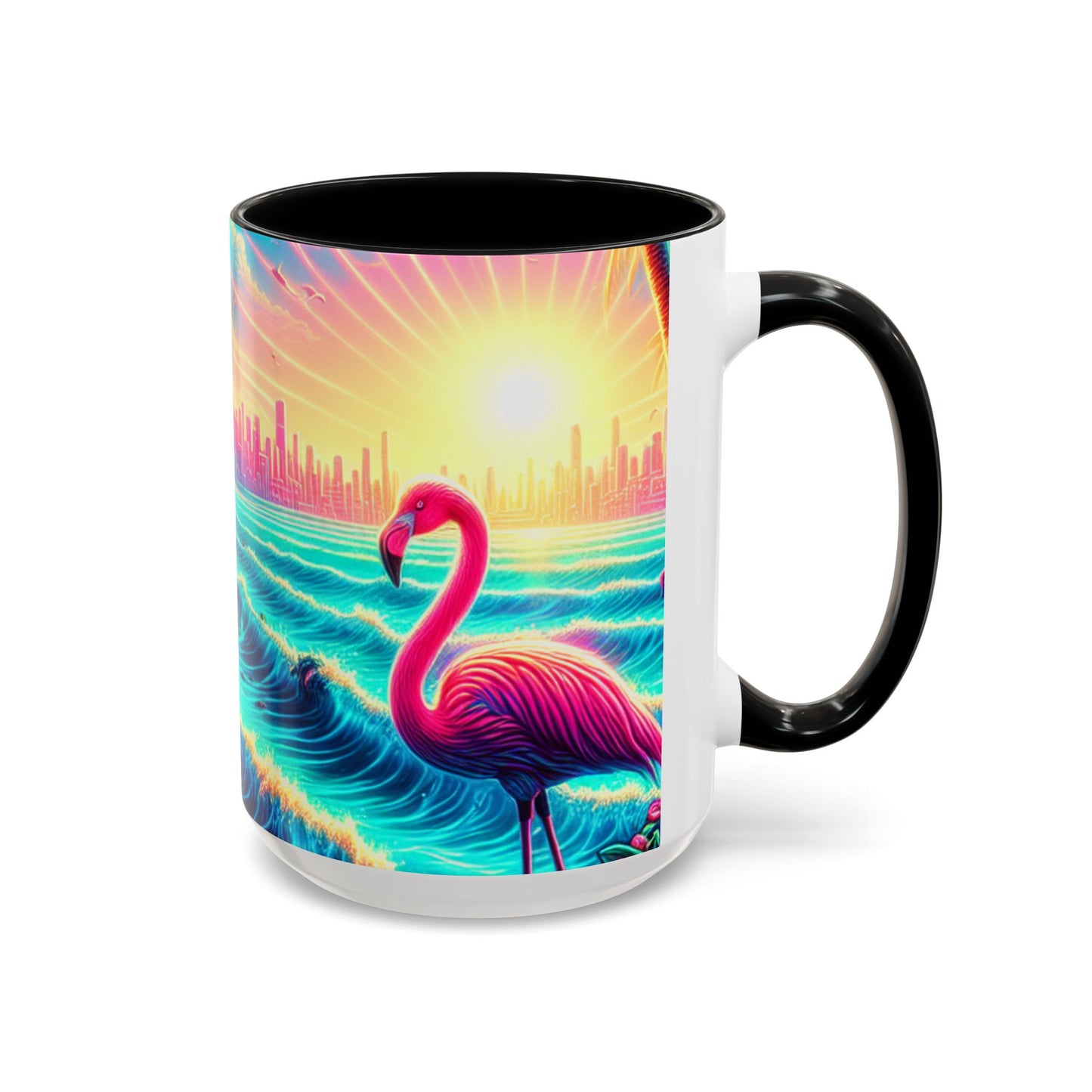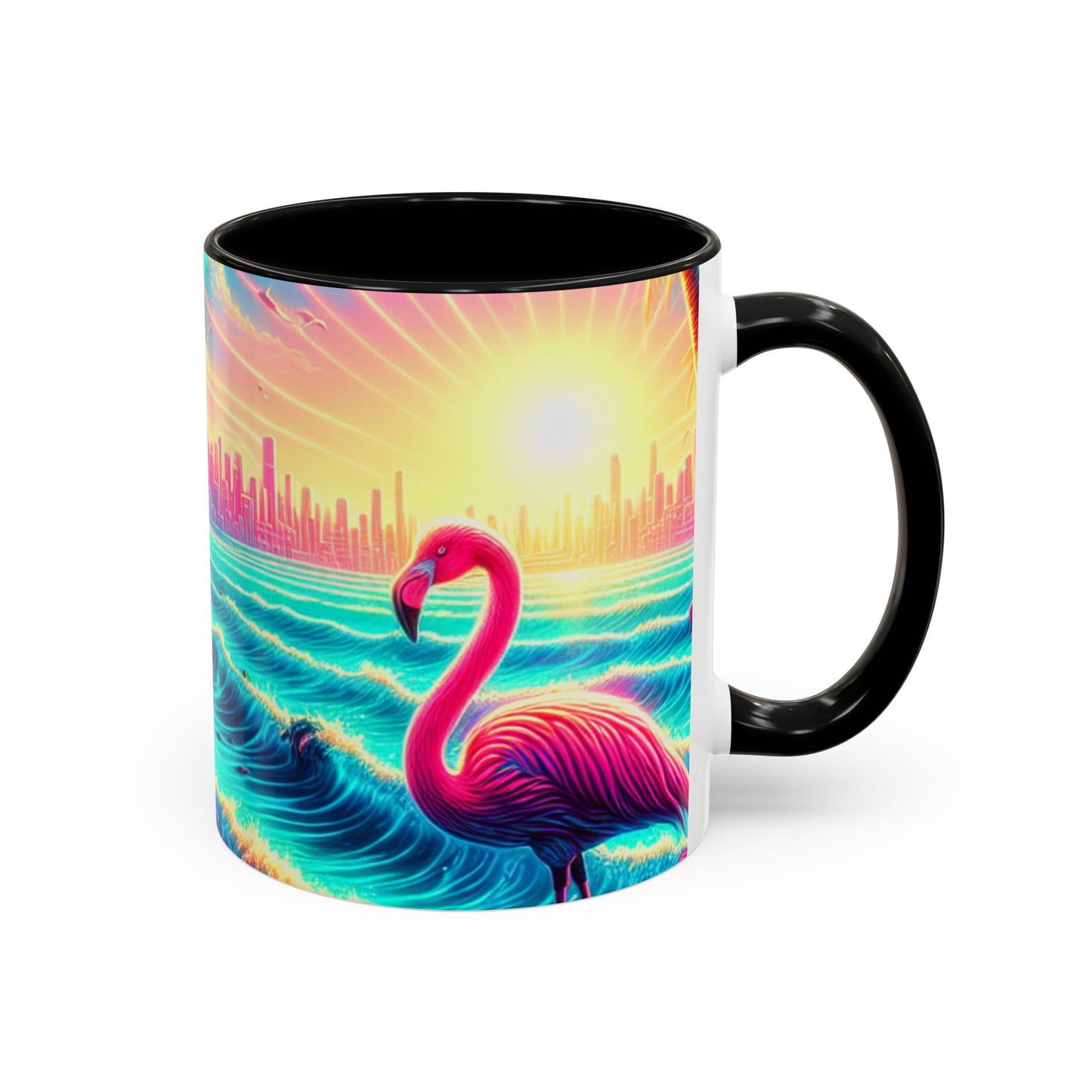 Accent Color Coffee Mug (11, 15oz) / Pop Art Flamingo Beach, Various Colors