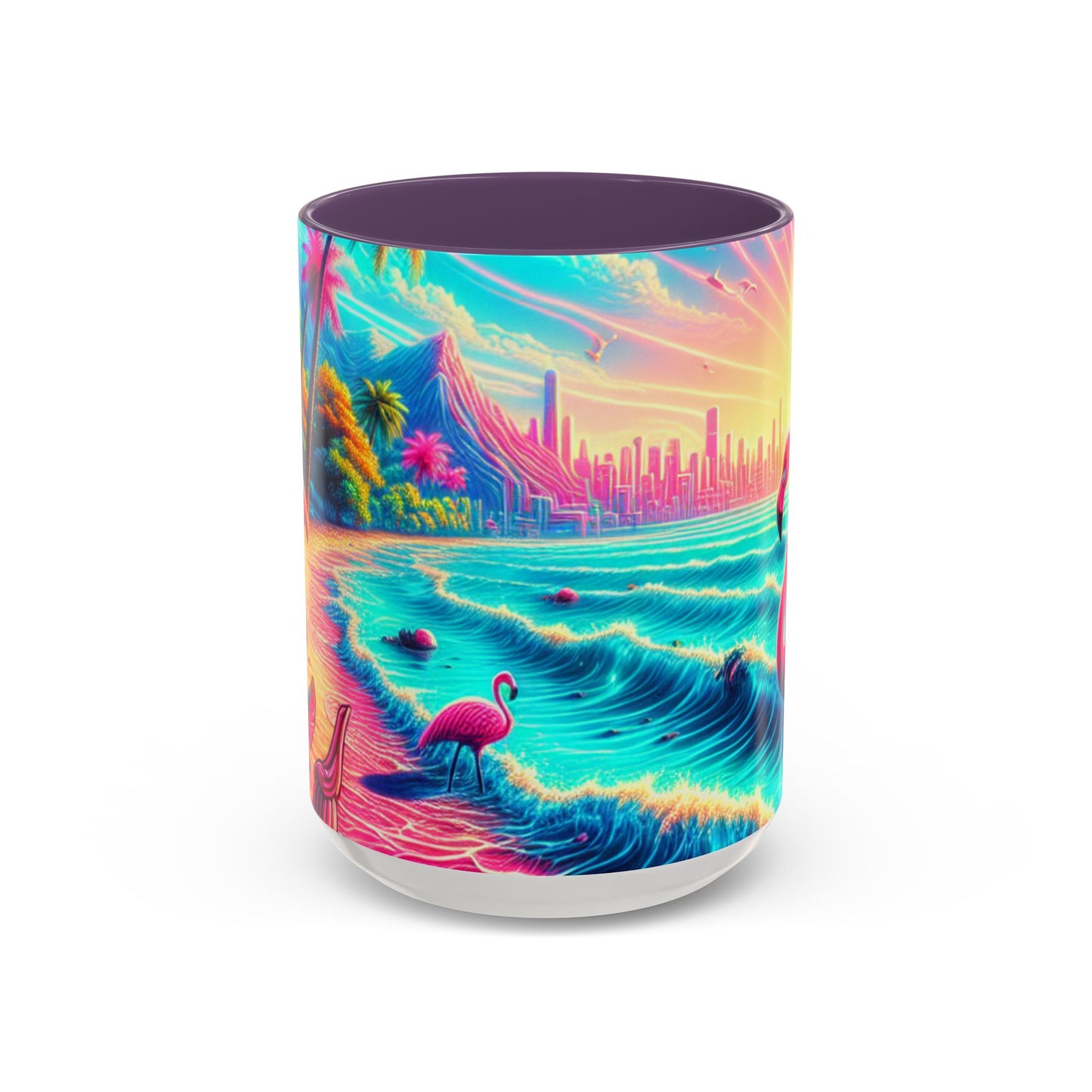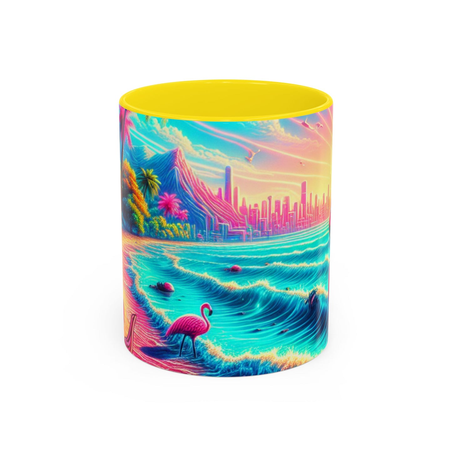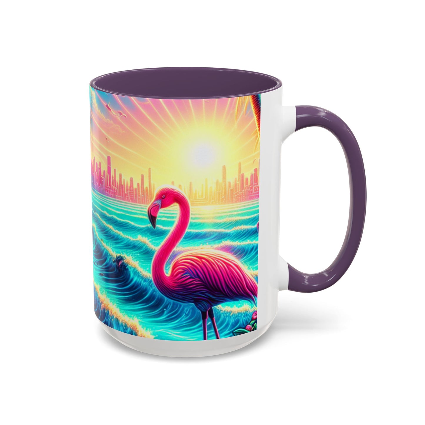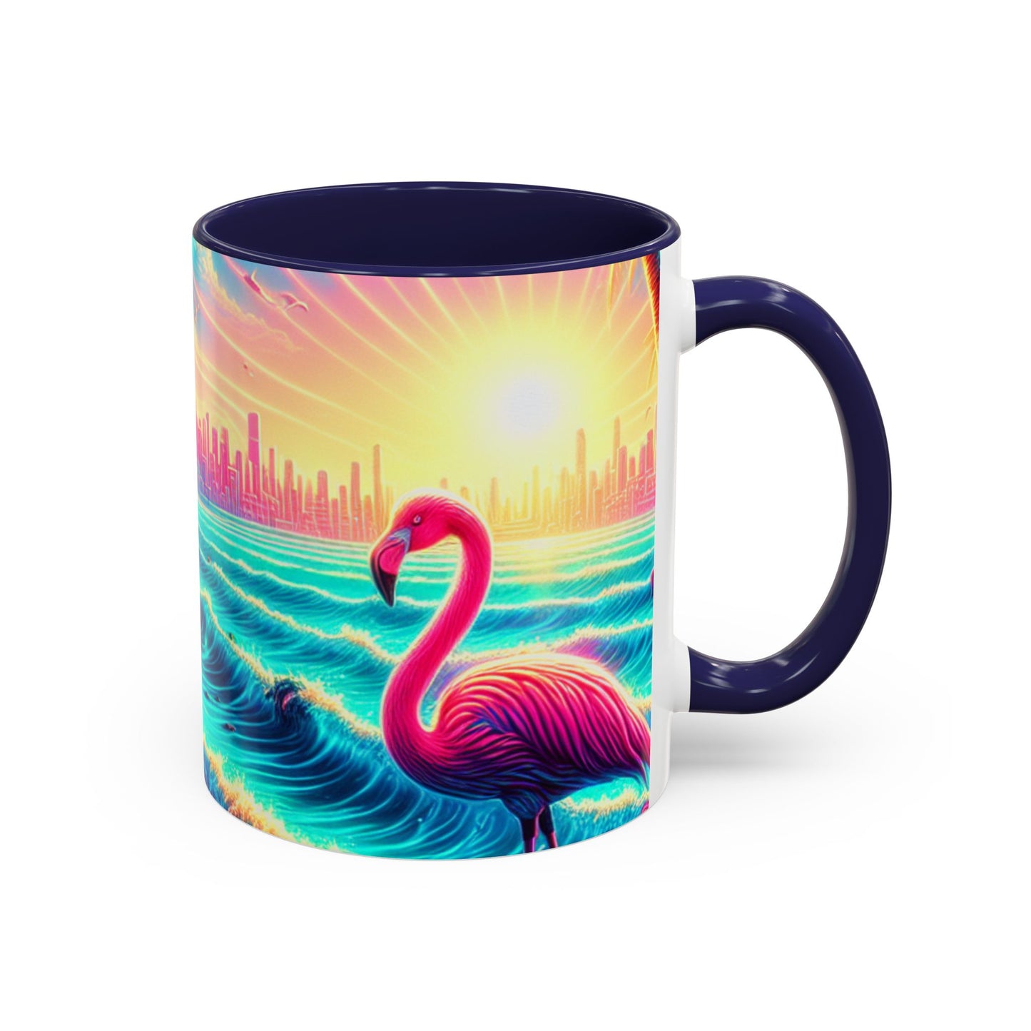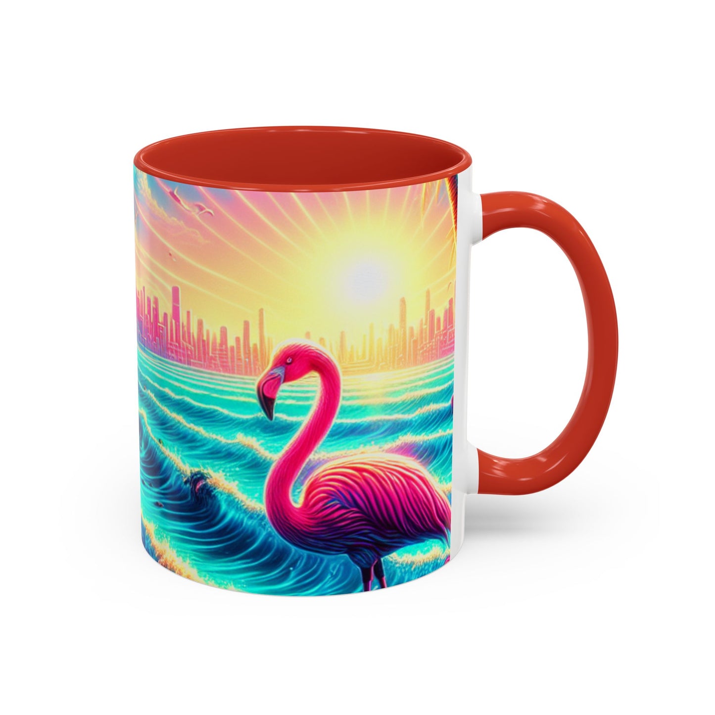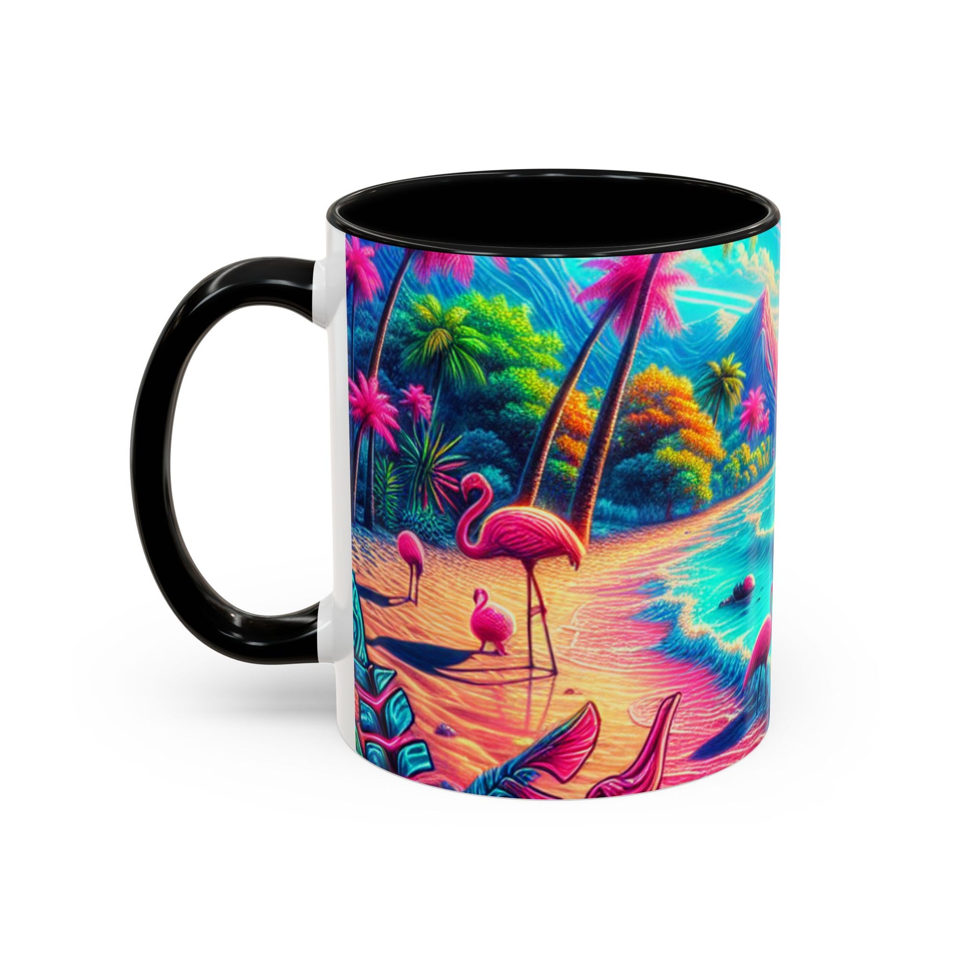 Accent Color Coffee Mug (11, 15oz) / Pop Art Flamingo Beach, Various Colors