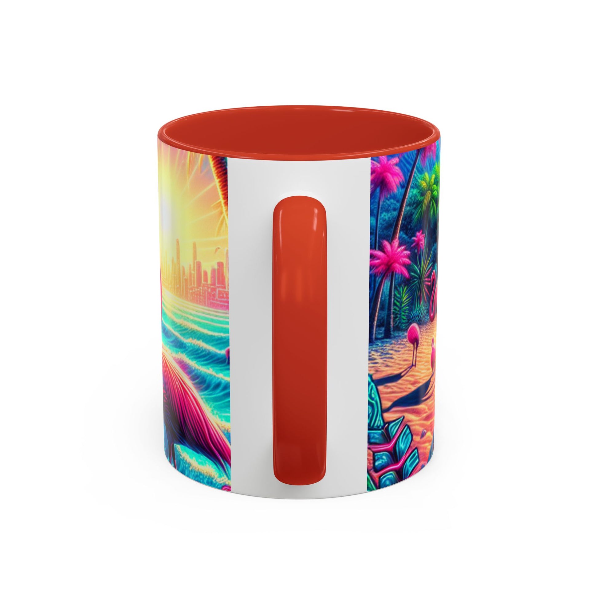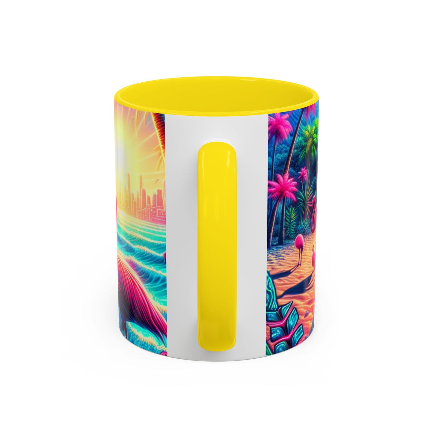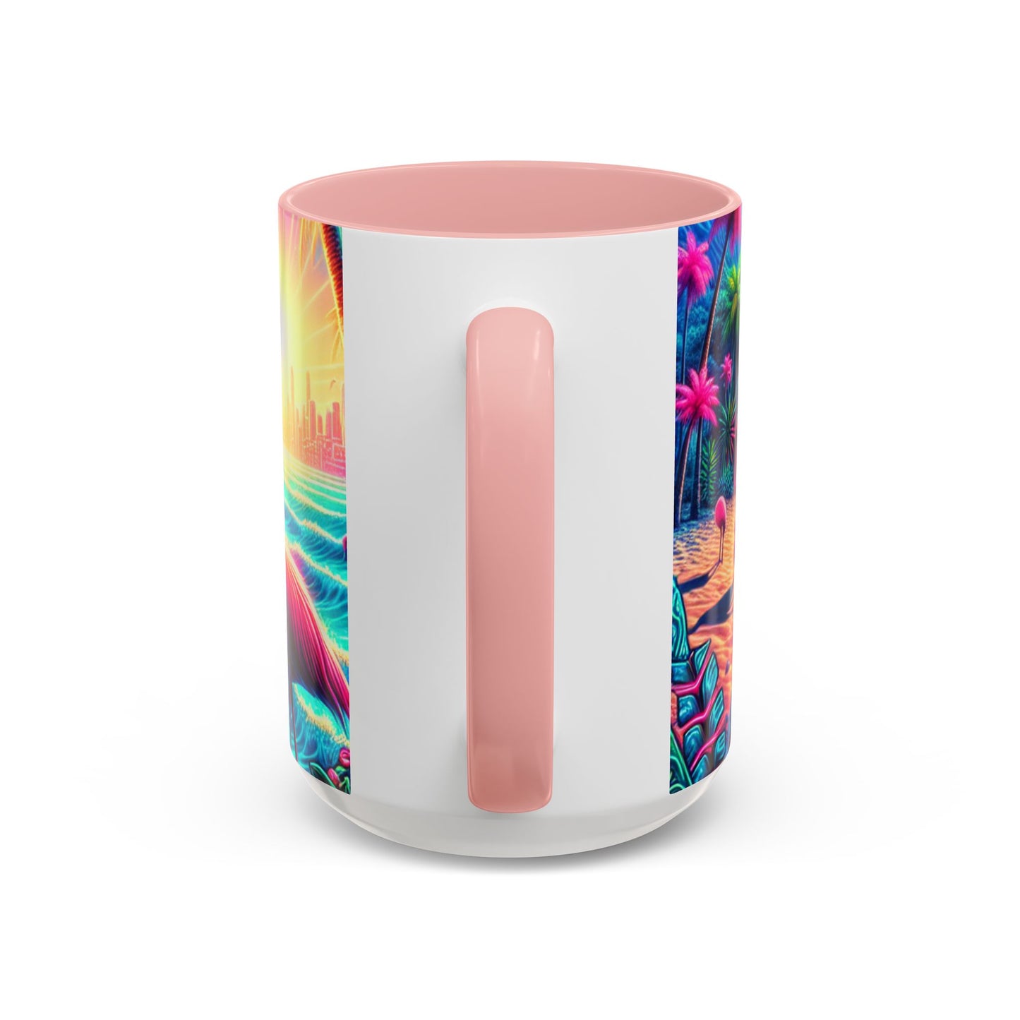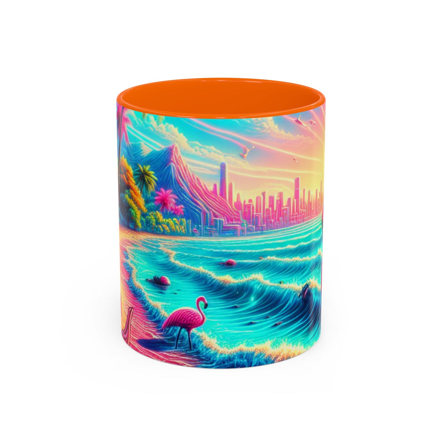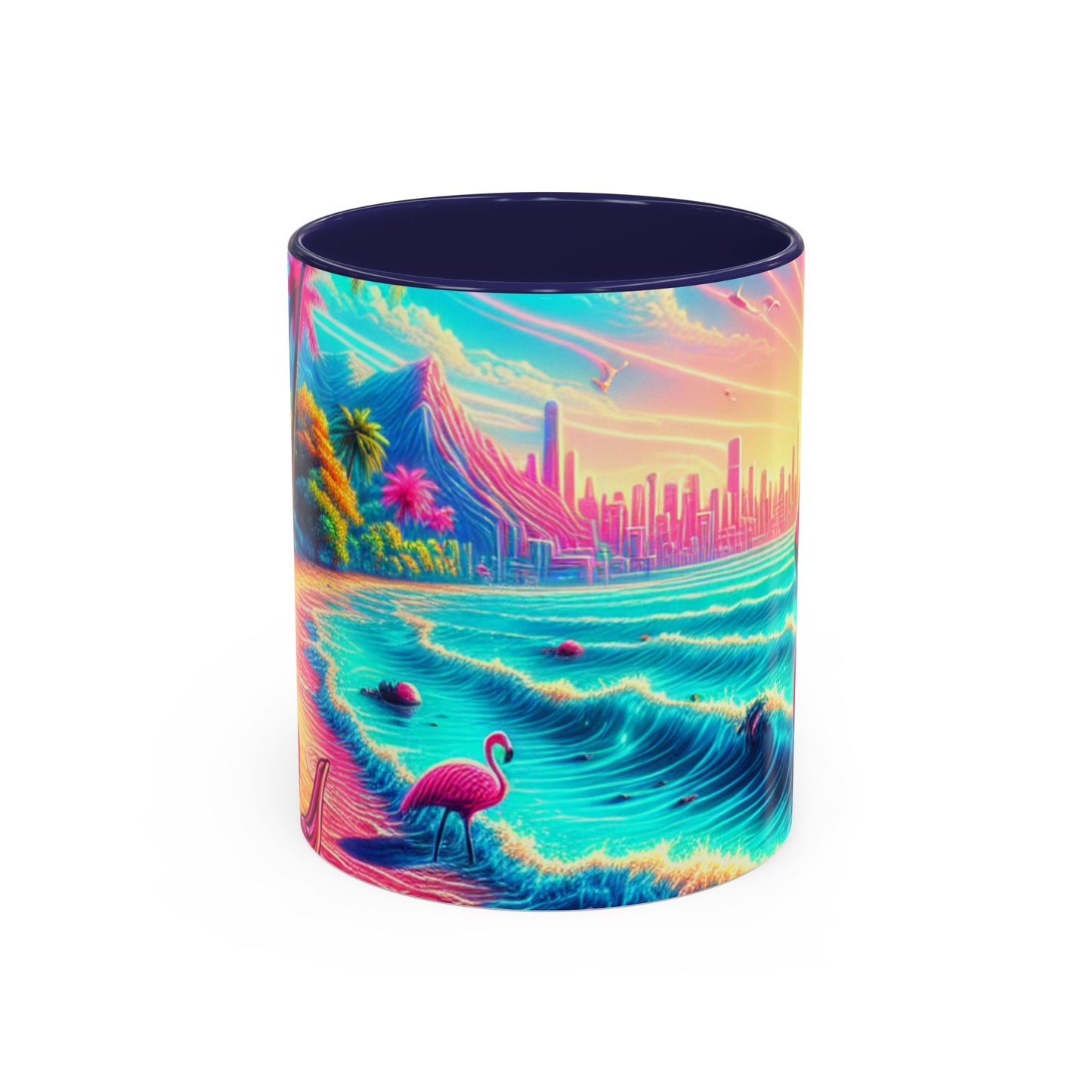 Accent Color Coffee Mug (11, 15oz) / Pop Art Flamingo Beach, Various Colors