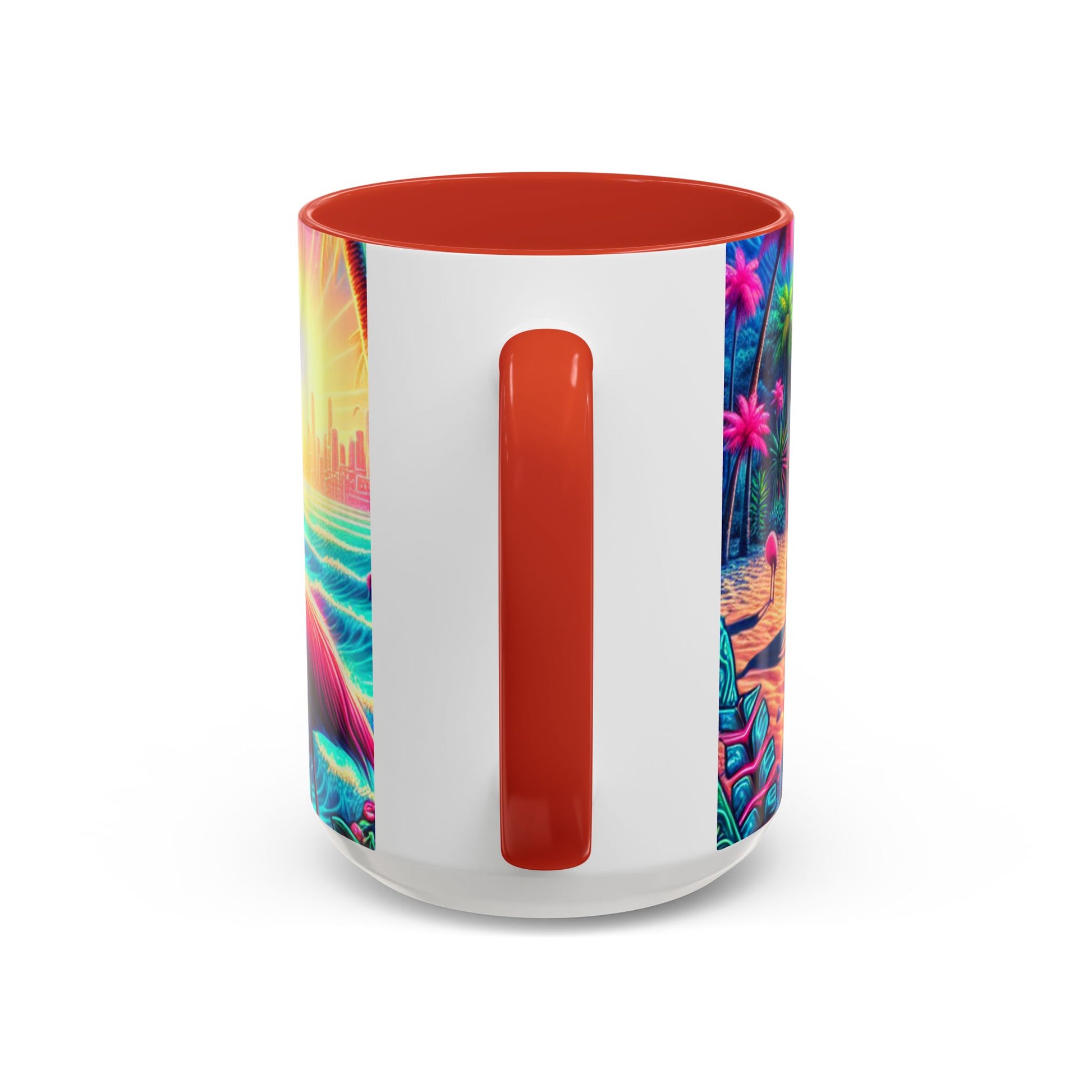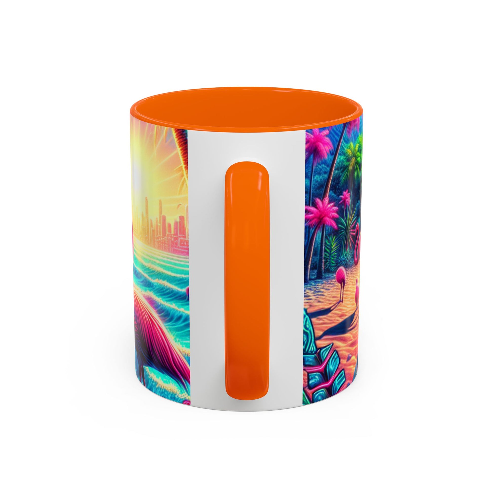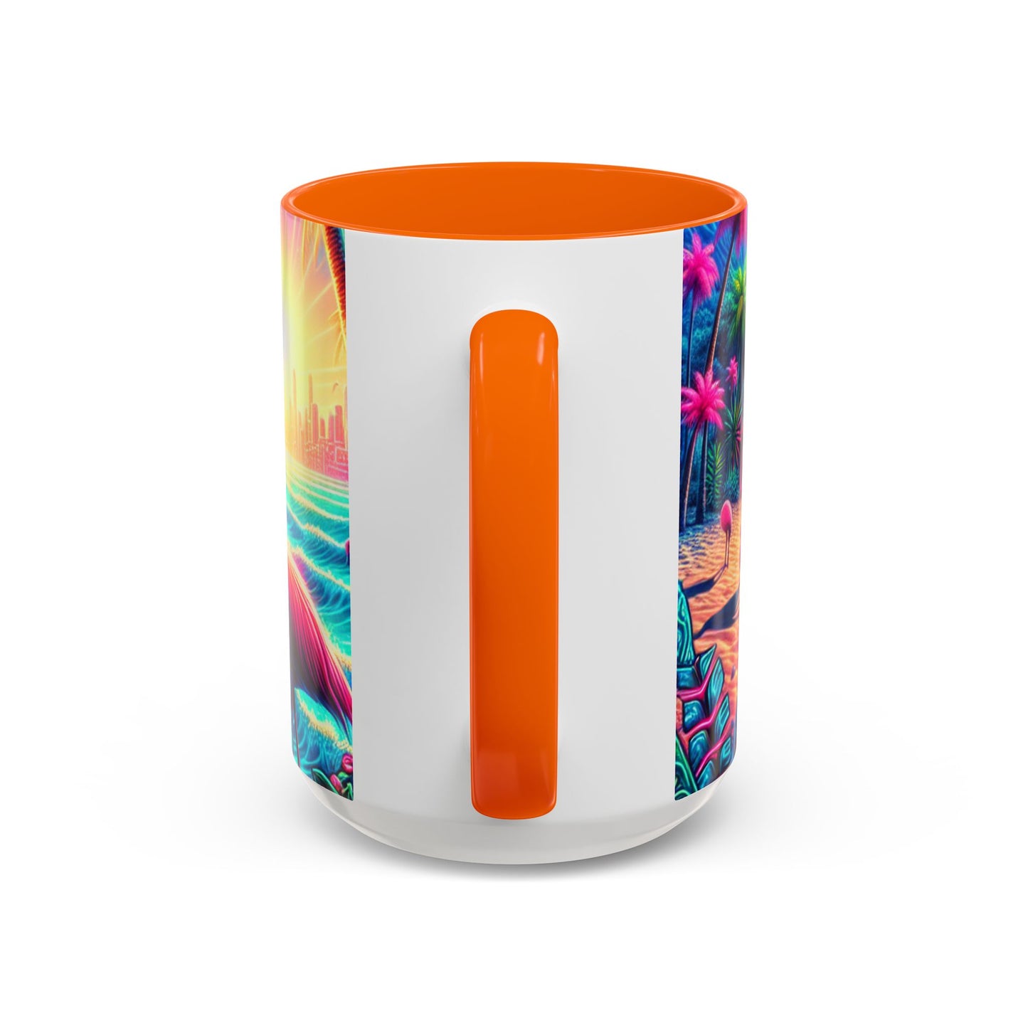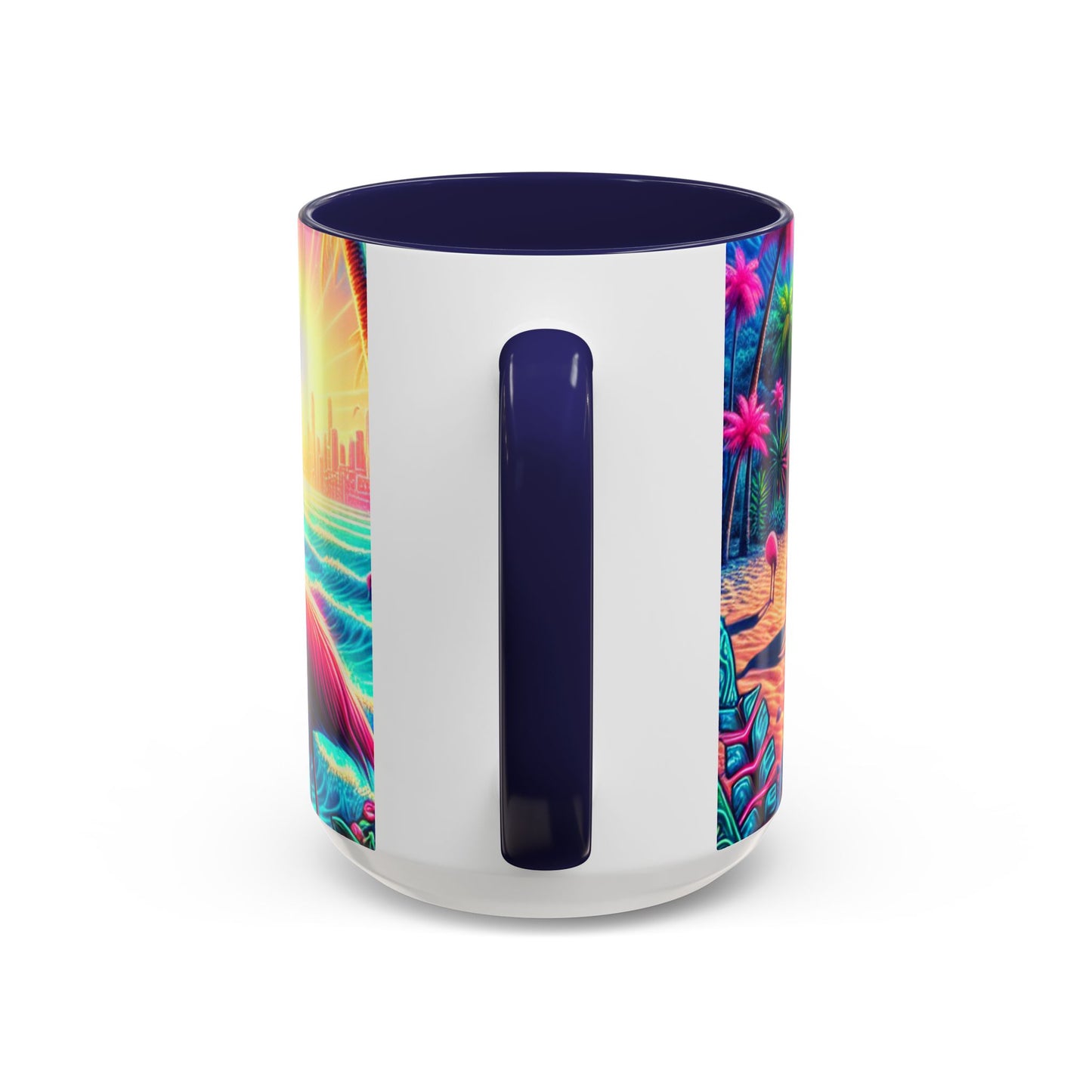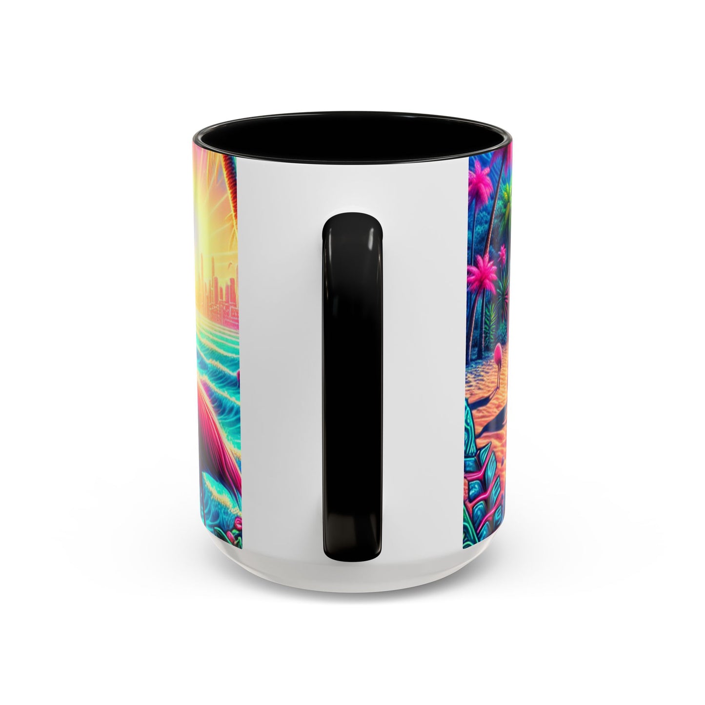 Accent Color Coffee Mug (11, 15oz) / Pop Art Flamingo Beach, Various Colors