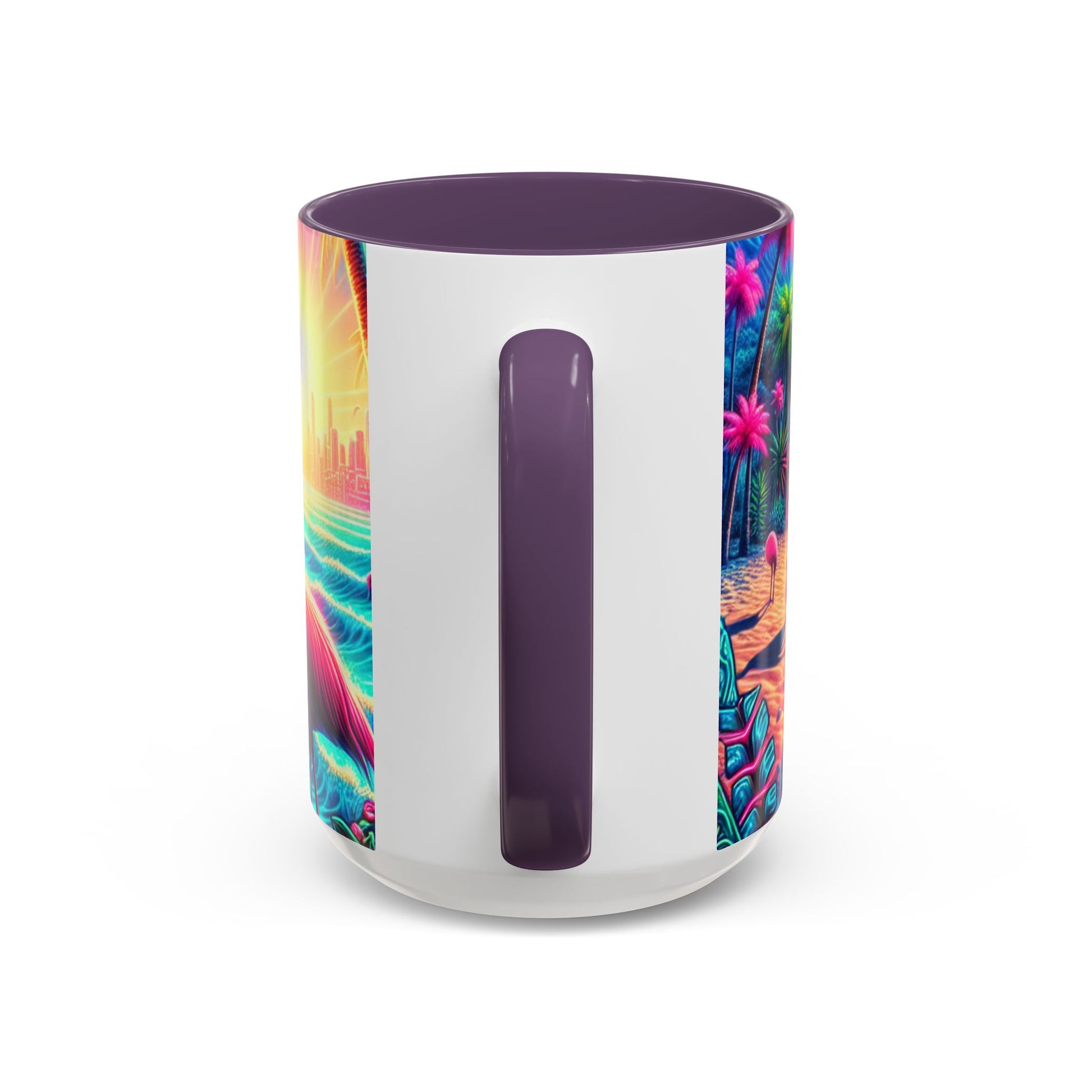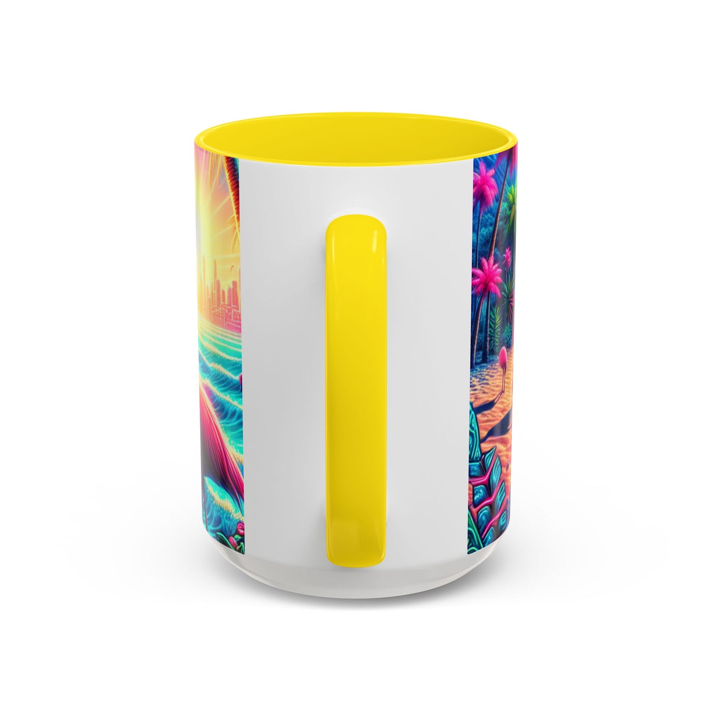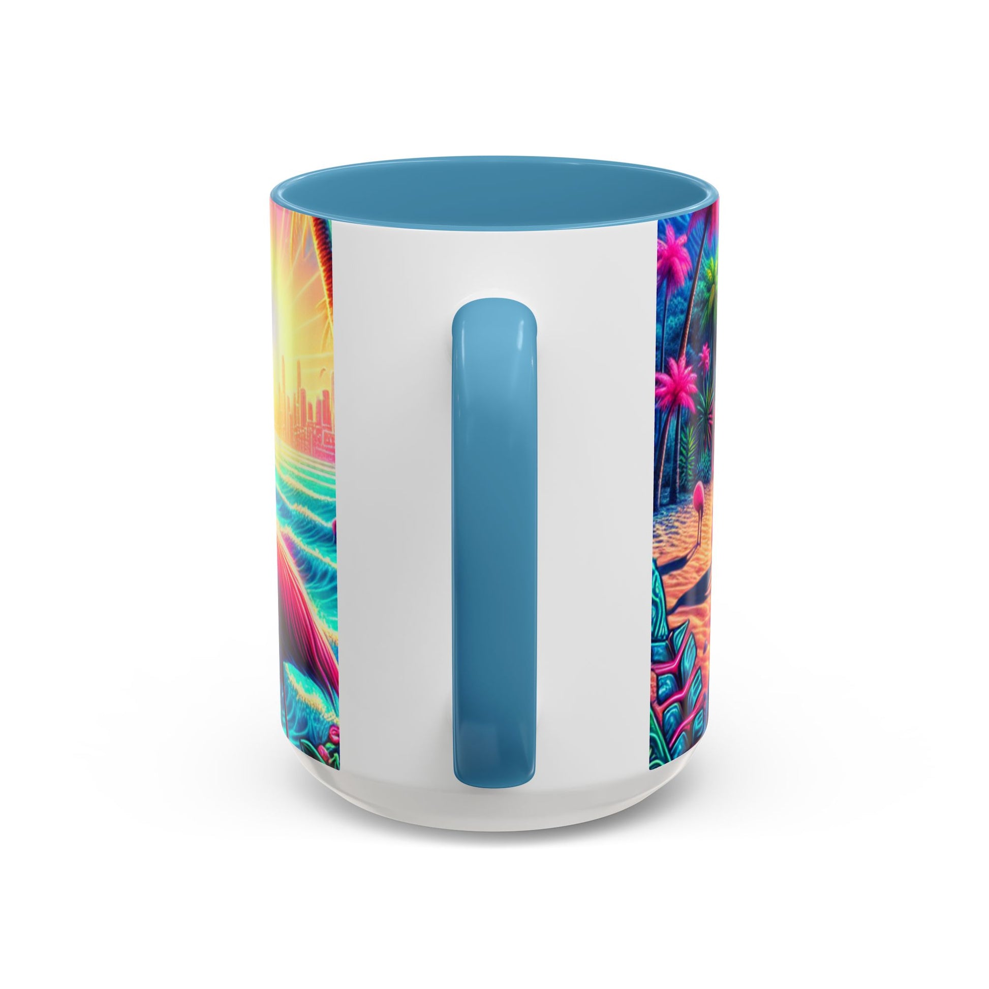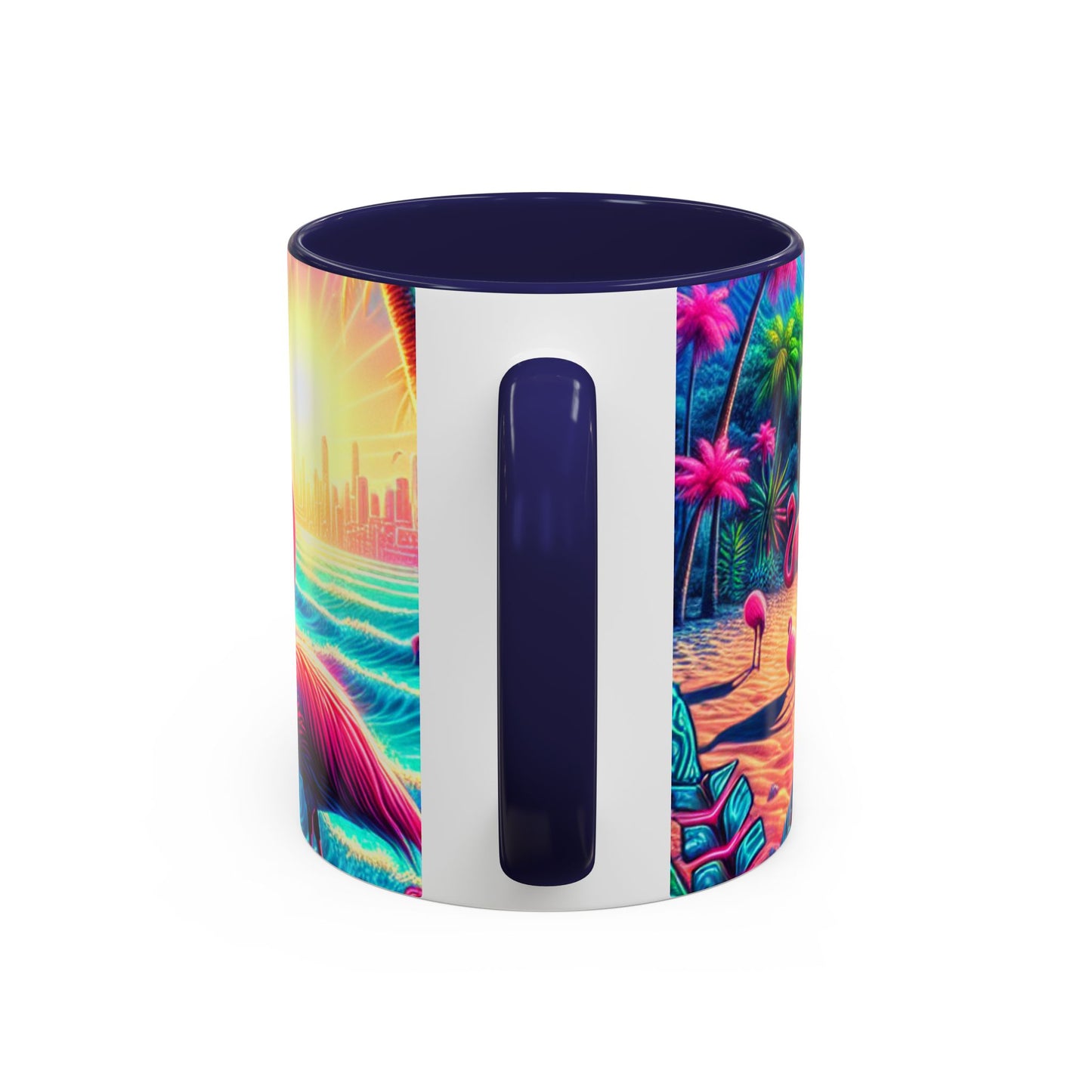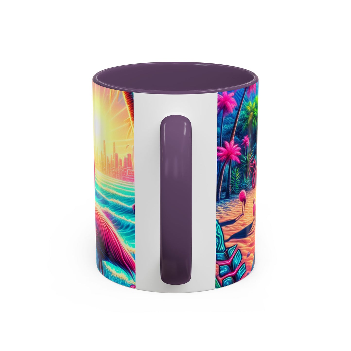 Accent Color Coffee Mug (11, 15oz) / Pop Art Flamingo Beach, Various Colors