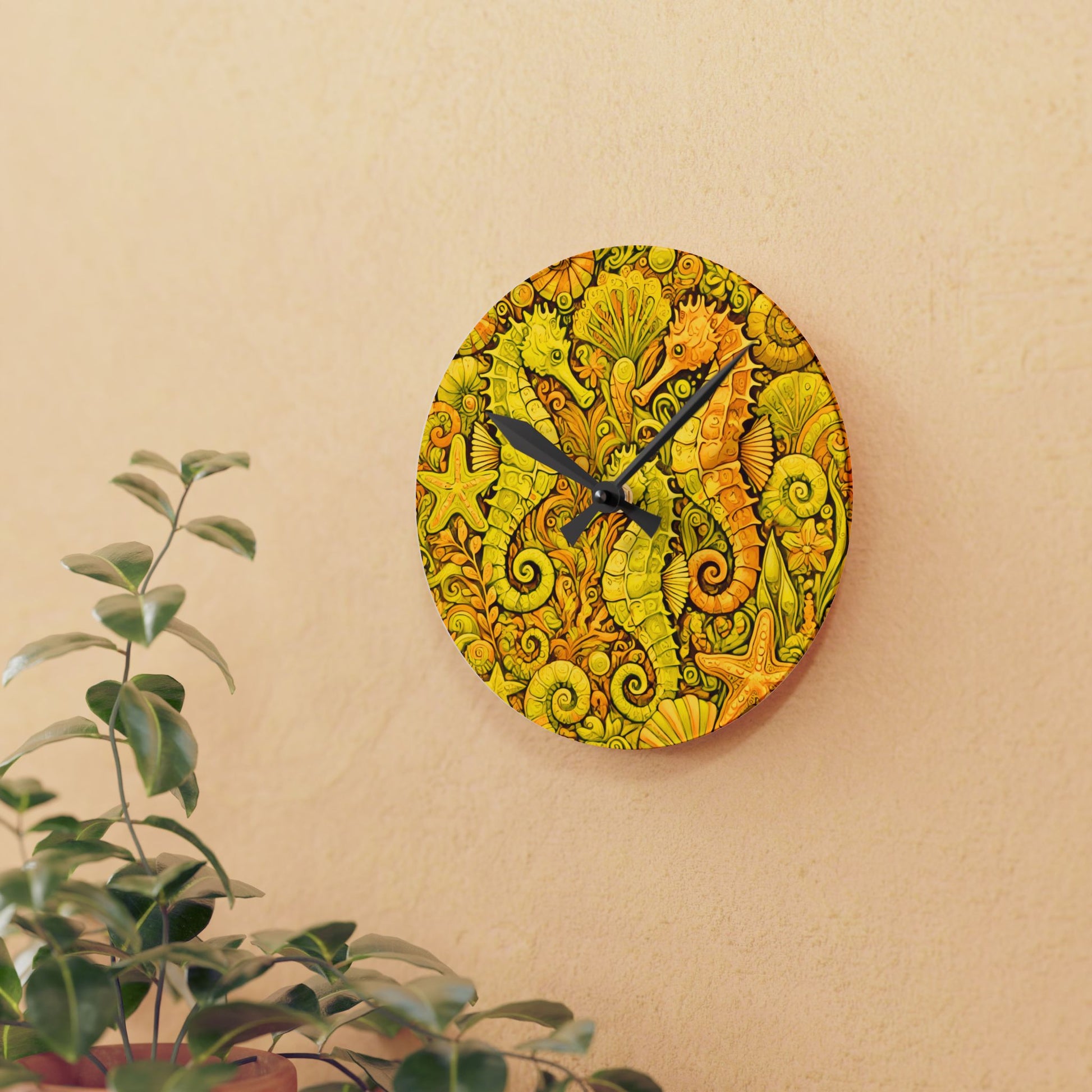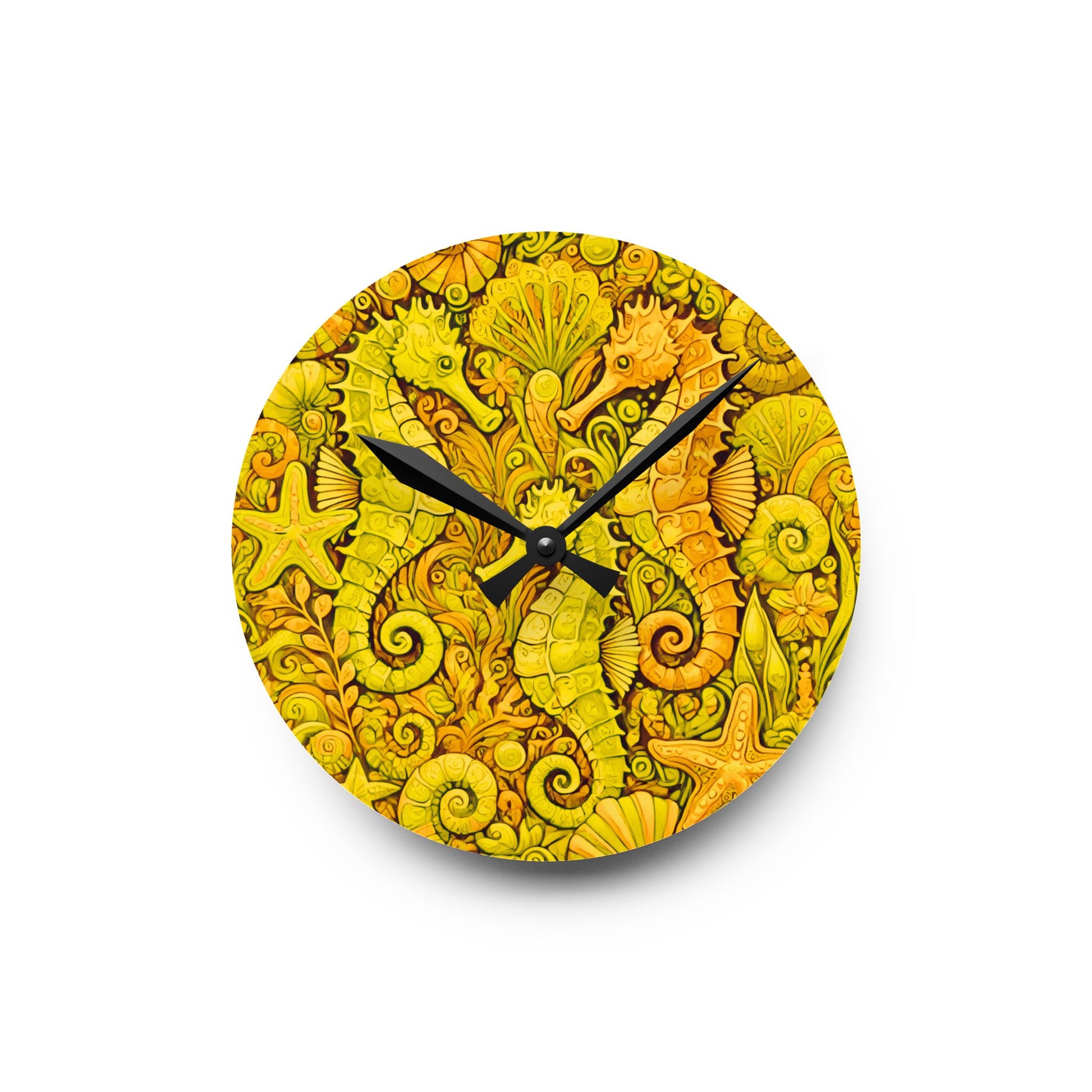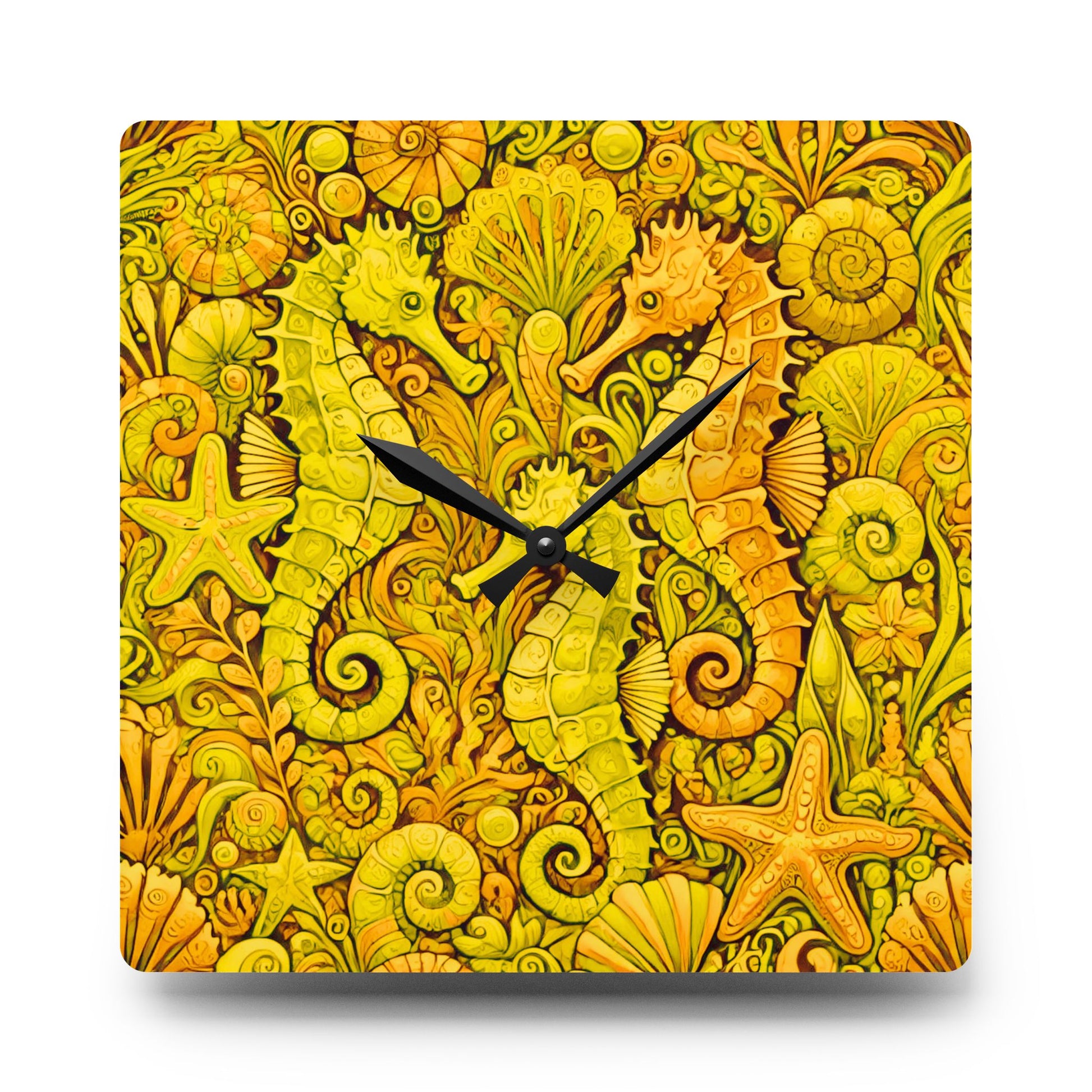Acrylic Wall Clock / Seahorse Trio, Yellow