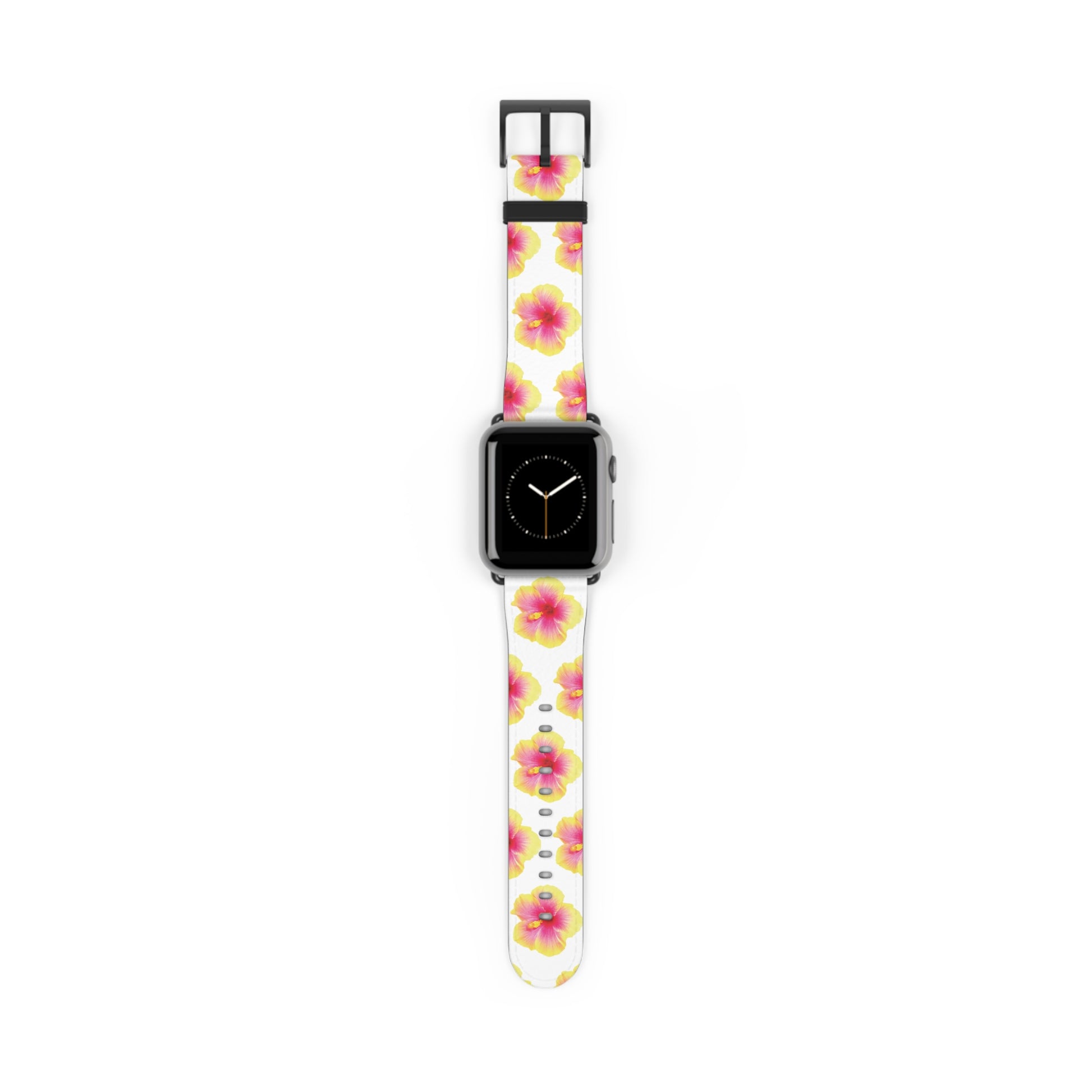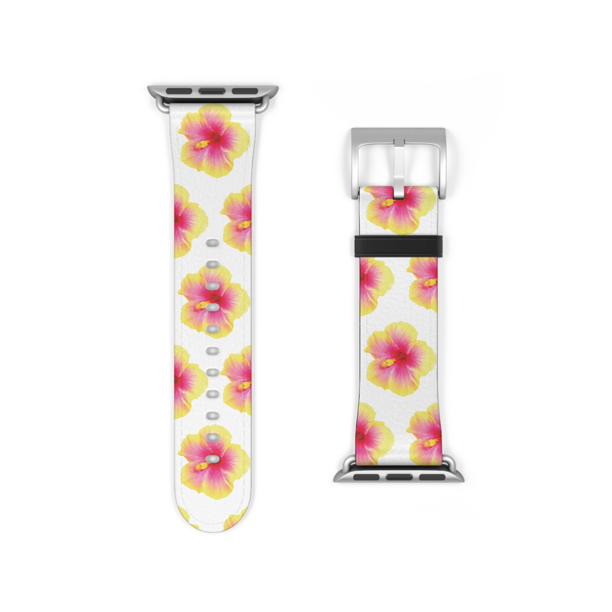Apple Watch Band - REAL Yellow/Orange Hibiscus Flower, White