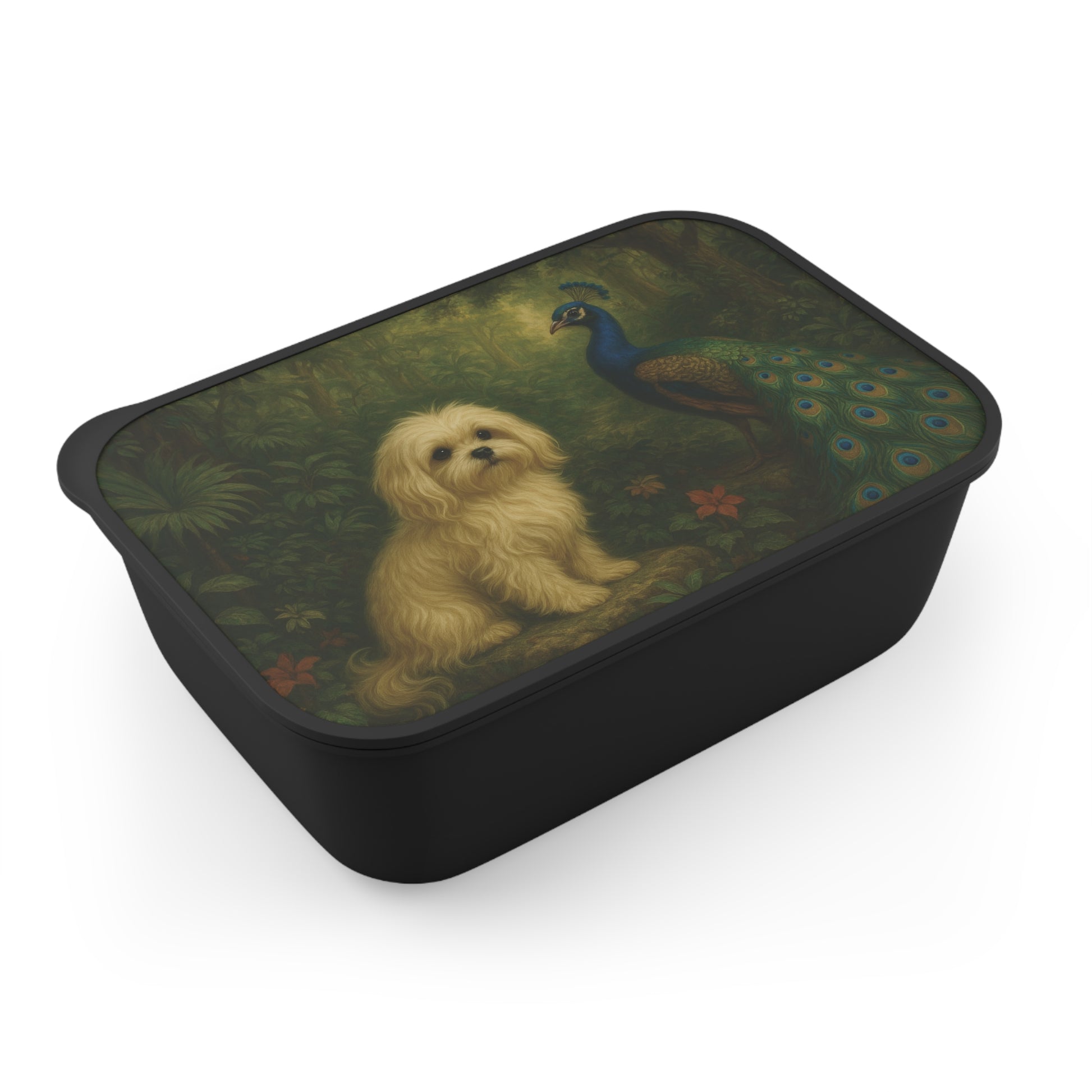 Bento Box with Utensils - Puppy Ariel and Peacock