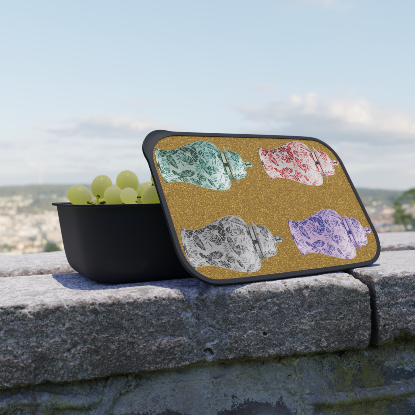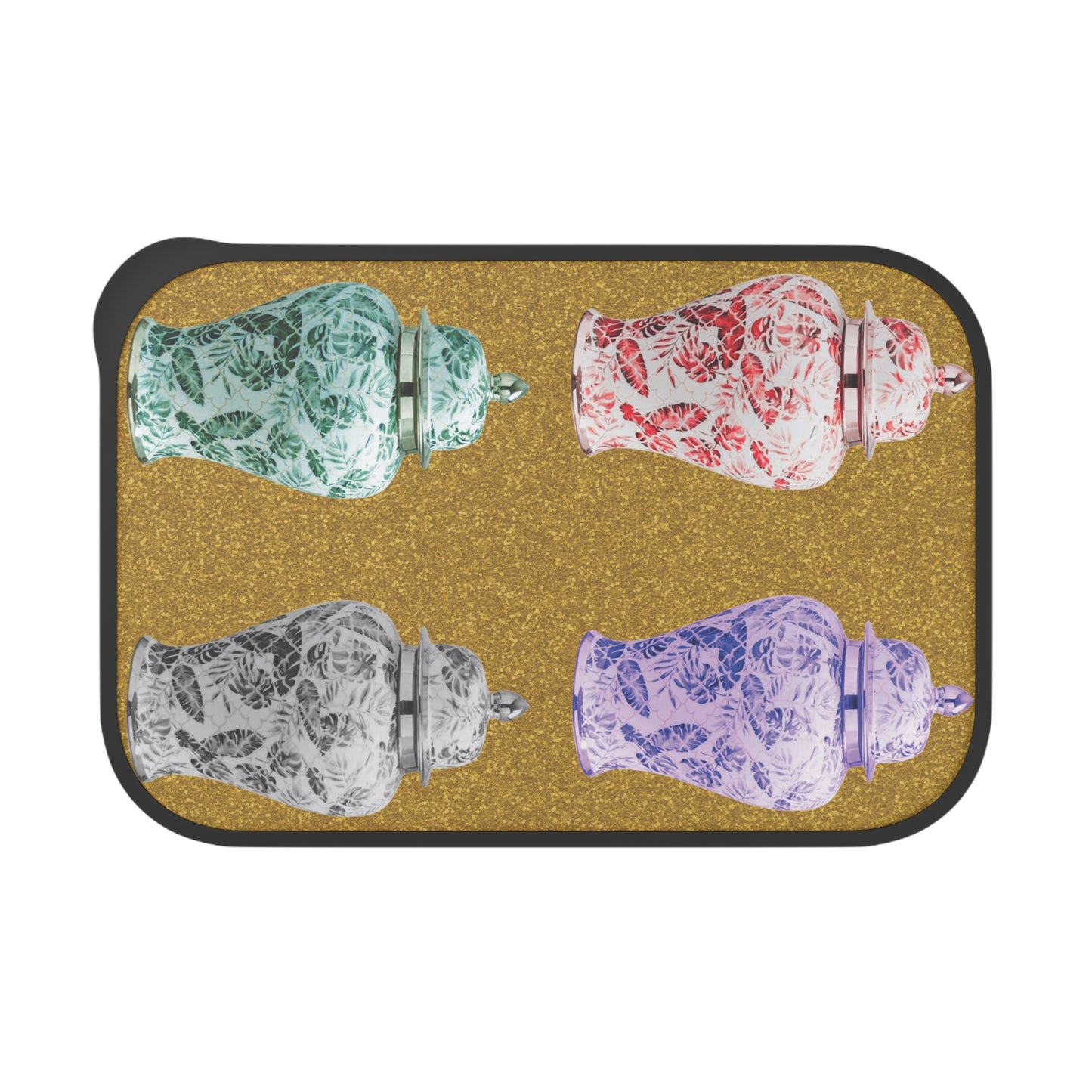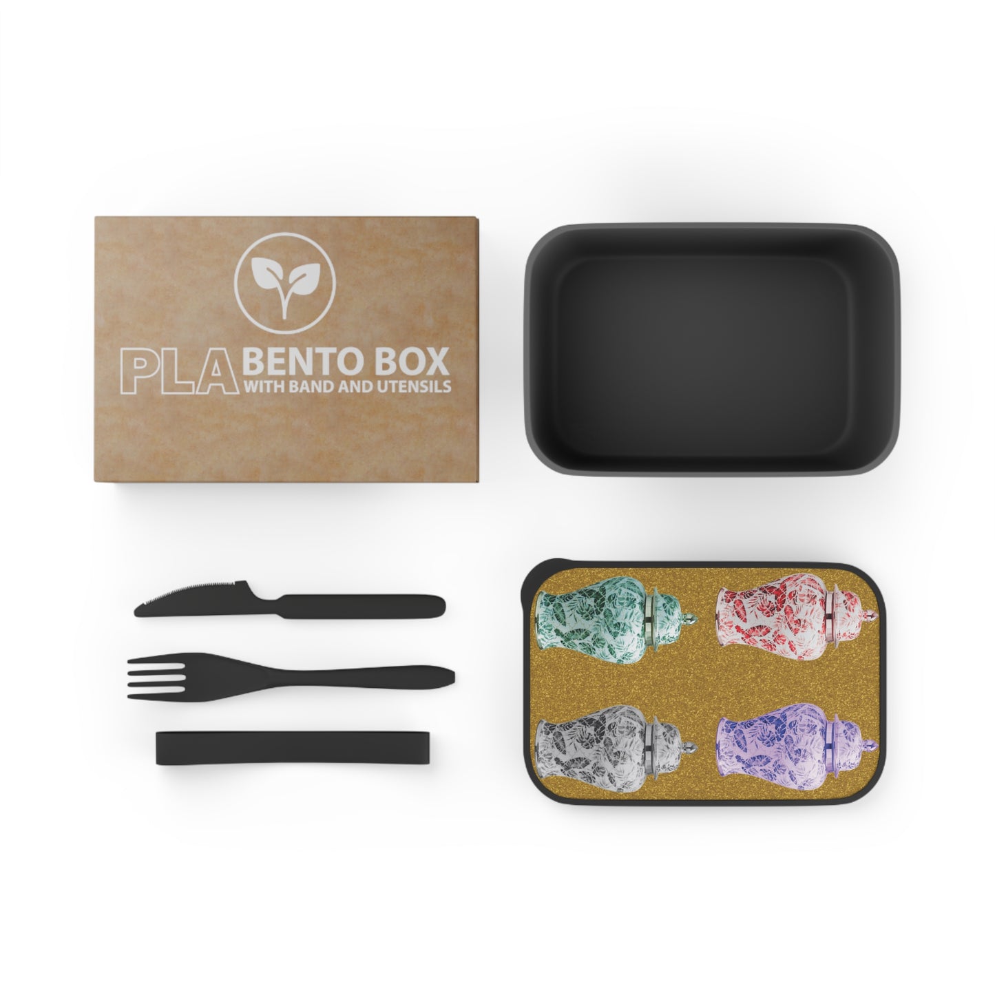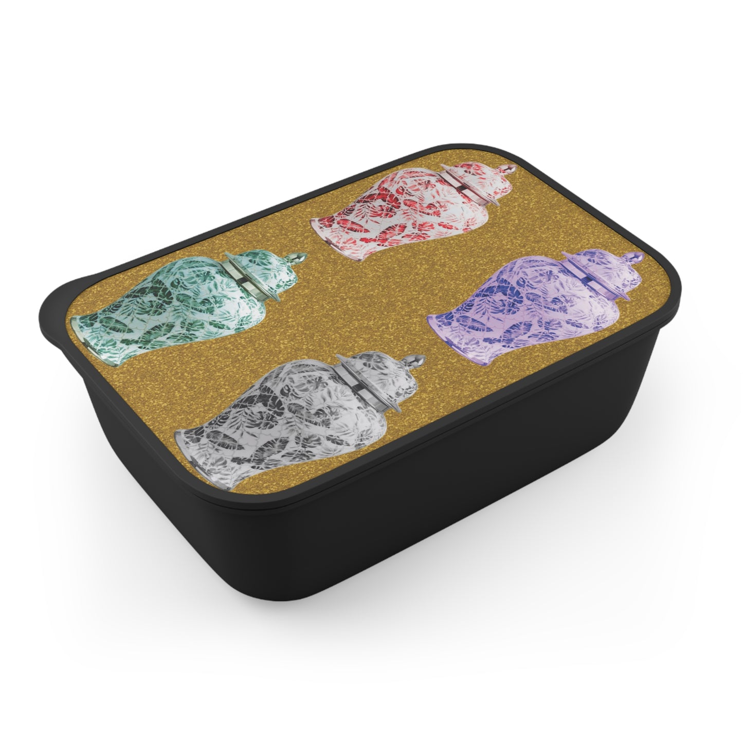 Bento Box with Utensils - Tropical Ginger Jars, gold