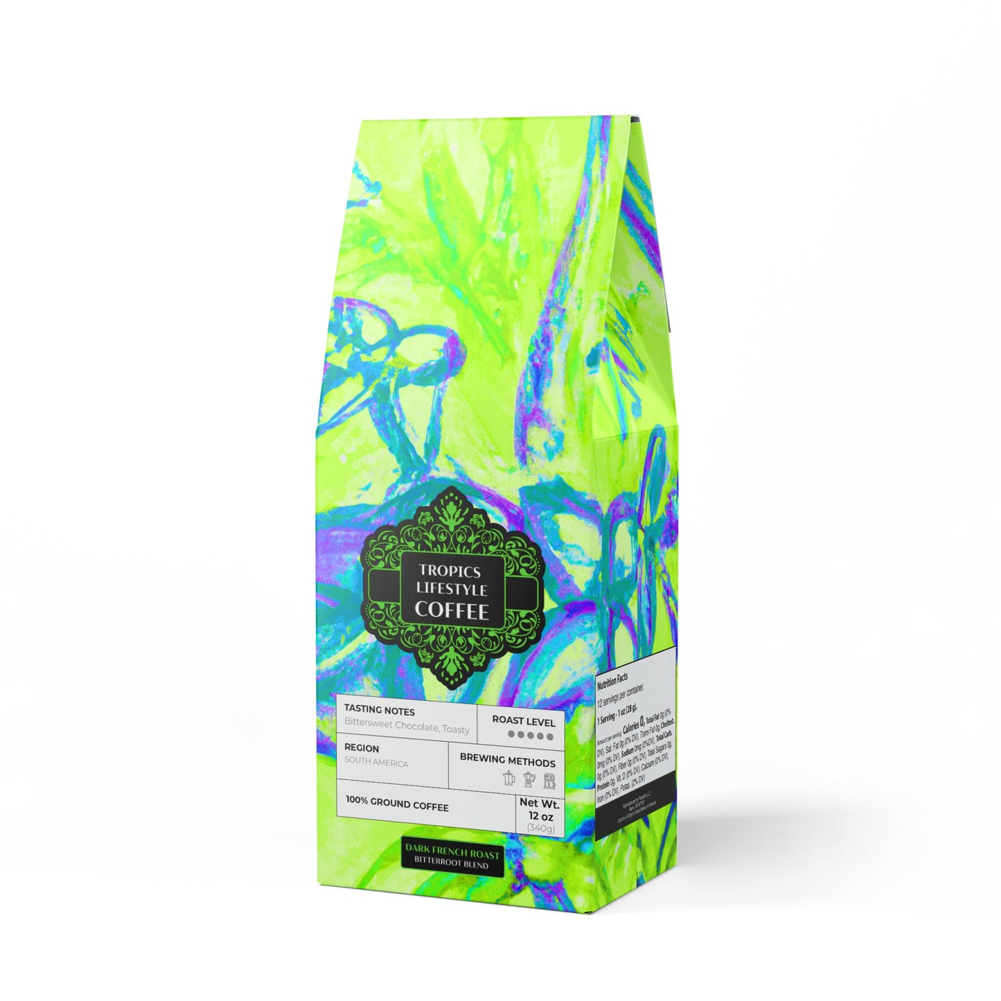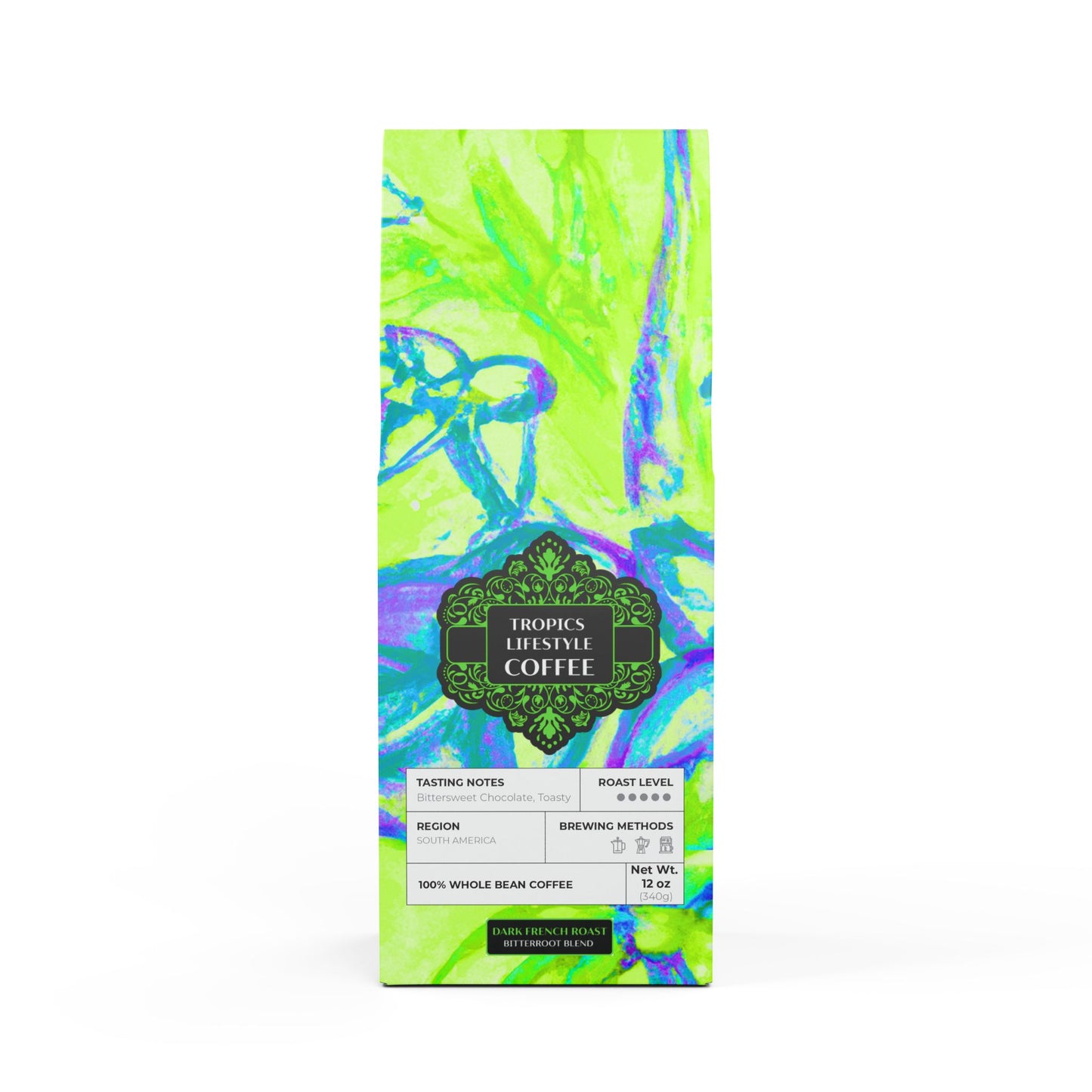 If you love coffee with a strong personality and deep flavors then the Bitterroot Coffee Blend is made for you. This 12oz package features a Dark French roast, delivering a bittersweet and toasty flavor profile with a strong finish along with rich flavors of cocoa and toasted nuts. Sourced from South America, this blend is meant to be enjoyed by brewing in your drip coffee maker, French press, or percolator. Available in whole bean and ground options. Roasted with care in the USA from ingredients sourced worldwide. Limited-edition bag art features our original Tropical Doodles stylized design, taking you on a virtual vacay every day. Don't run out! Join our monthly Subscription coffee plan.