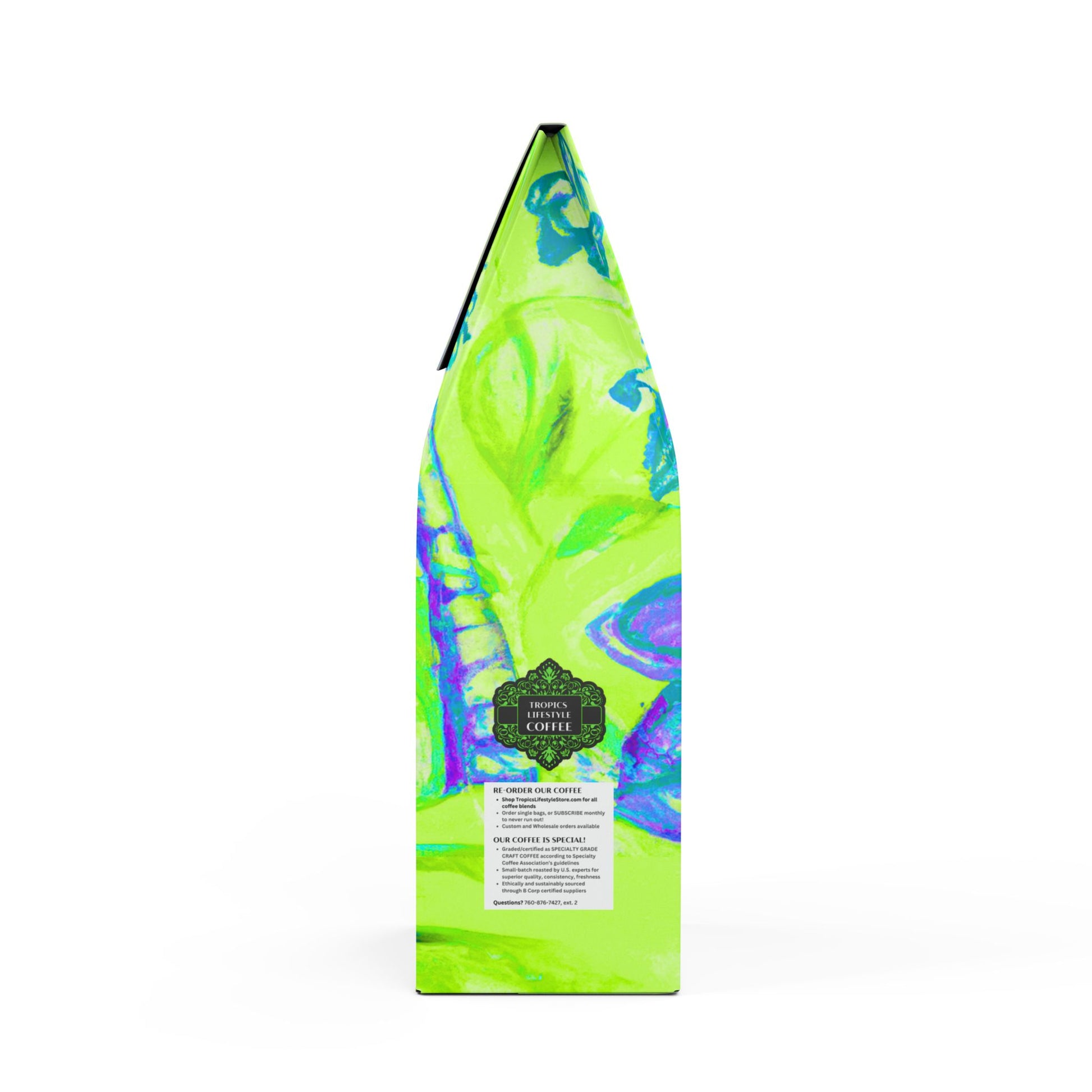 Black Coral Blend™ Blend (Dark French Roast) Specialty Grade Craft Coffee / Tropical Doodles, Lime
