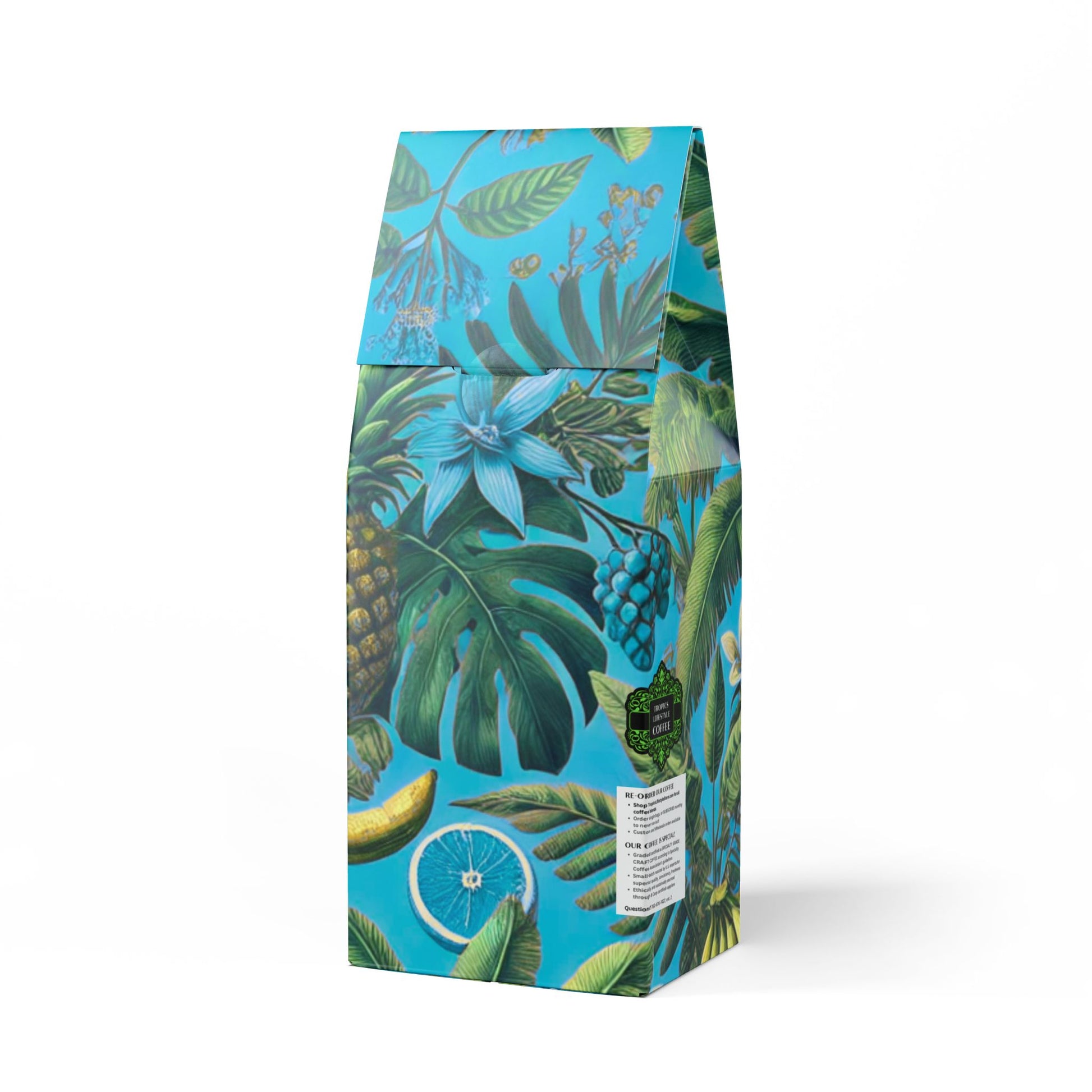 Black Coral Blend™ (Dark French Roast) Specialty Grade Craft Coffee / More Tropical Fruit, Aqua Blue