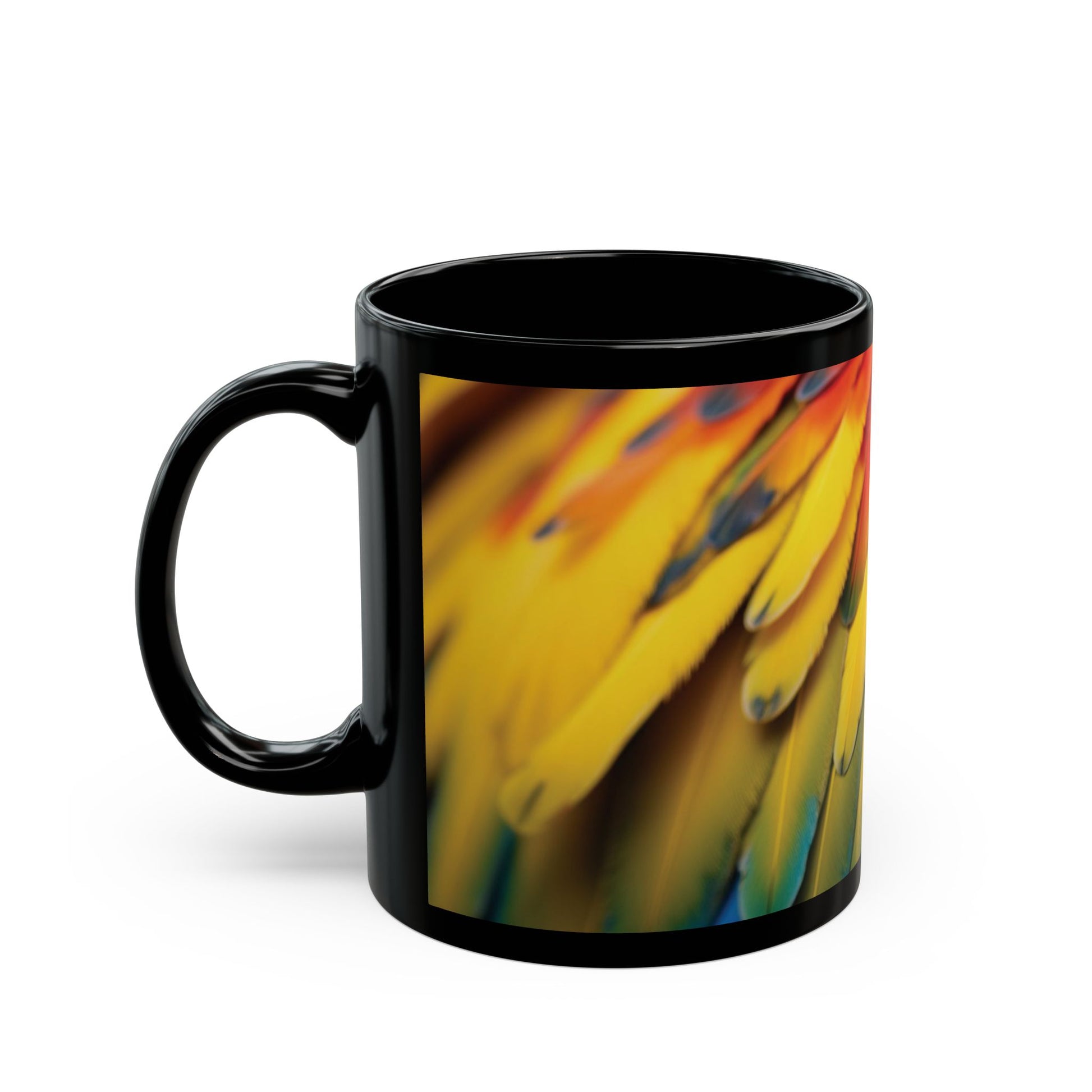 Black Coffee Mug - Colorful Macaw Parrot Feathers