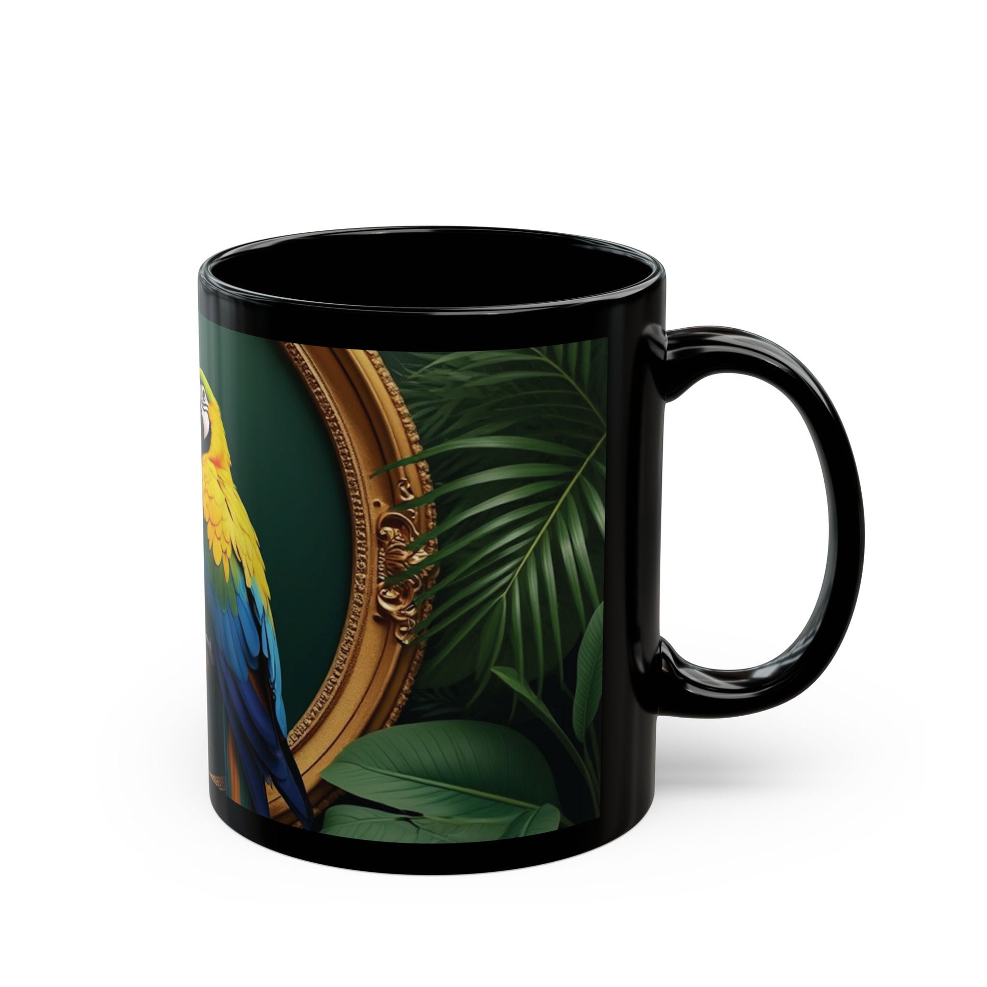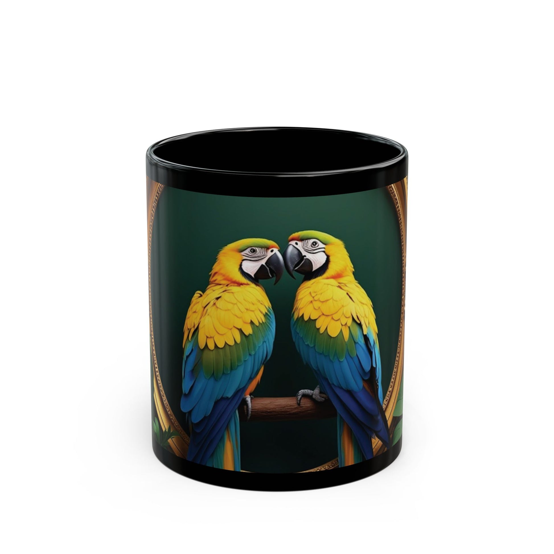 Enjoy chilling with our exclusive design of a framed pair of rainforest parrots in love givng off tropical, fun vibes. This mug certainly makes every sip of your beverage more fun and relaxing.
