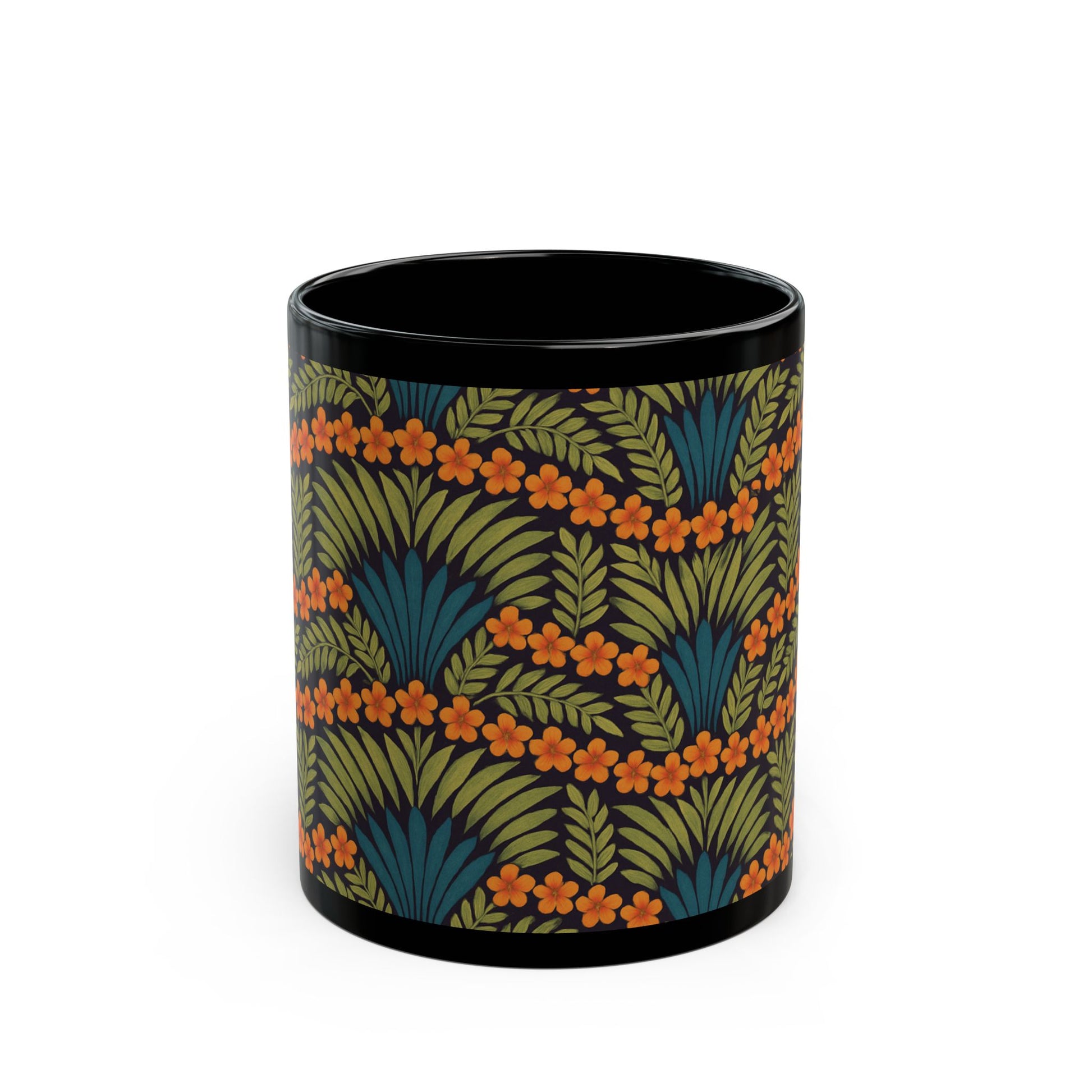 Black Coffee Mug - Hibiscus Fan Dance, Orange