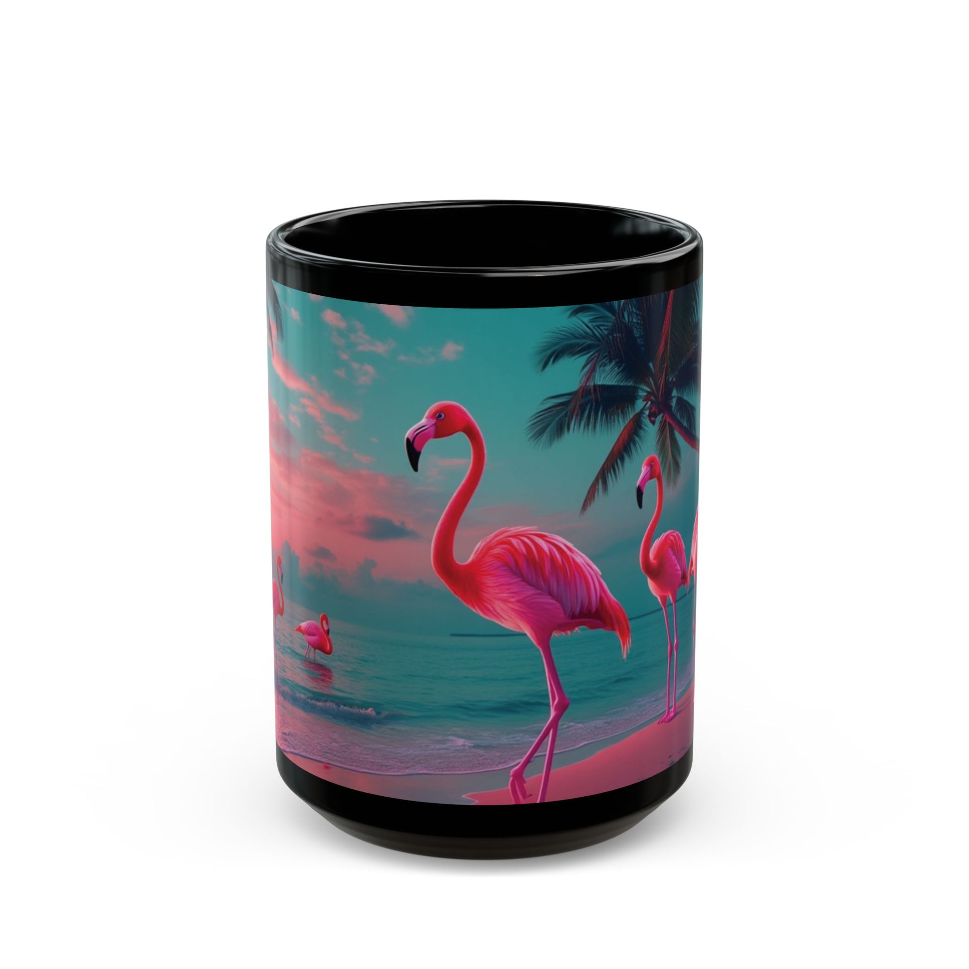 Black Coffee Mug - Neon Flamingos at Night