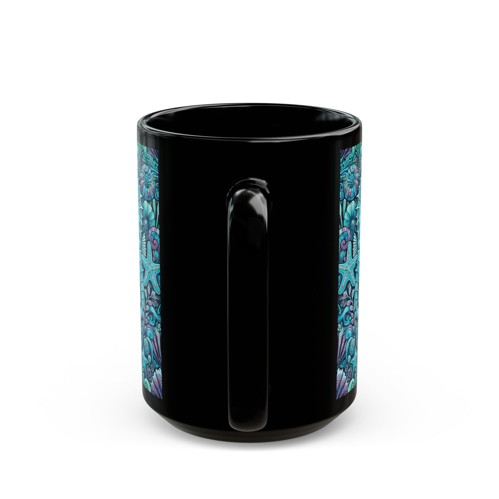 Black Coffee Mug - Seahorse Party, Turquoise