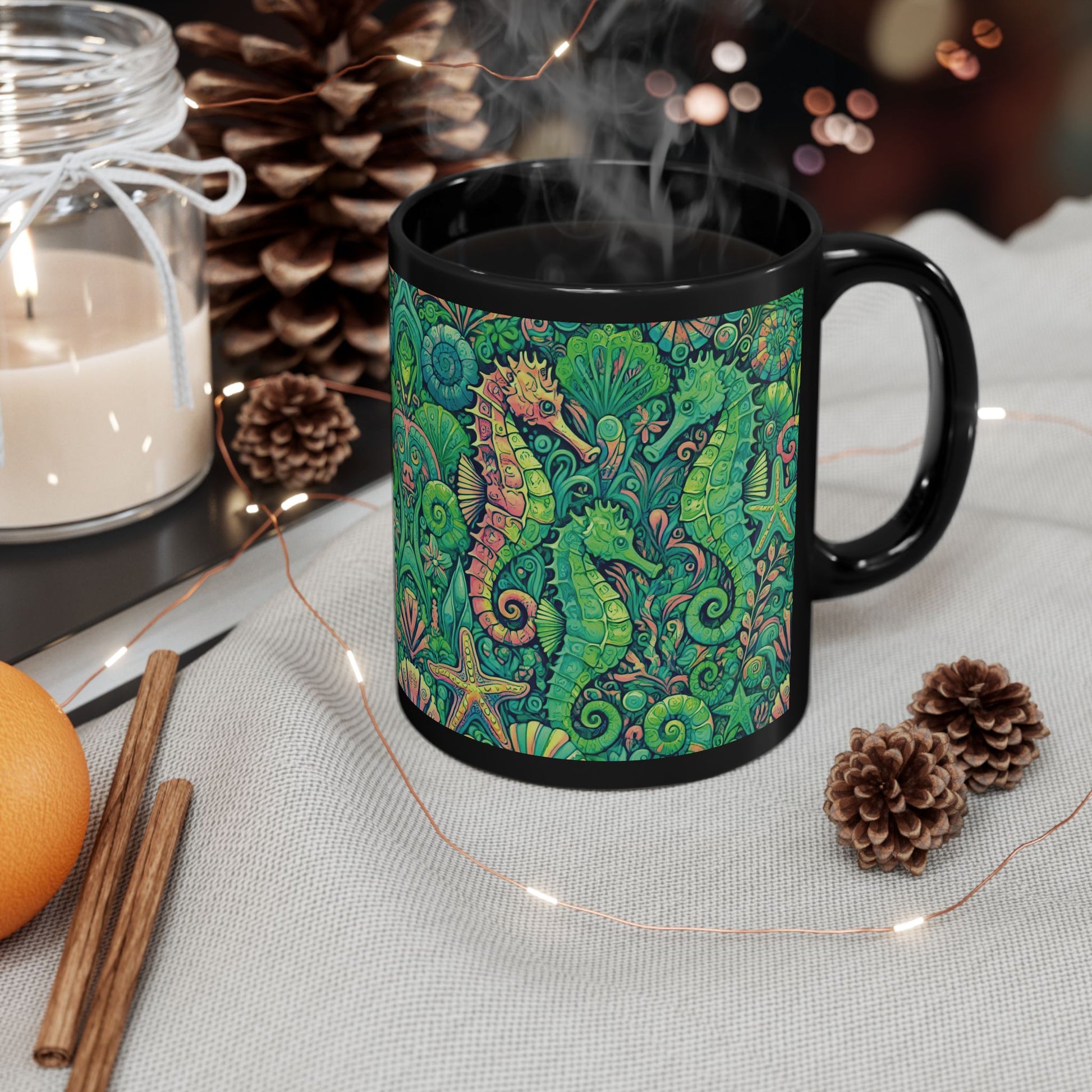Enjoy chilling with our exclusive seahorse fantasy design evoking Art Deco vibes. This mug certainly makes every sip of your beverage more fun and relaxing.