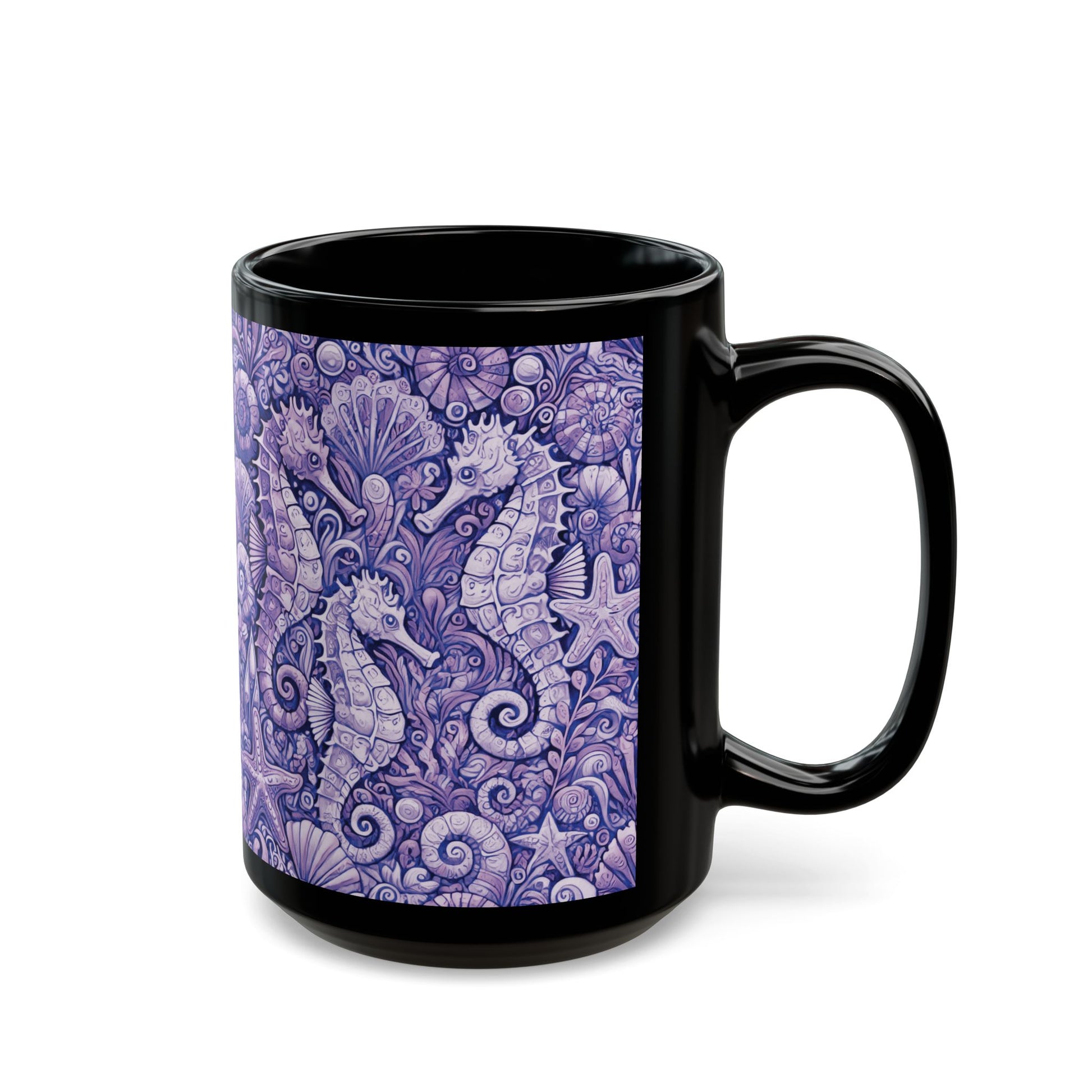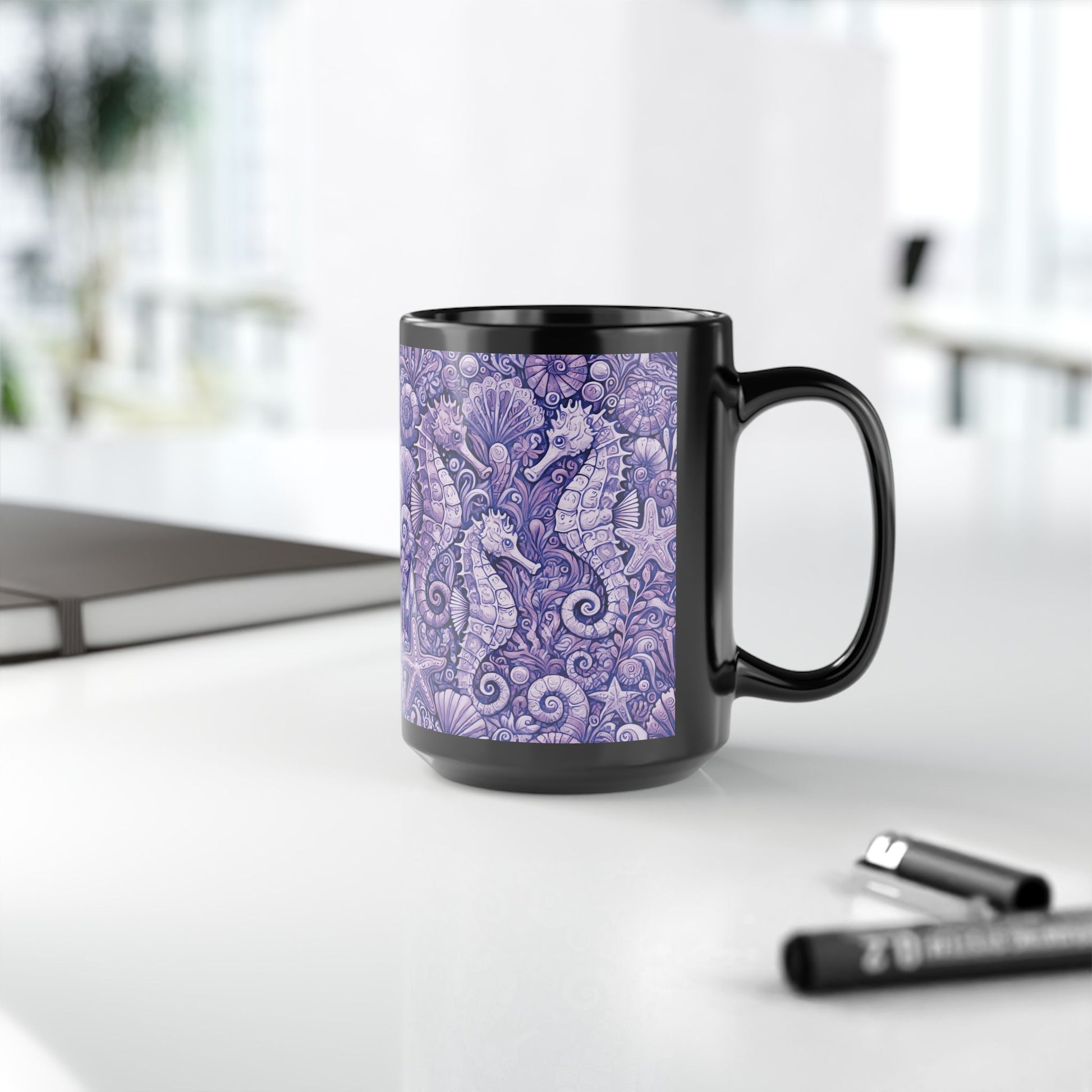Enjoy our exclusive design of a pod of cool seahorses evoking Art Deco vibes. This mug certainly makes every sip of your beverage more fun and relaxing.