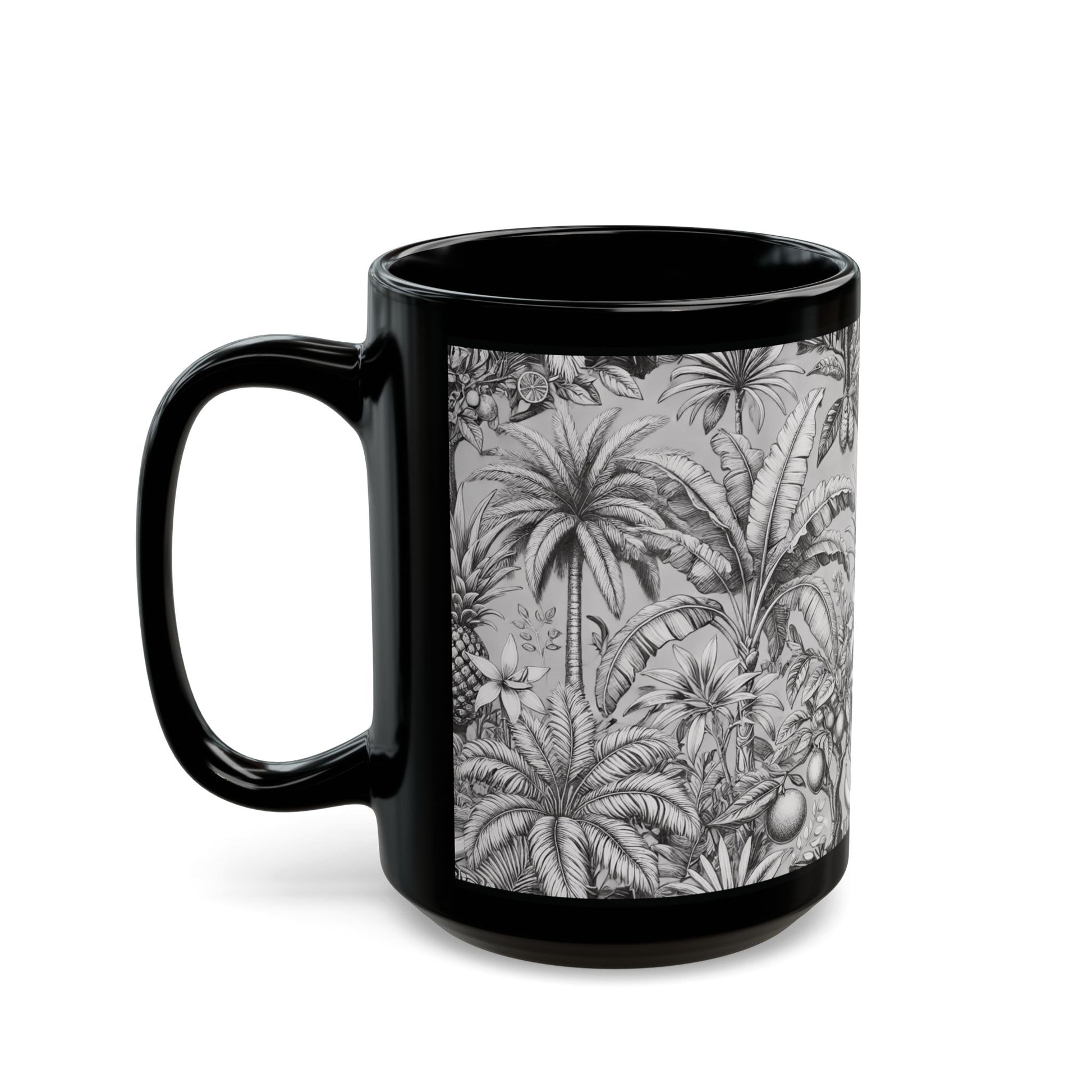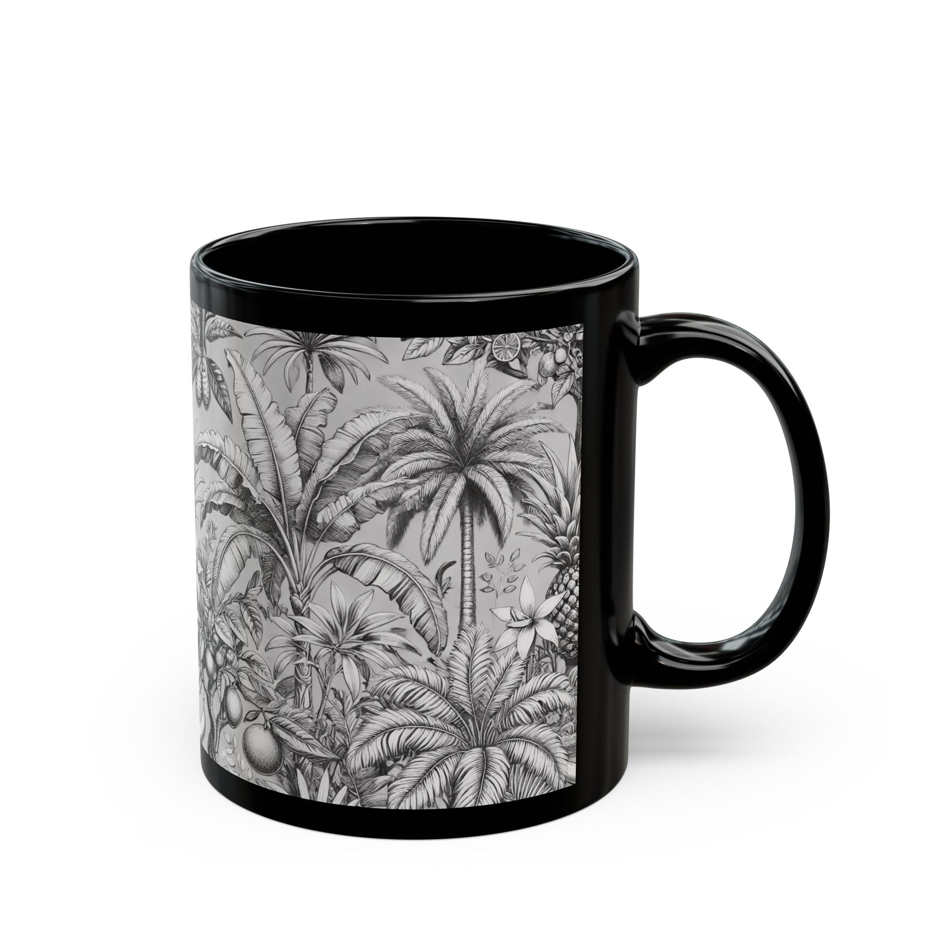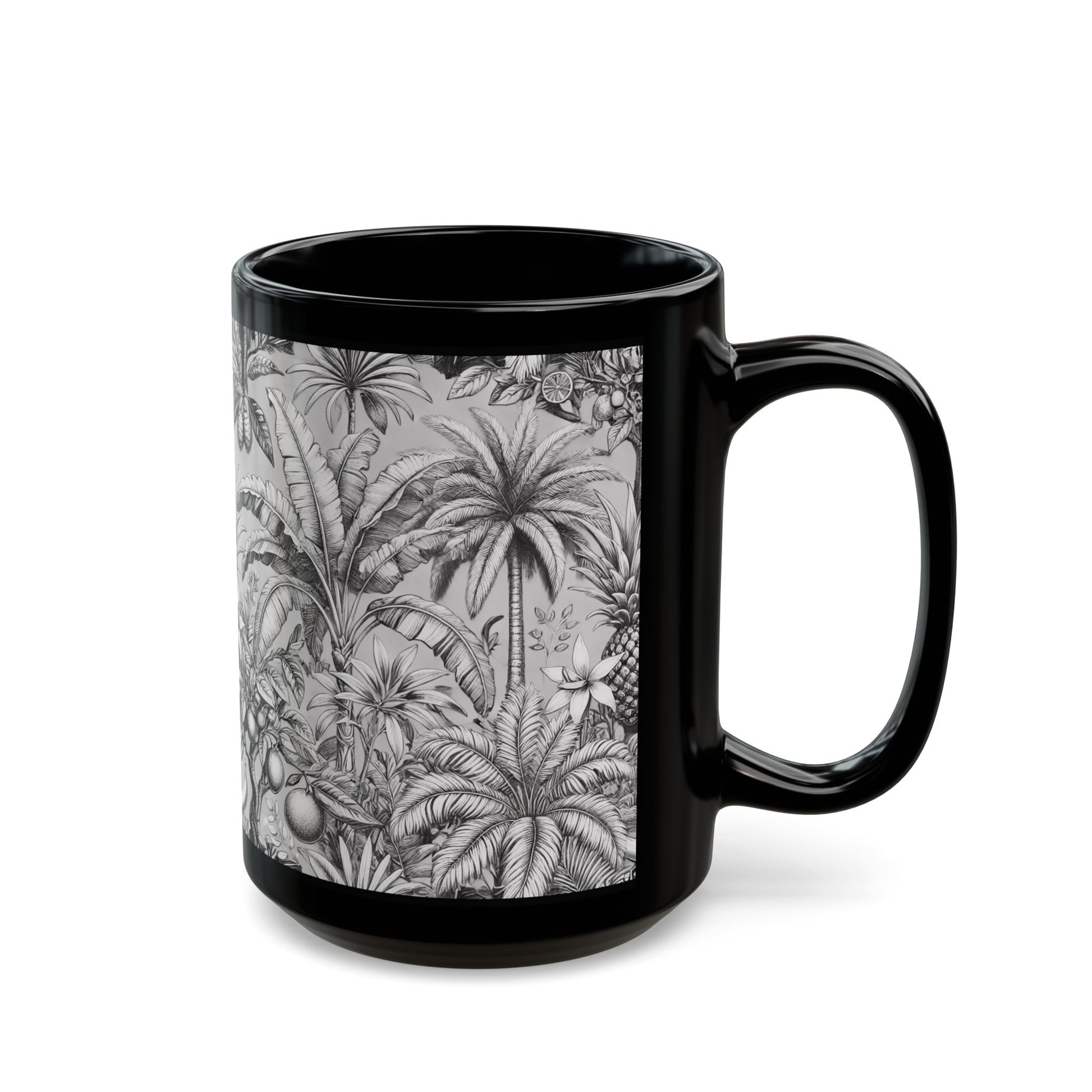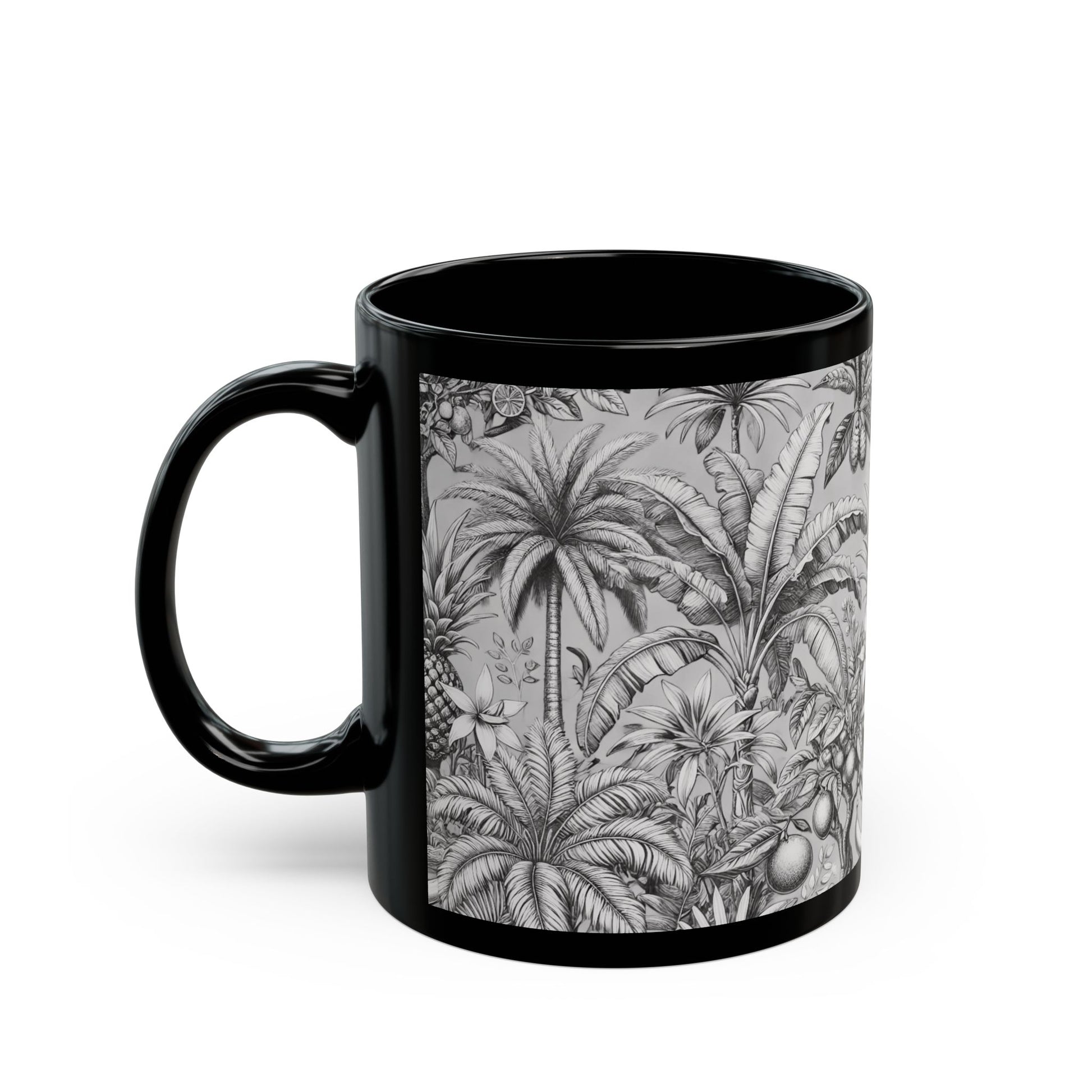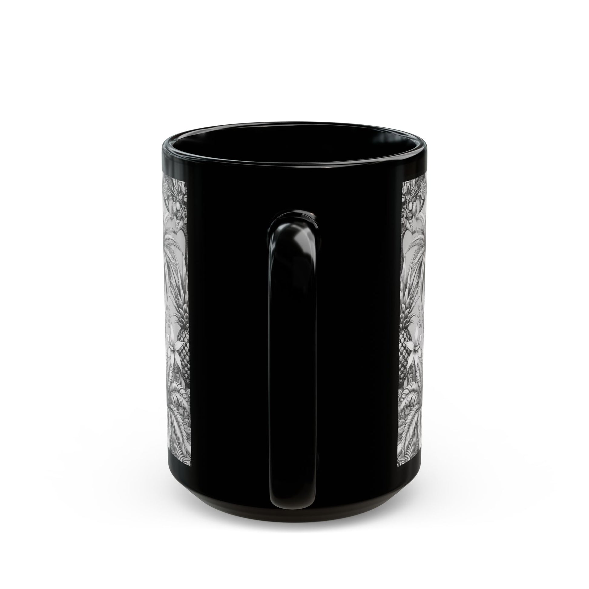 Black Coffee Mug - Tropical Fruit, Newspaper Ink