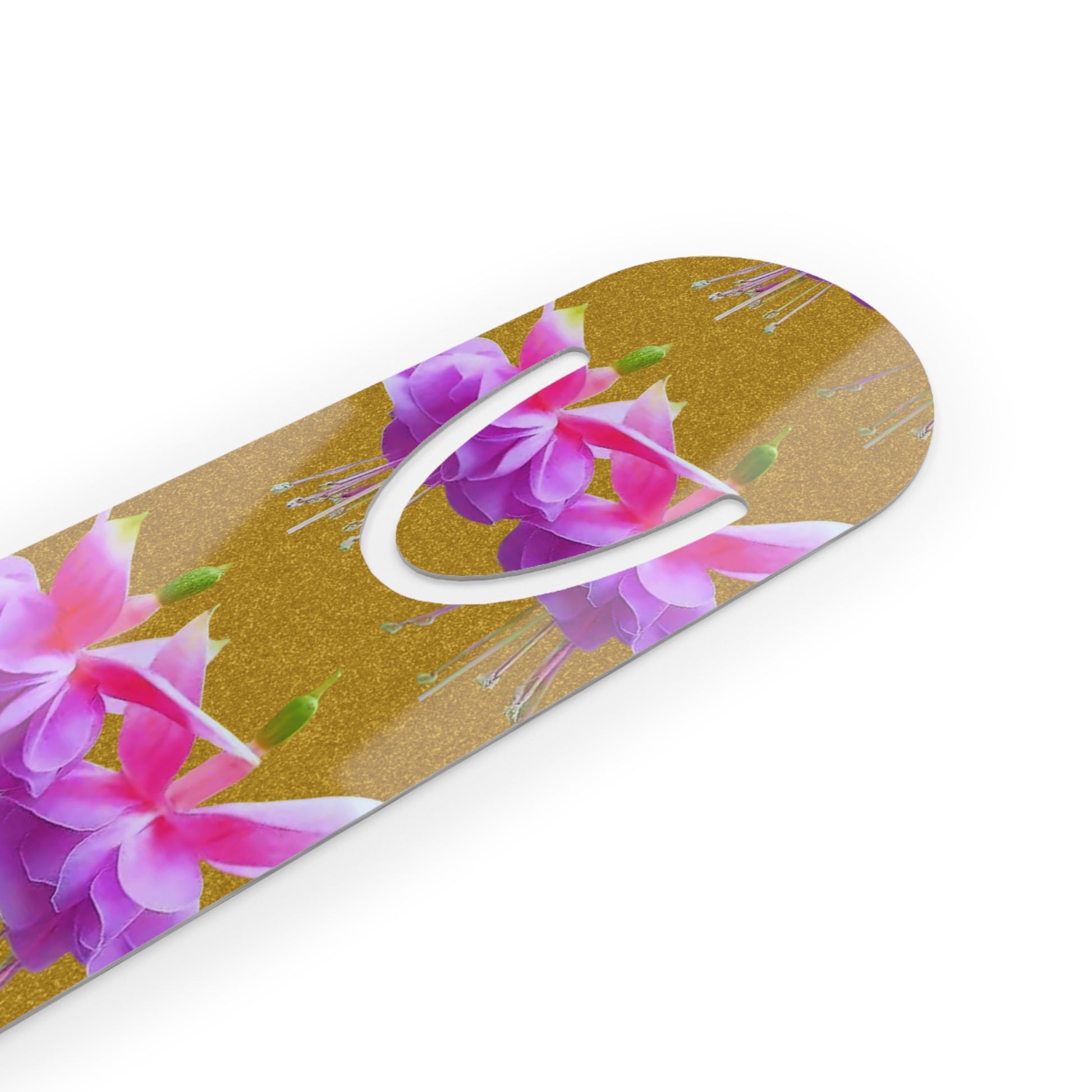 Bookmark - Aluminum, Two Pink Fuchsias / Gold
