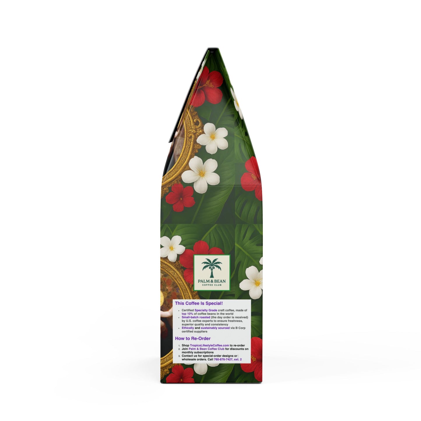 Palm Harvest™ Blend (Medium Roast) Specialty Grade Craft Coffee, Religious / Tropical Virgin of the Lilies