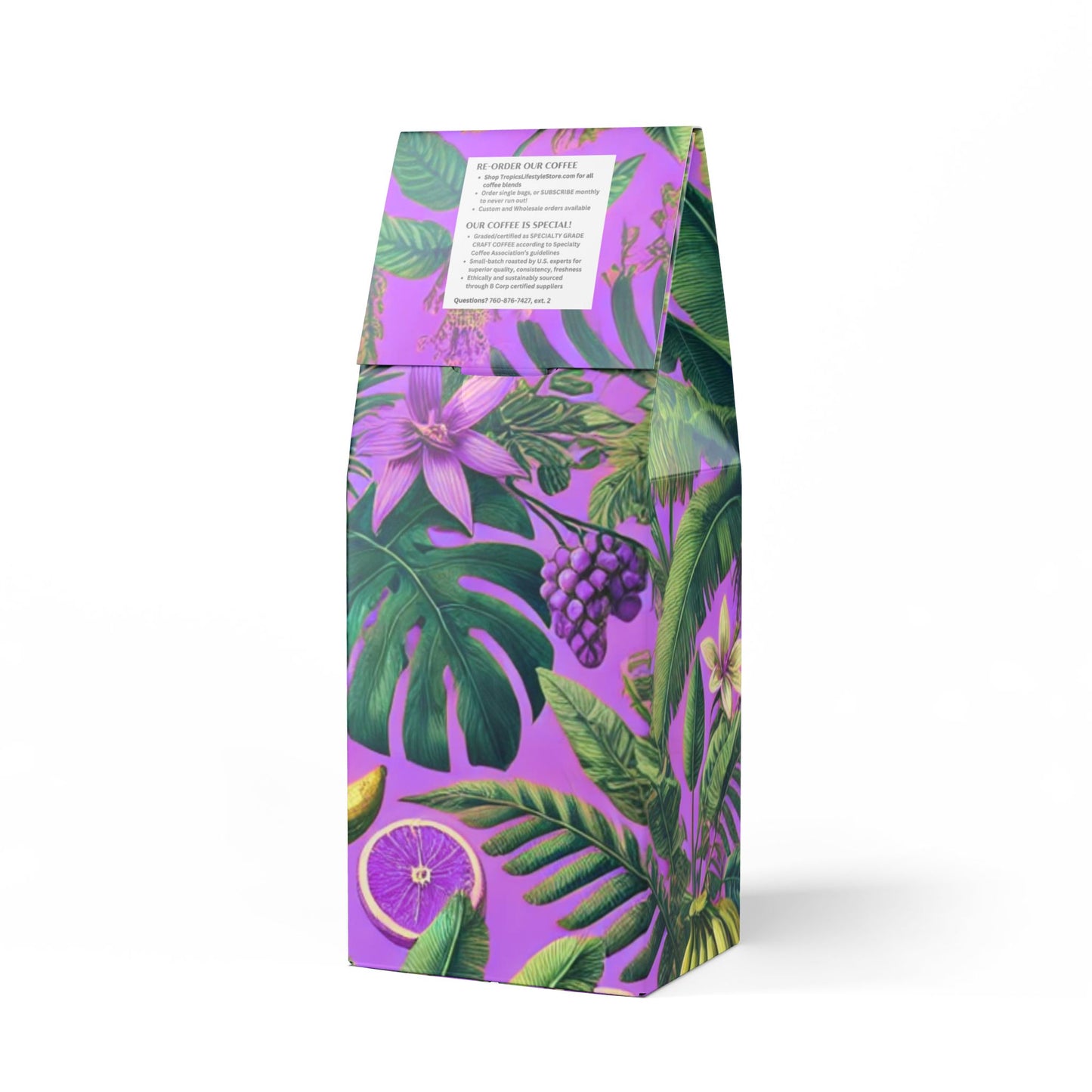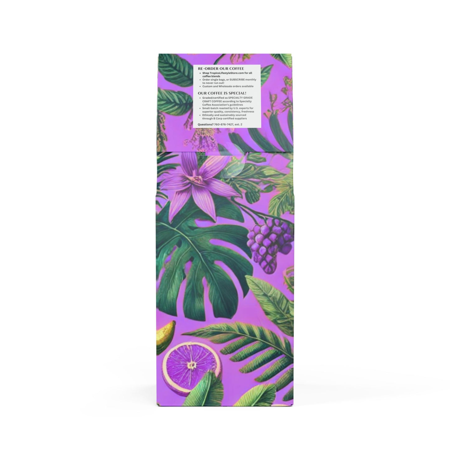 Midnight Surf Blend™ (Medium-Dark Roast) Specialty Grade Craft Coffee / Palms and More Tropical Fruit, Lilac