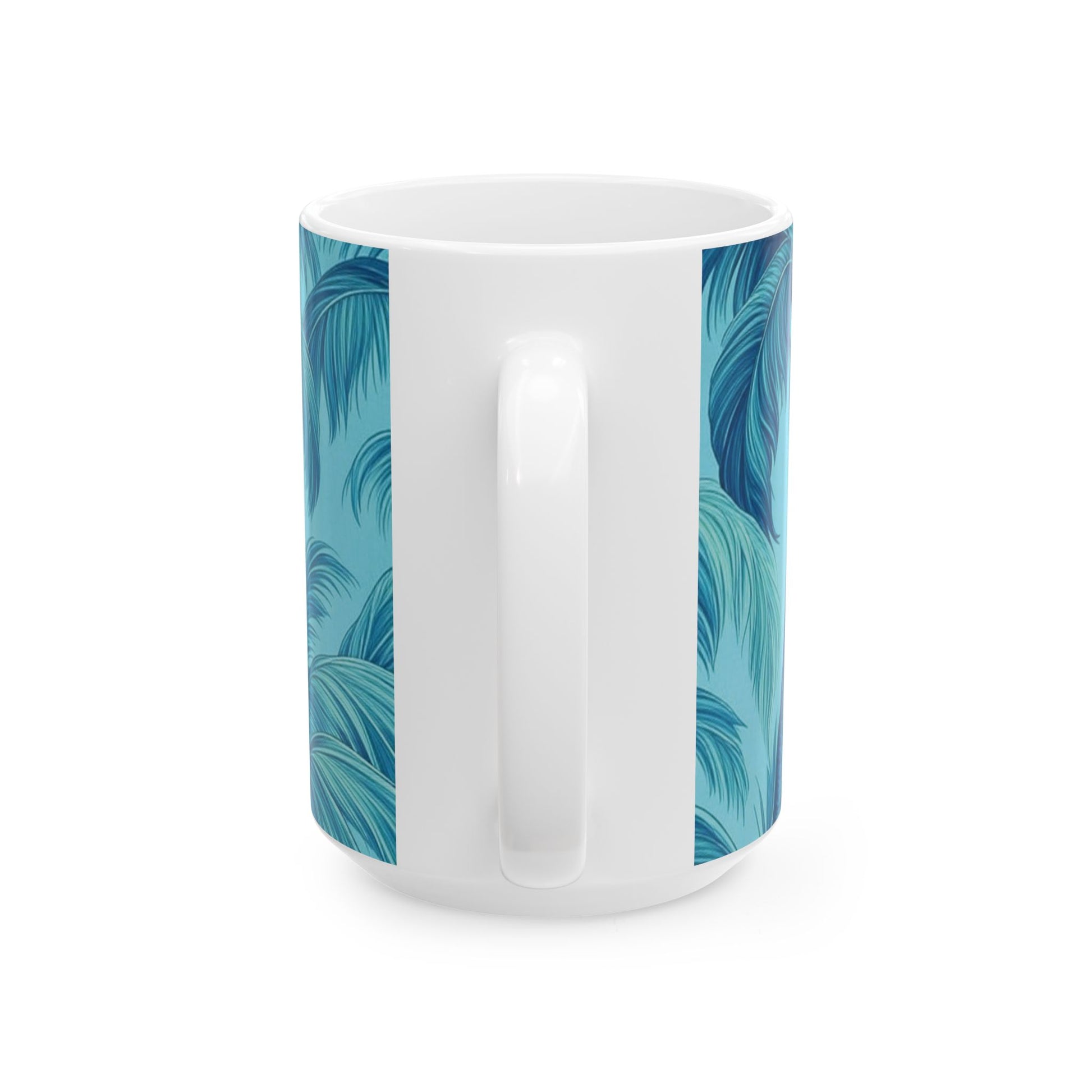Ceramic White Mug - 11oz & 15oz, Azure Palms