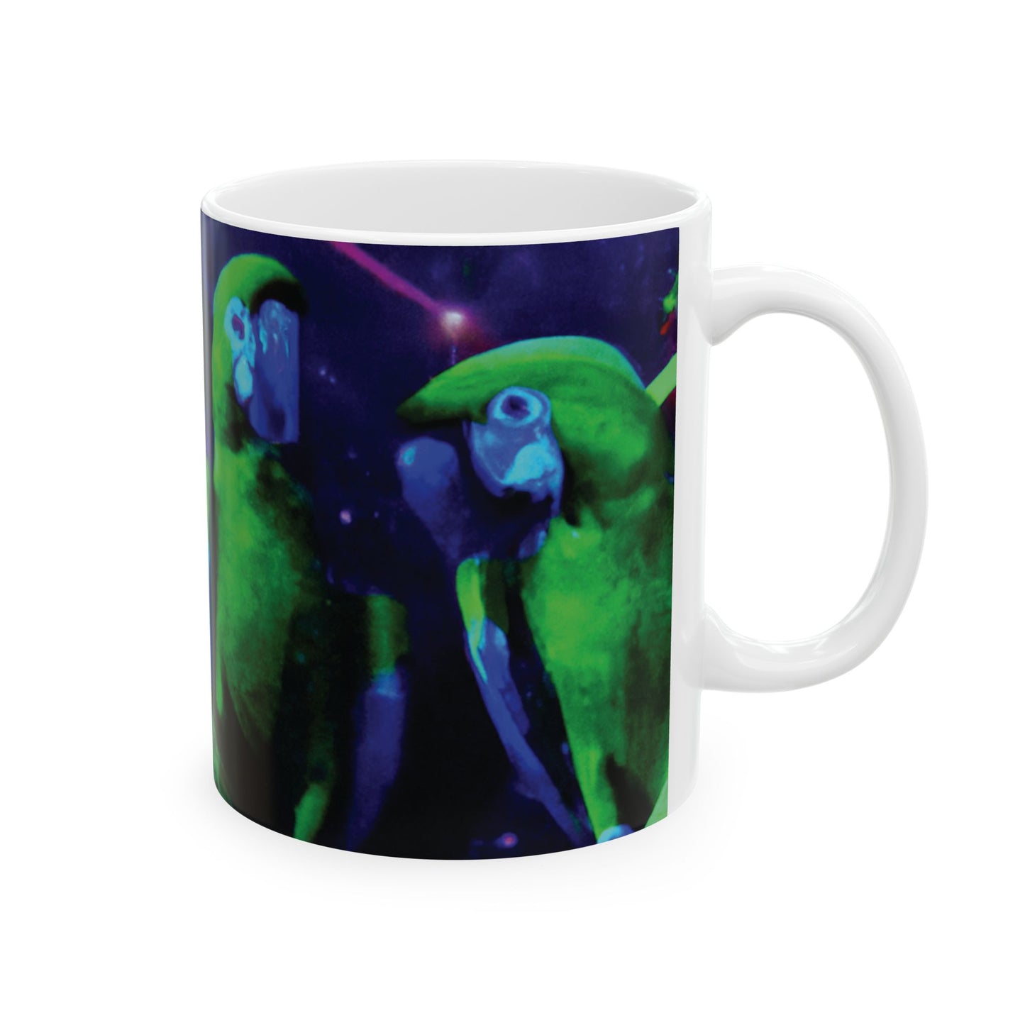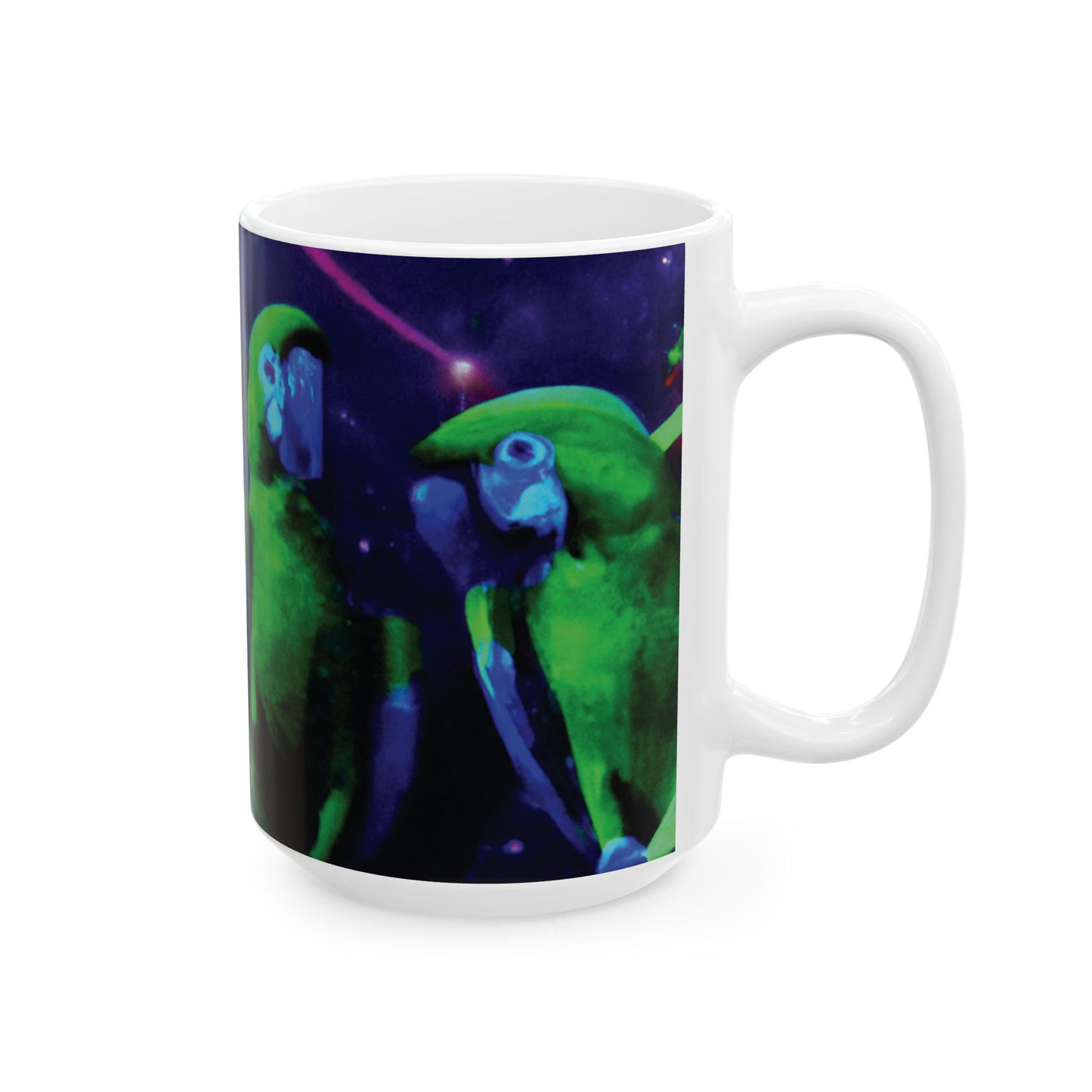 Ceramic White Mug - 11oz & 15oz, Galactic Parrot
