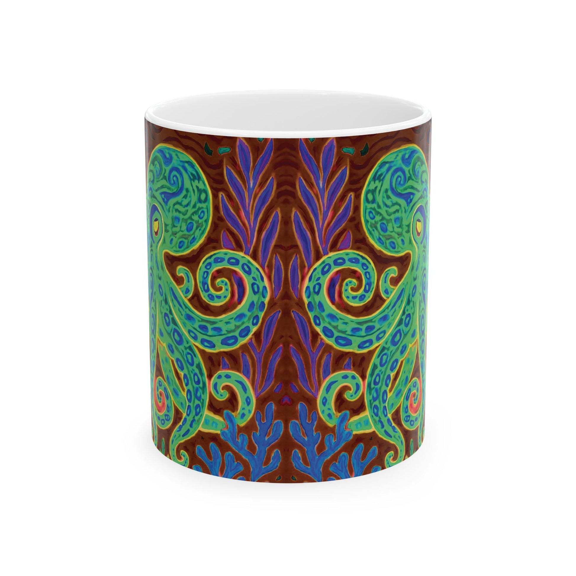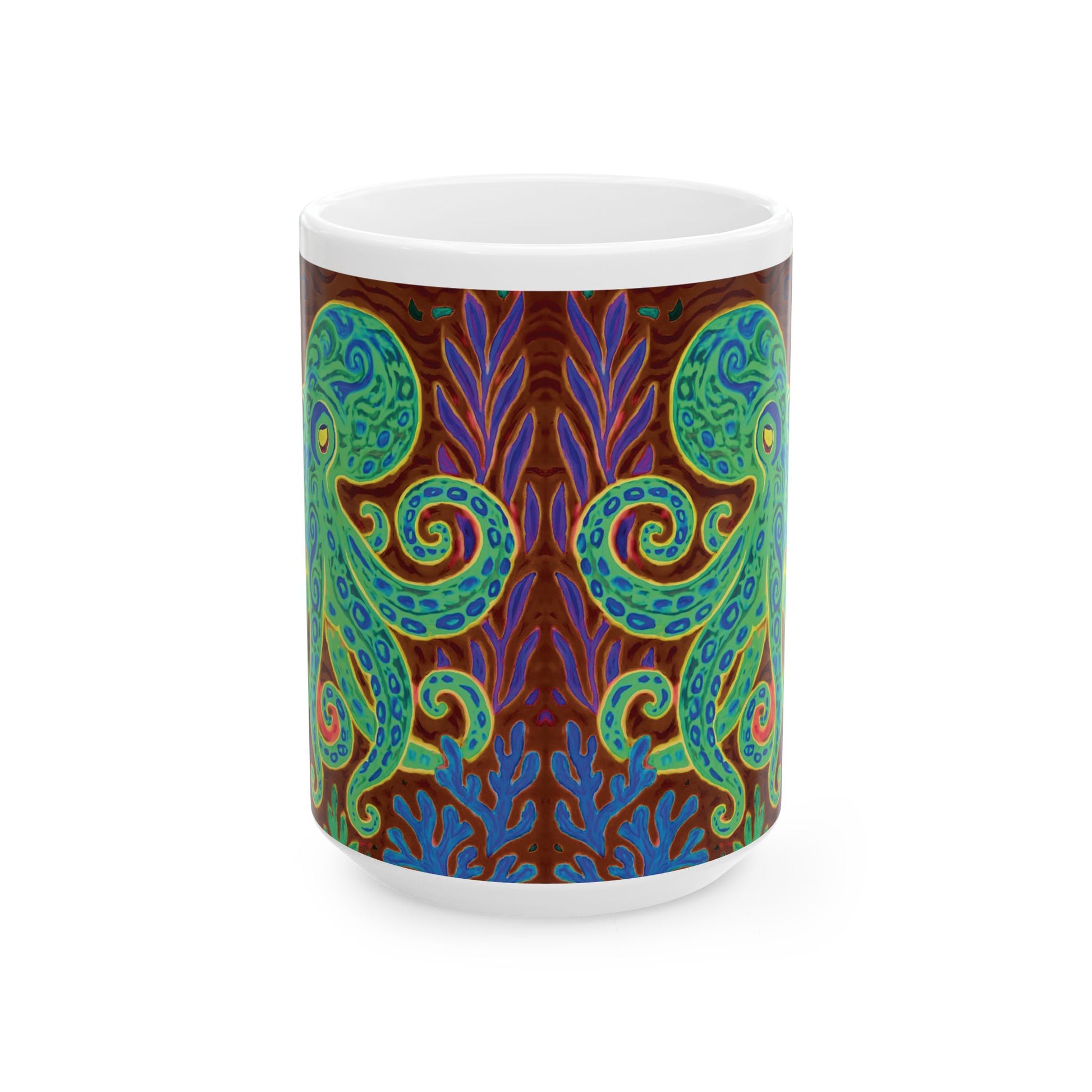 Ceramic White Mug - 11oz & 15oz, Gamma Octopus Kraken Joe