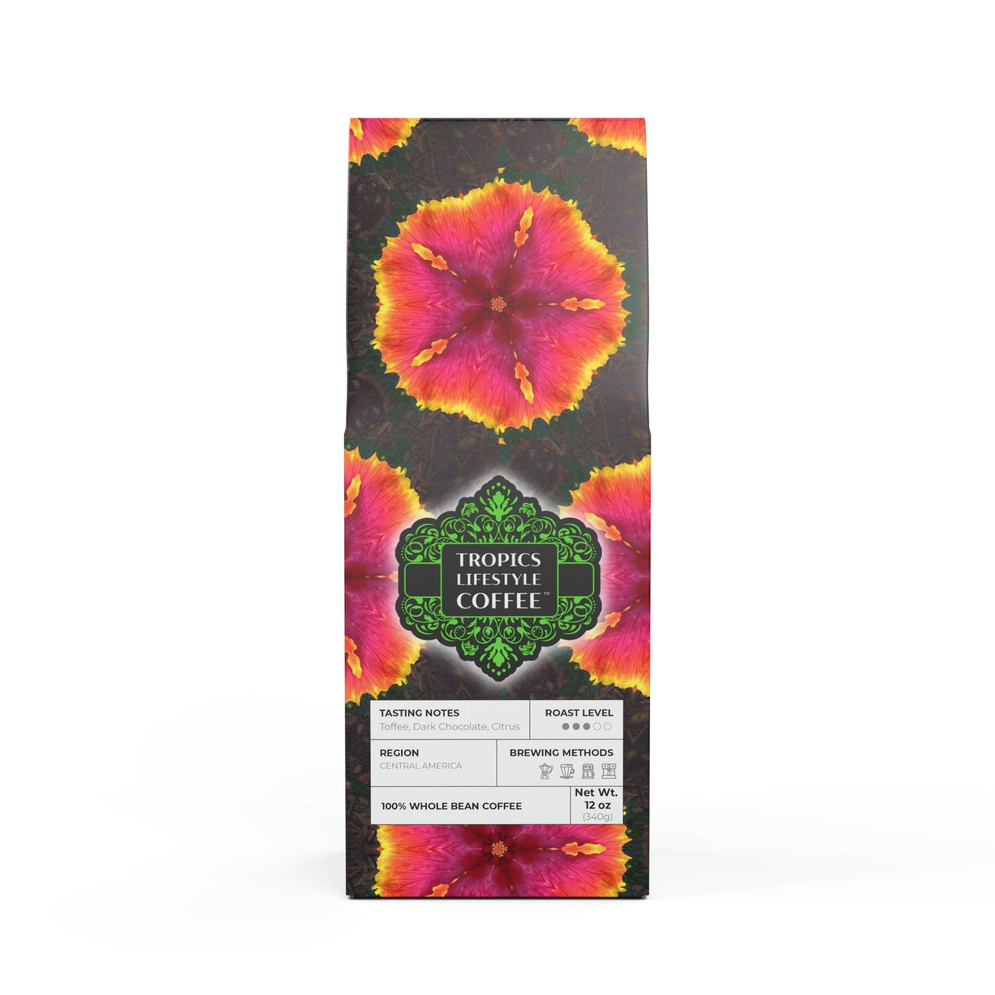 The Citrus Bay Blend™ was made to be your new daily pick-me-up! This 12oz pack boasts a medium roast, delivering a delightful fusion of toffee, dark chocolate and citrus flavors with tasting notes reminiscent of sweet orange, chocolate and brown sugar. Sourced from the lush region of Central America, this blend is perfect for brewing in your drip coffee maker, pour-over, espresso machine, Moka Pot, or even a refreshing cold brew. Whether you prefer whole bean or ground, we've got you covered. Top 10% of coffee produced. Certified as "Specialty Grade Craft Coffee." Top 10% of all coffee produced in the world. Limited-edition box art features our original kaleidoscope pattern of a hibiscus flower. Don't run out! Join our monthly Subscription coffee plan.