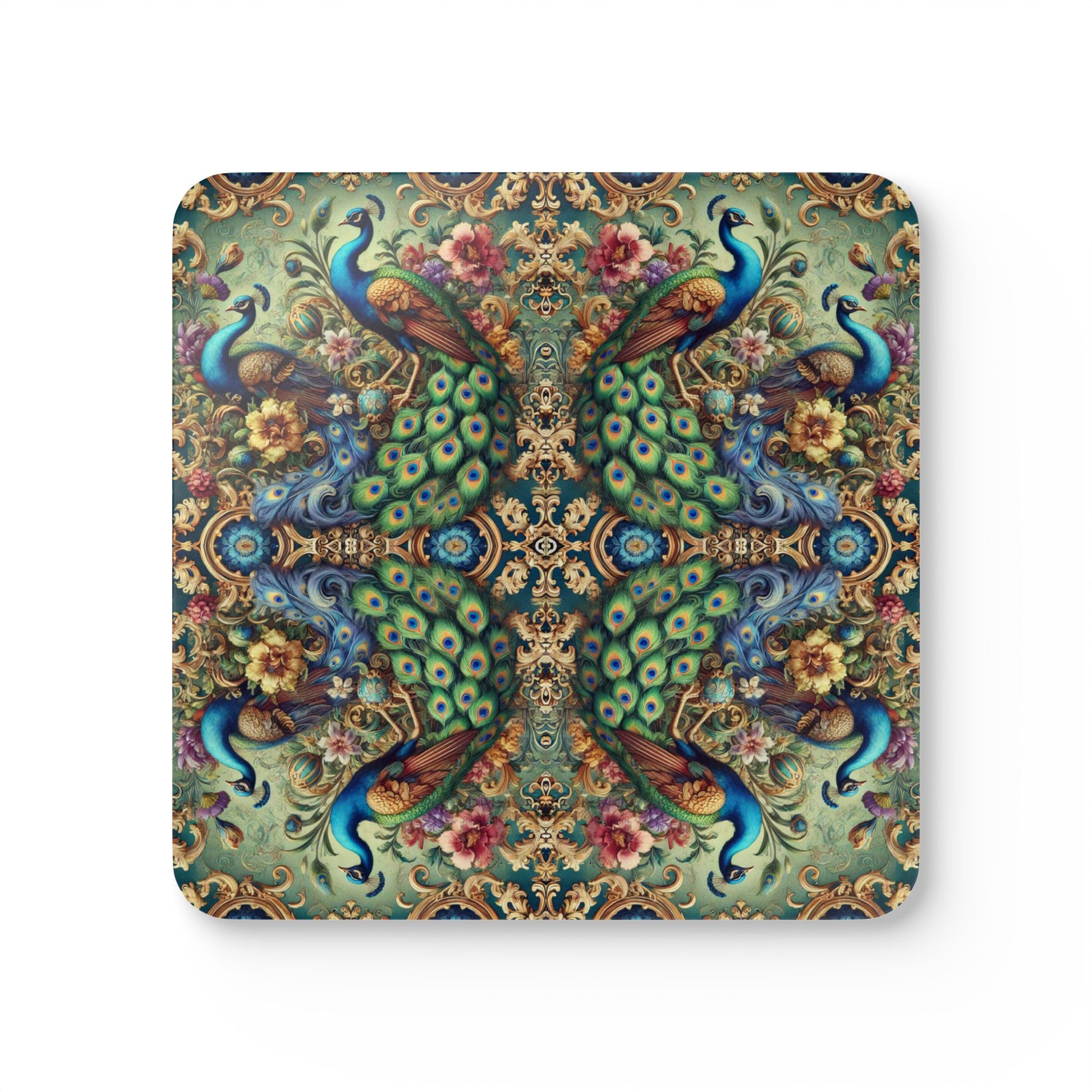 Upgrade your home’s décor with this personalized coaster set featuring a super rainforest vibe. Perfect for parties with 1 to 100 in attendance, this 4-piece set includes high-gloss MDF tops and cork backs to prevent sliding. Our exclusive kaleidoscope peacock design adds a fun and vibrant touch to your space, making it a must-have for anyone who loves hosting gatherings or tropical-themed decor. Ideal for holidays, parties, and everyday use.