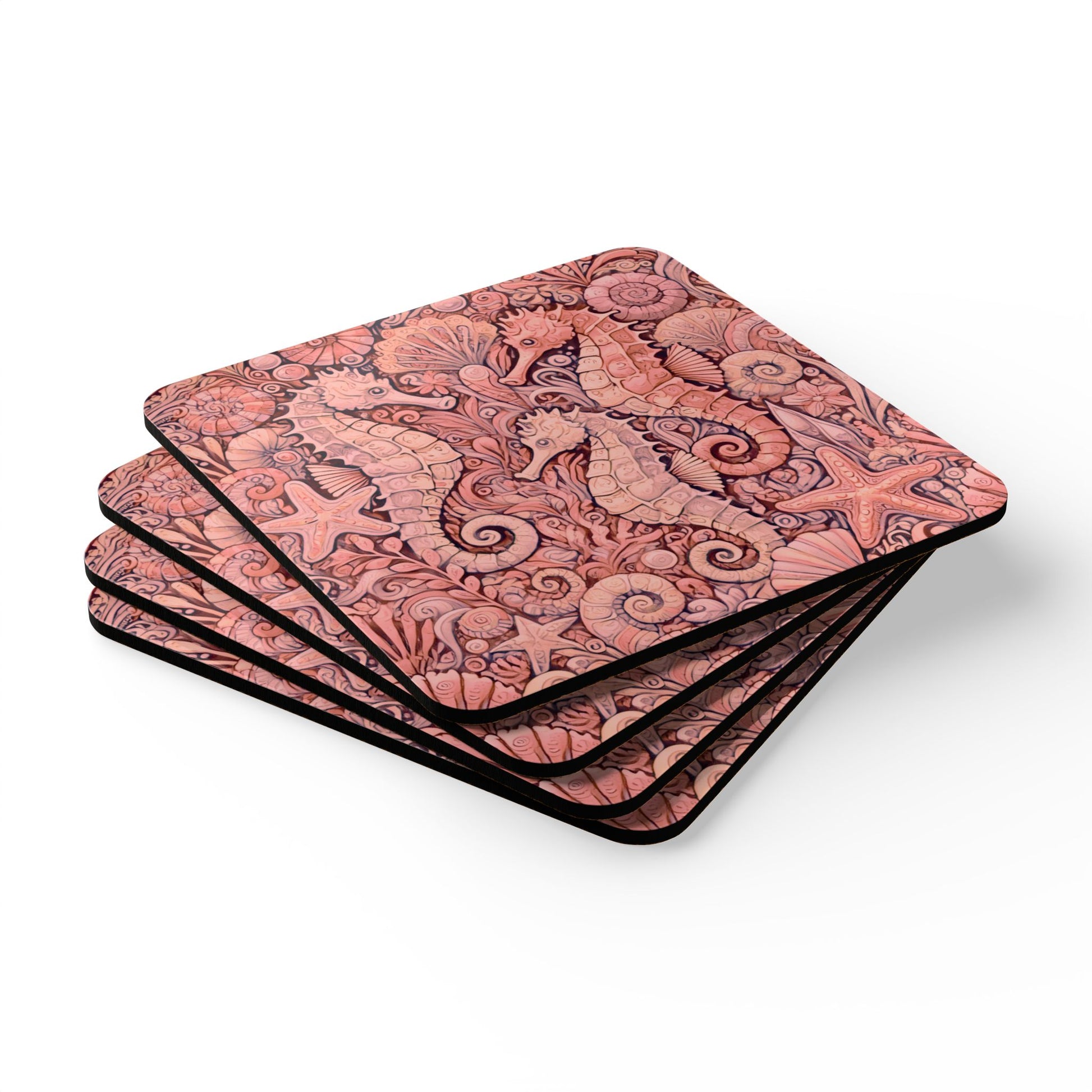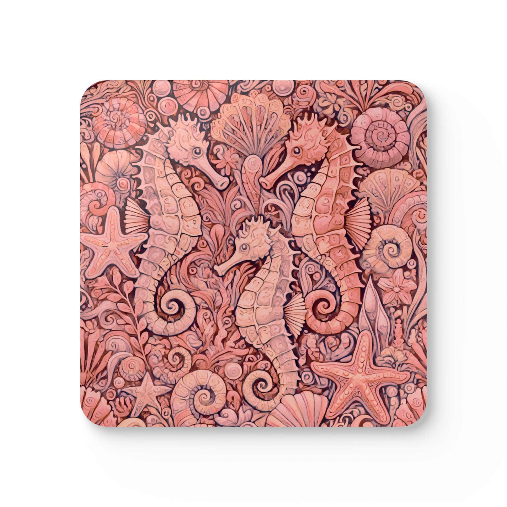 Upgrade your home’s décor with this personalized coaster set featuring a super coastal vibe. Perfect for parties with 1 to 100 in attendance, this 4-piece set includes high-gloss MDF tops and cork backs to prevent sliding. Our exclusive seahorses design adds a fun and vibrant touch to your space, making it a must-have for anyone who loves hosting gatherings or tropical-themed decor. Ideal for holidays, parties, and everyday use. Image is photo of a REAL starfish; see related shell designs in Disco series to mix and match!