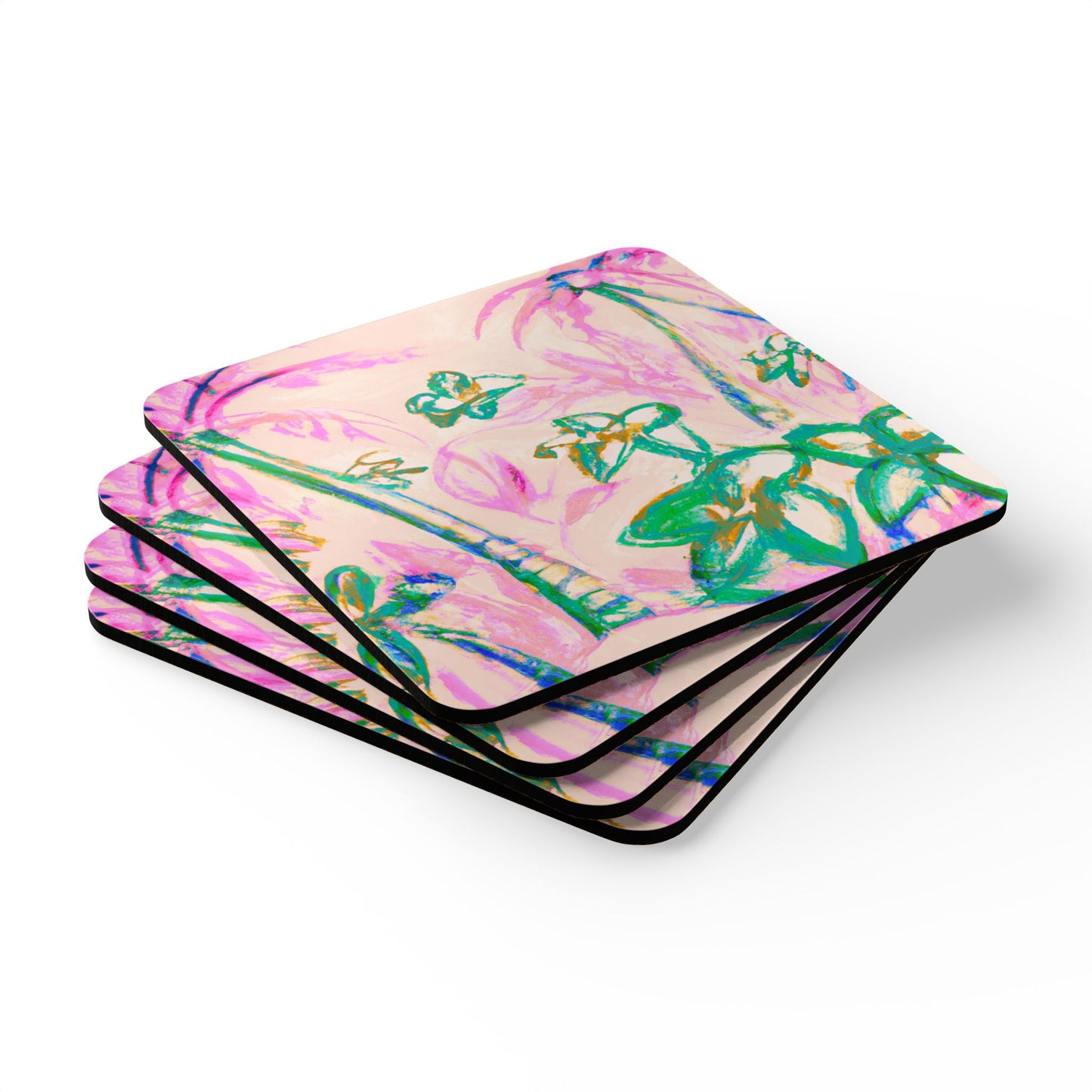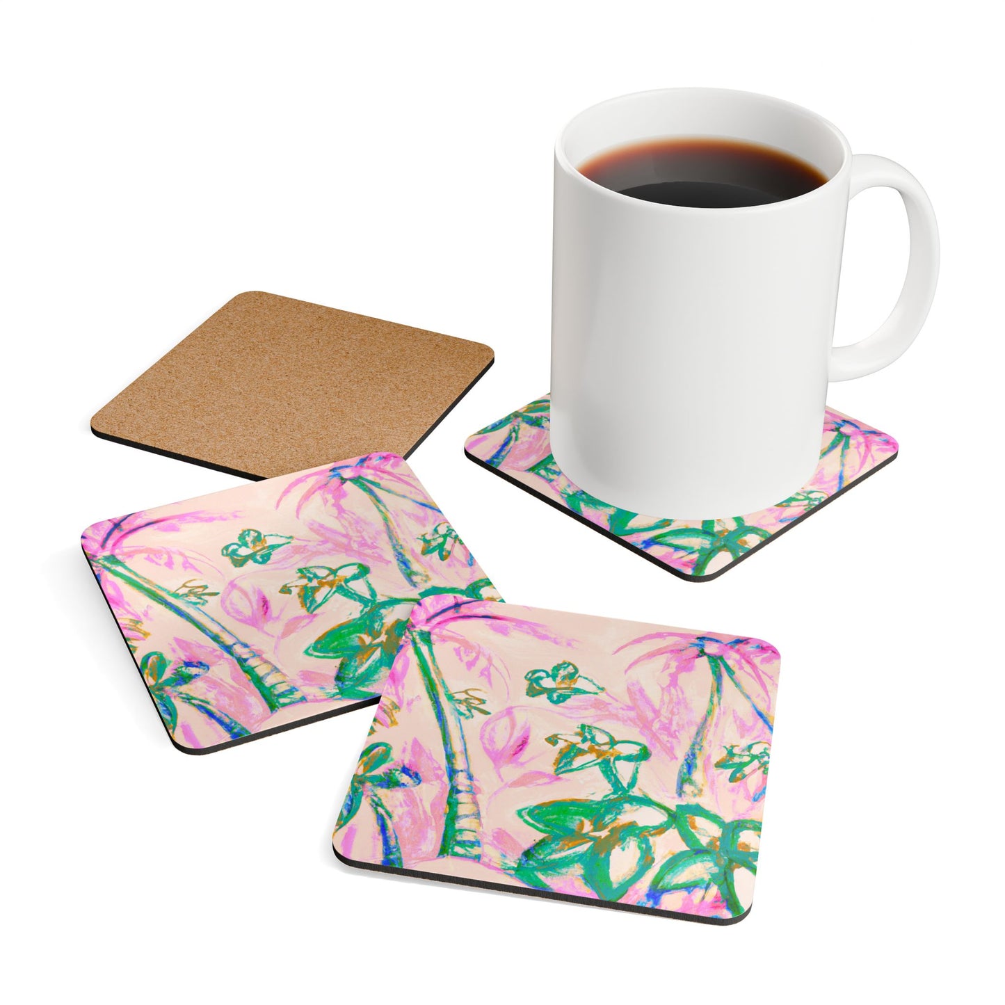 Upgrade your home’s décor with this personalized coaster set featuring a super coastal vibe. Perfect for parties with 1 to 100 in attendance, this 4-piece set includes high-gloss MDF tops and cork backs to prevent sliding. Our exclusive design of simply drawn palms and tropical flowers adds a fun and vibrant touch to your space, making it a must-have for anyone who loves hosting gatherings or tropical-themed decor. Ideal for holidays, parties, and everyday use. Image is photo of a REAL shell; see related shell designs in Disco series to mix and match!