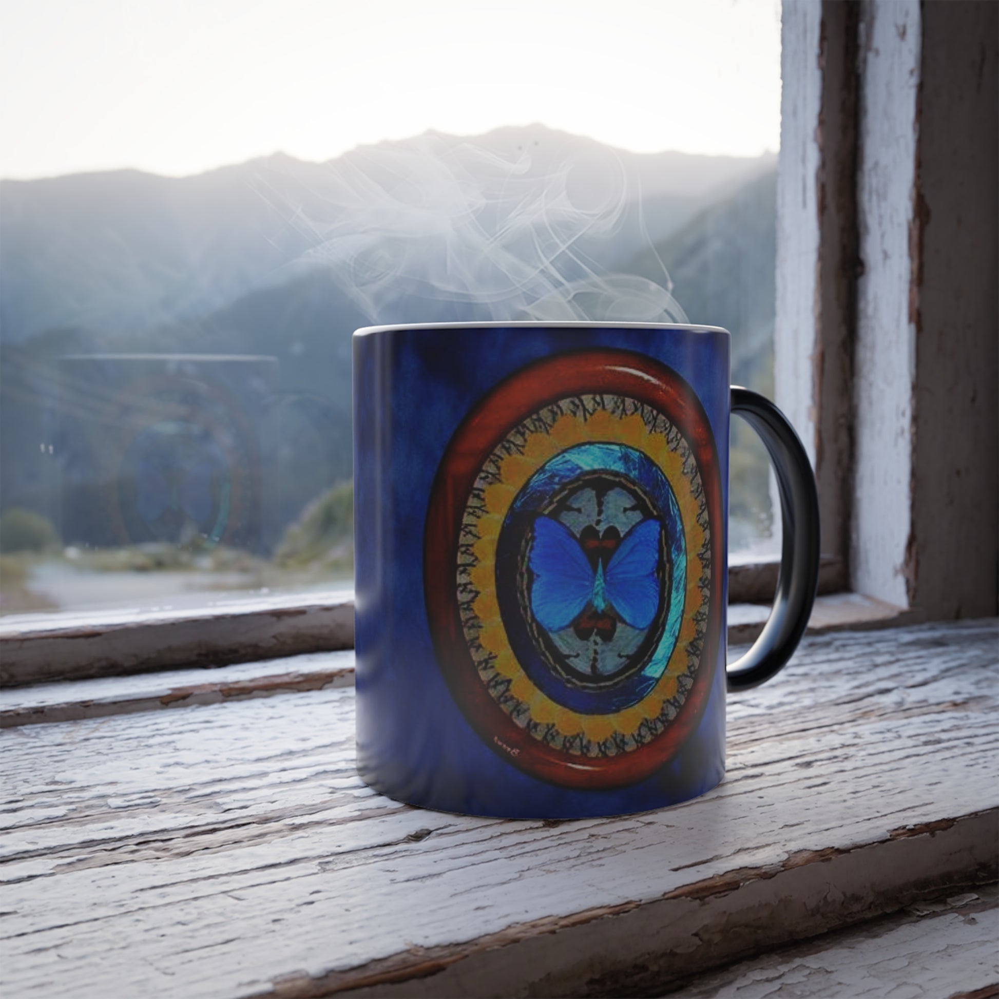 Color Morphing Mug, 11oz, Oval Real Butterfly Wing Art