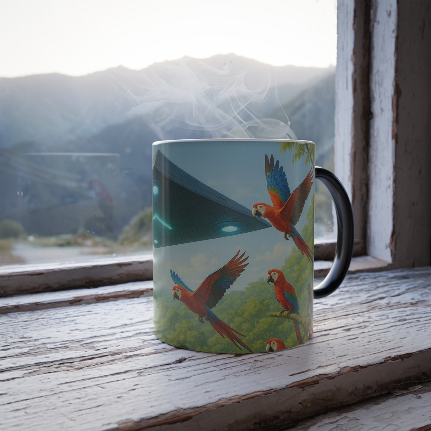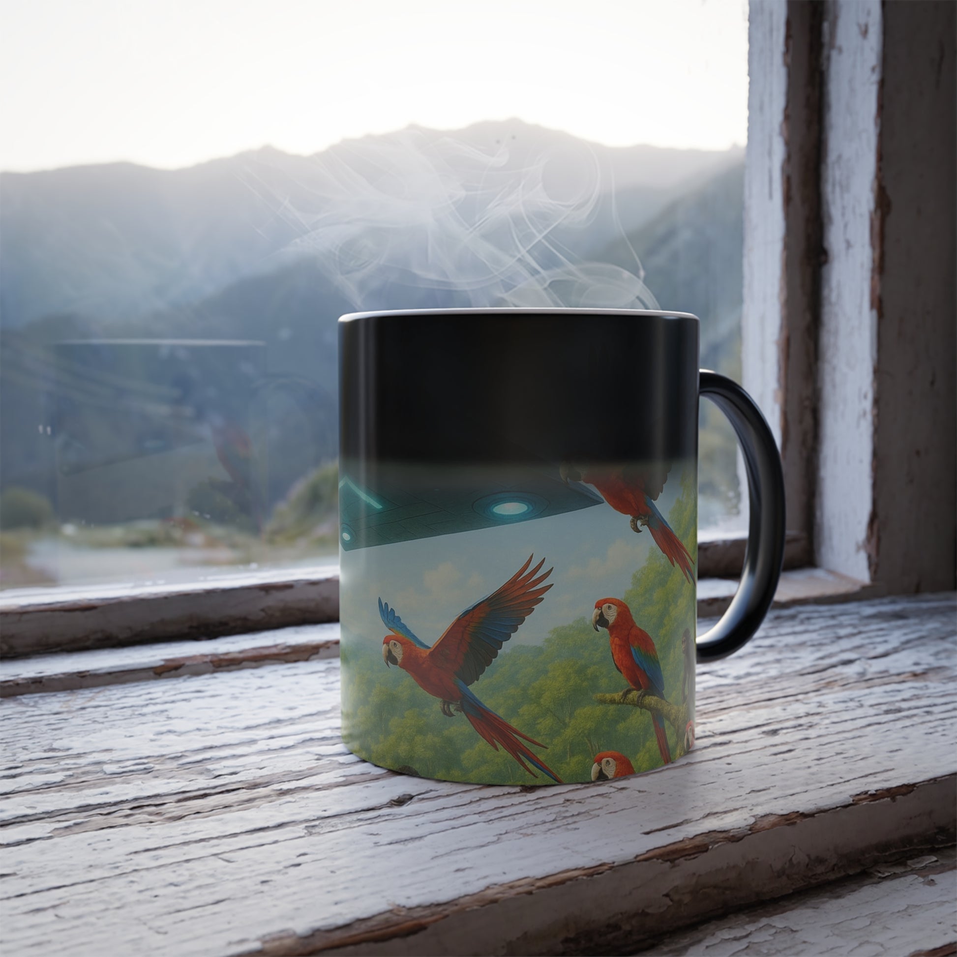 Color Morphing Mug, 11oz ~ UFO and Macaws