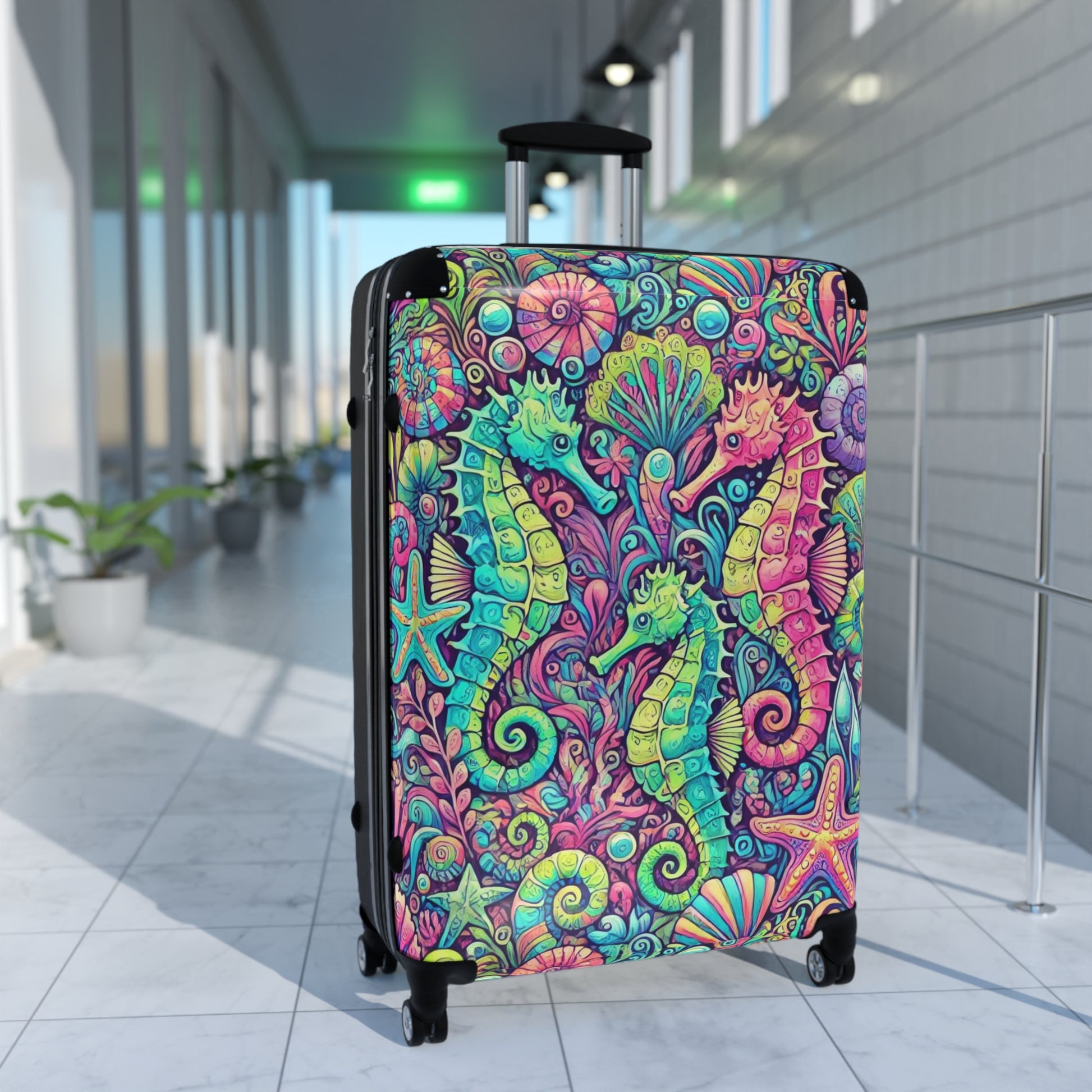 Colorful Tropical Suitcase - Stylish Travel Luggage for Adventurers / Seahorses