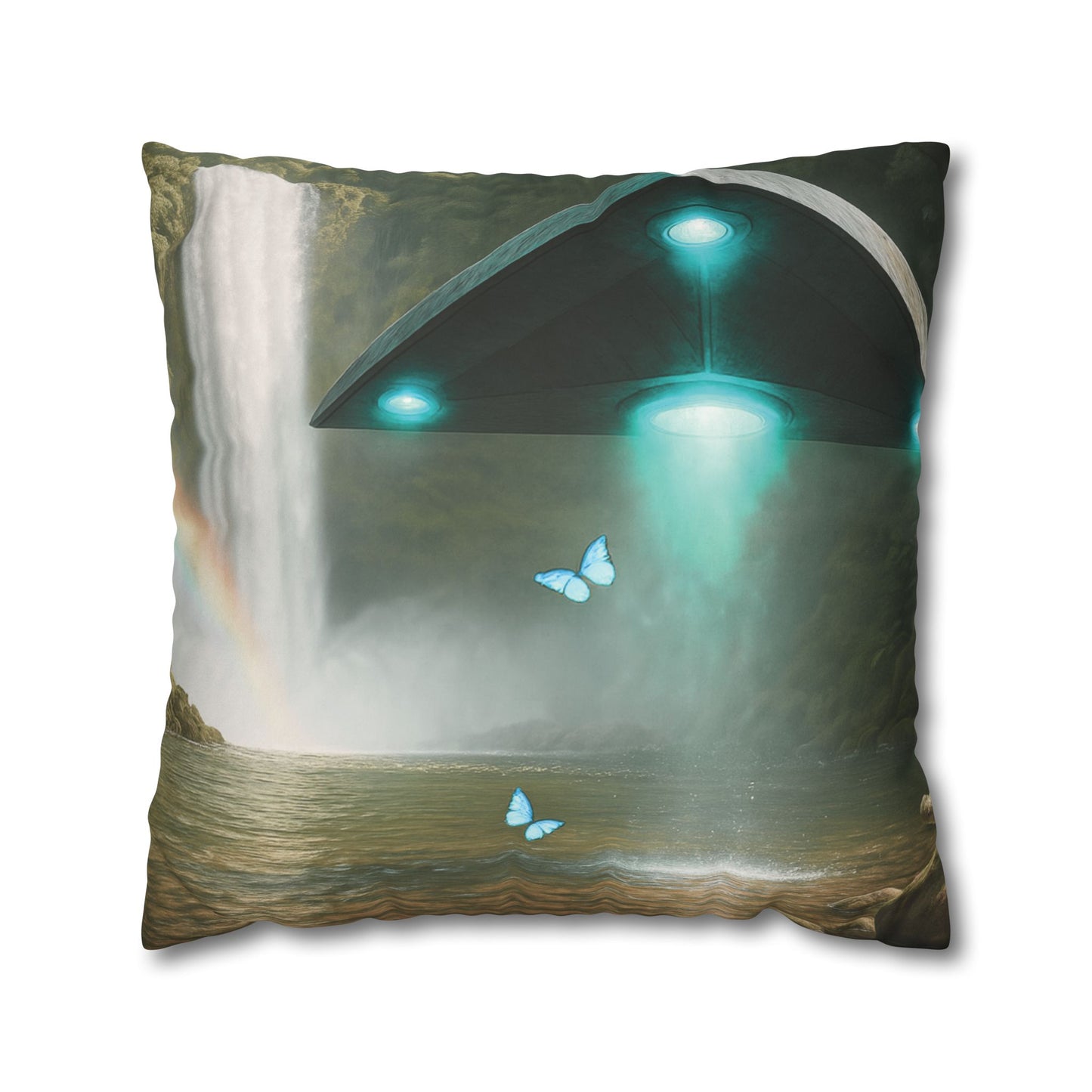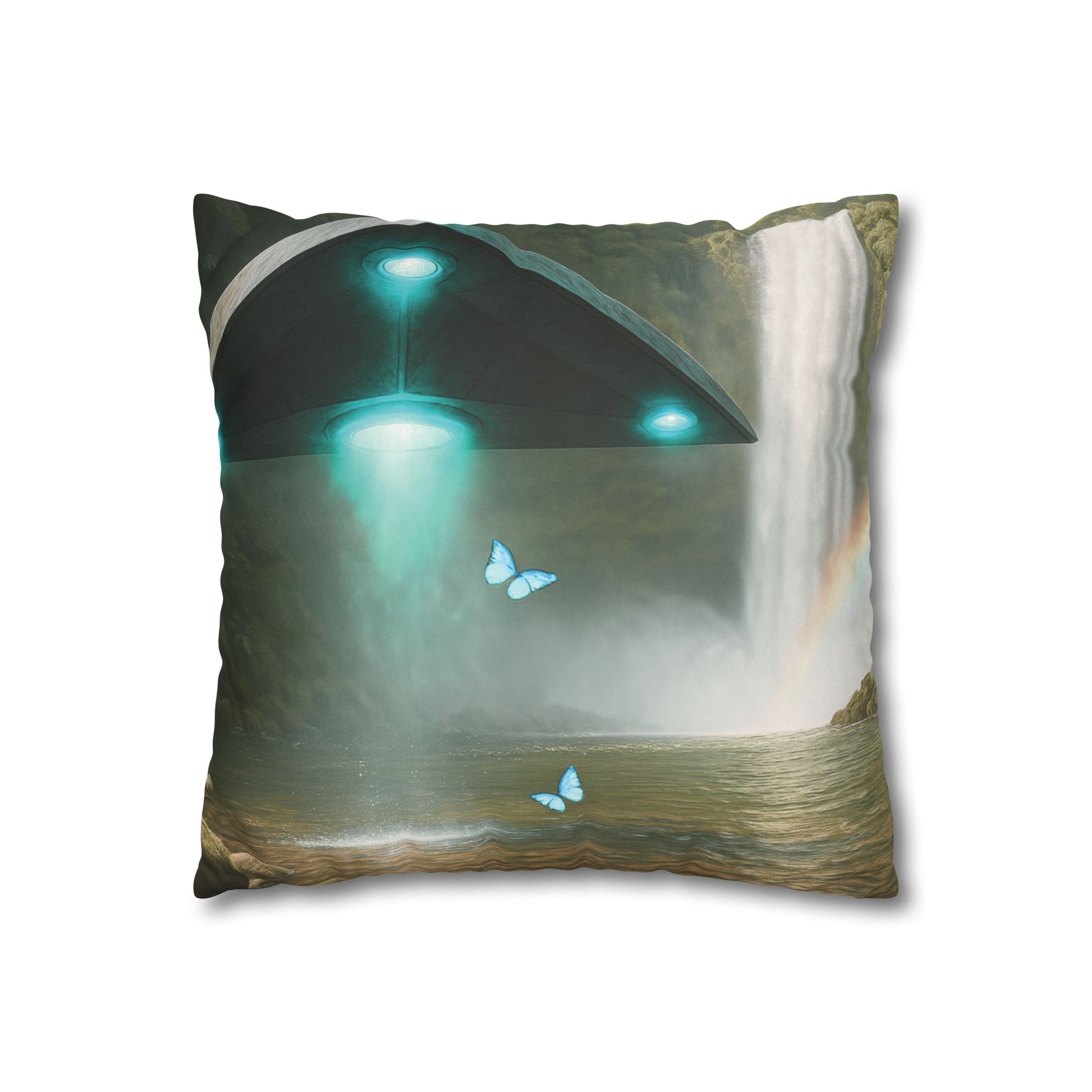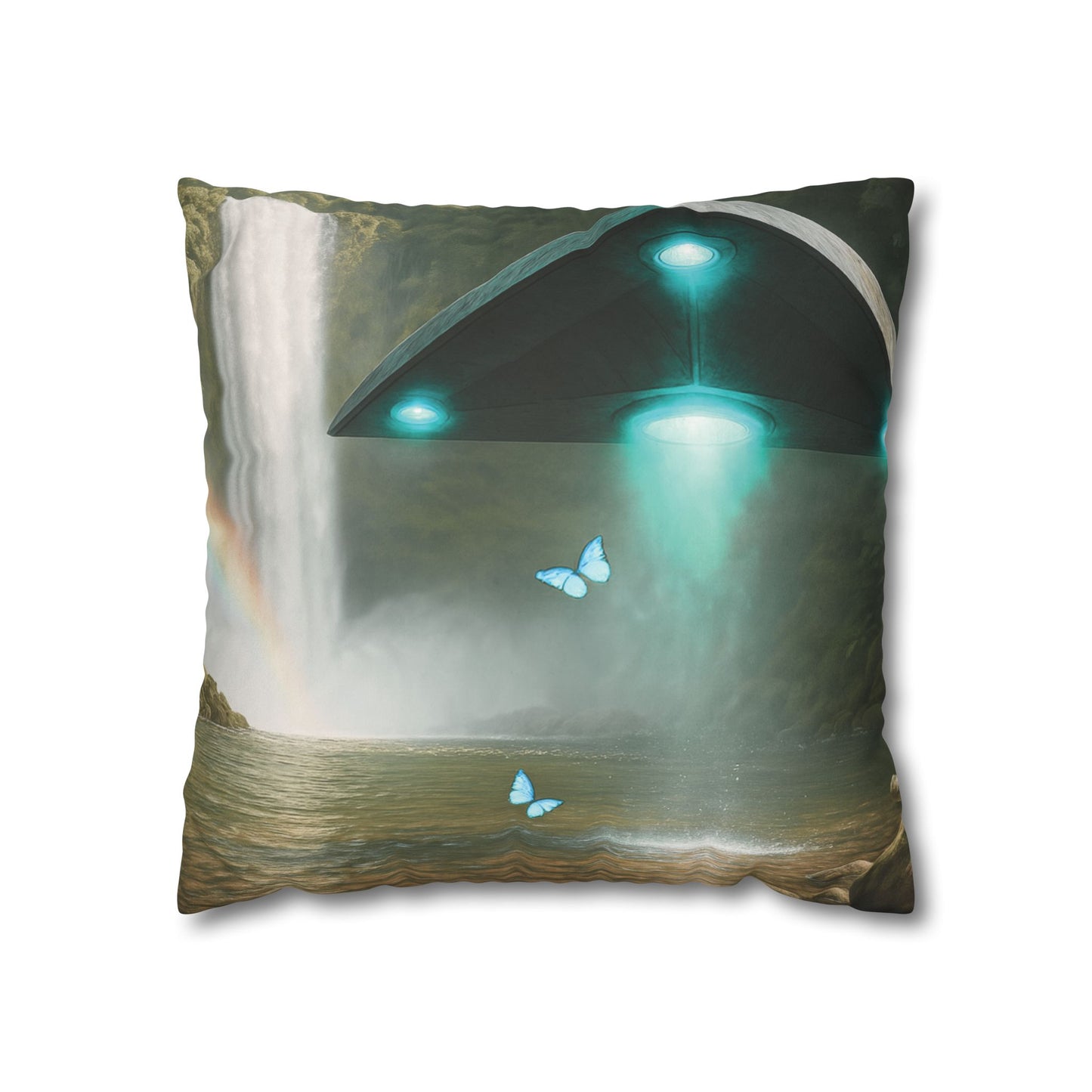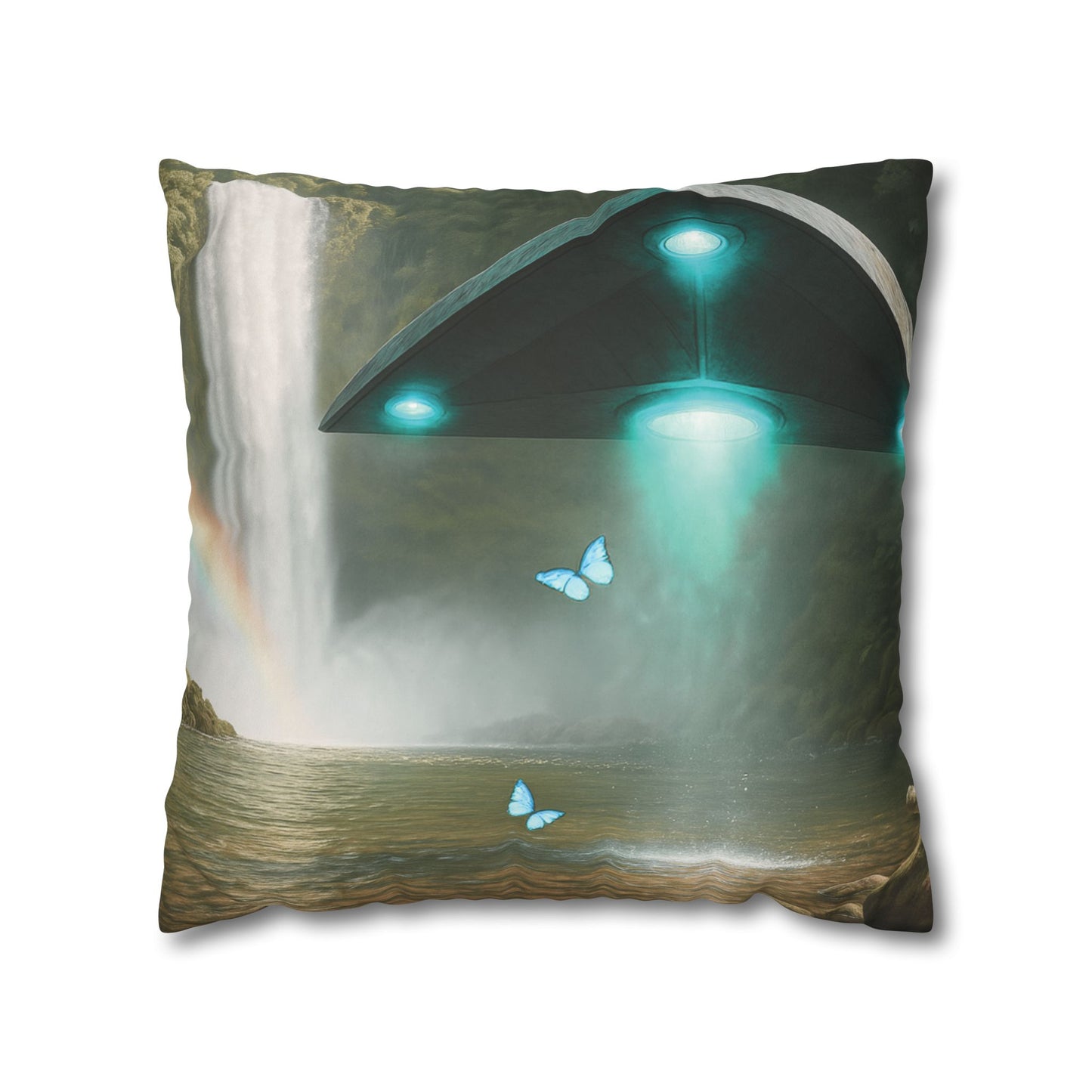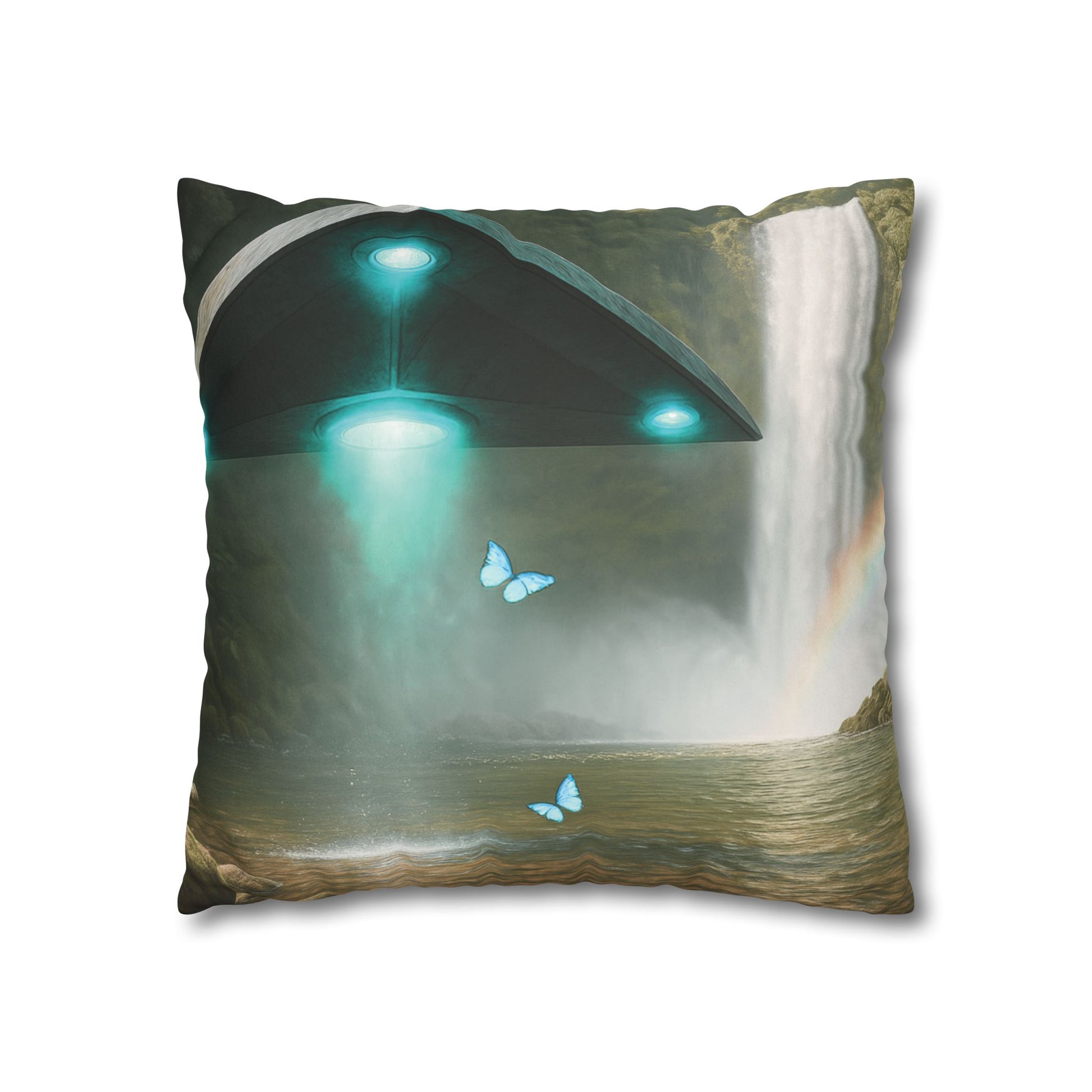 Faux Suede Square Pillowcase - UFO and Waterfall